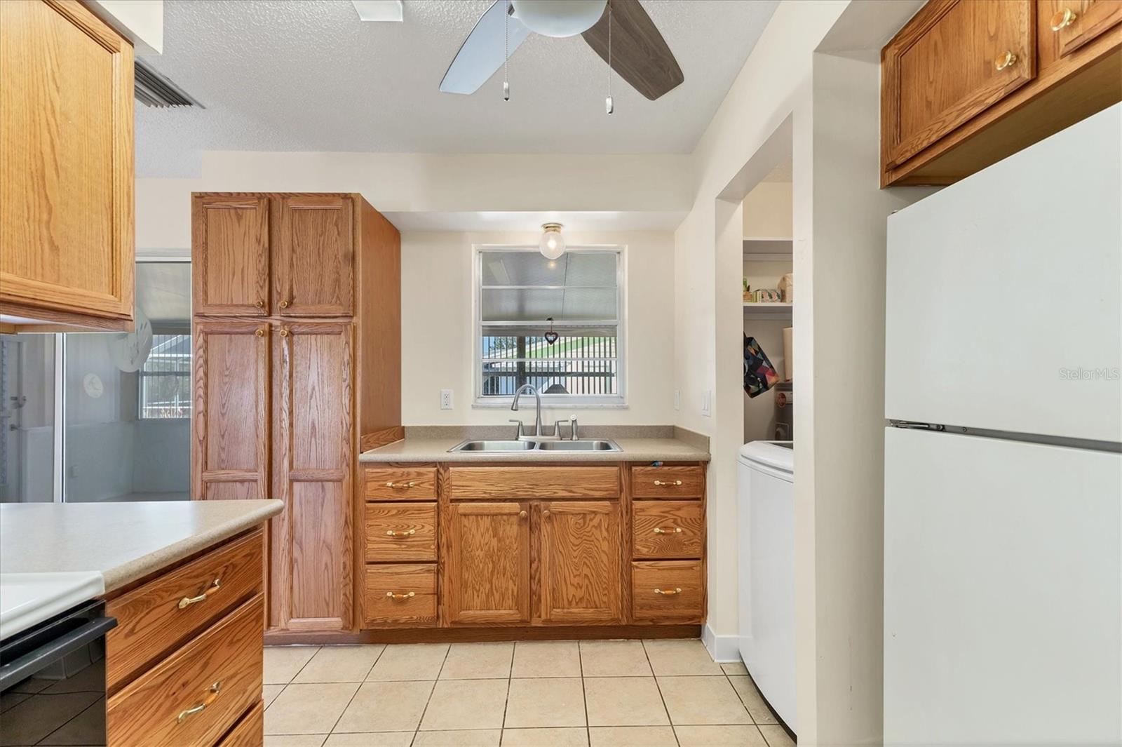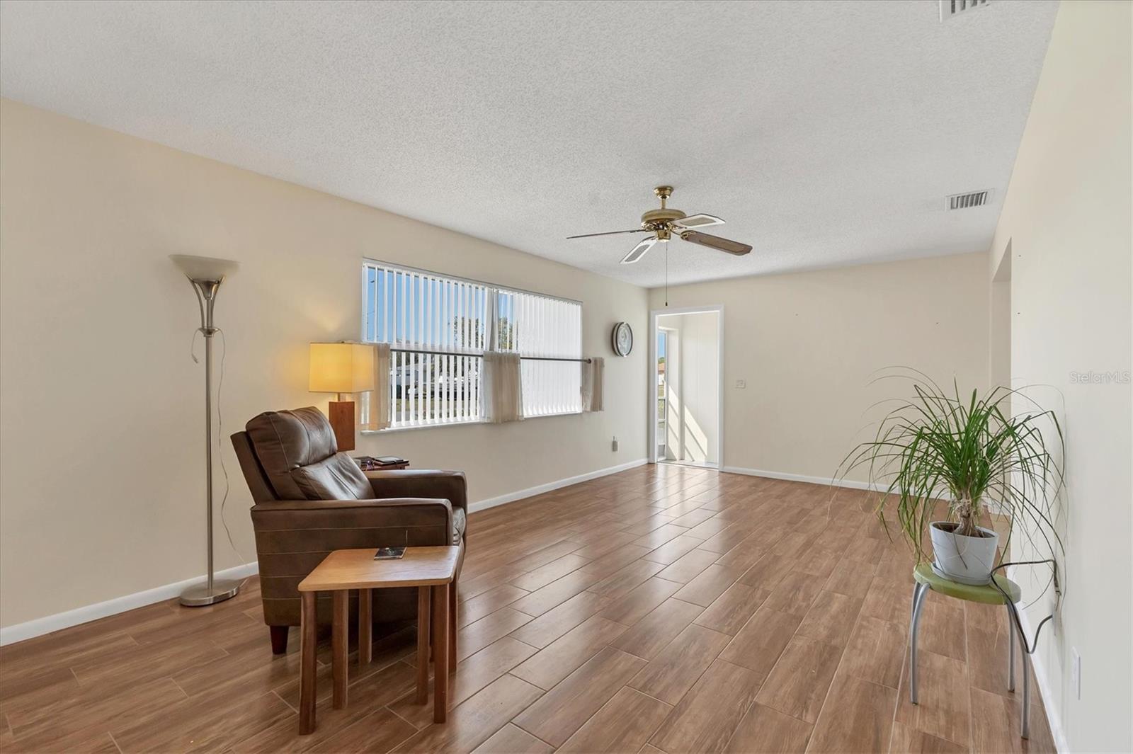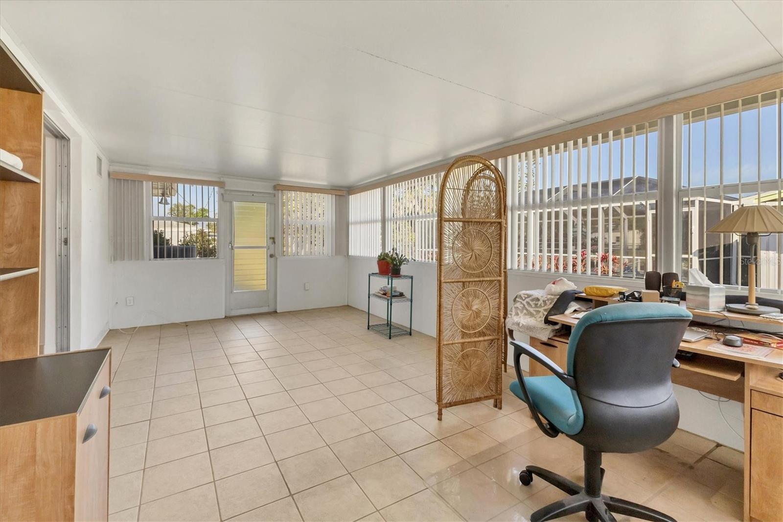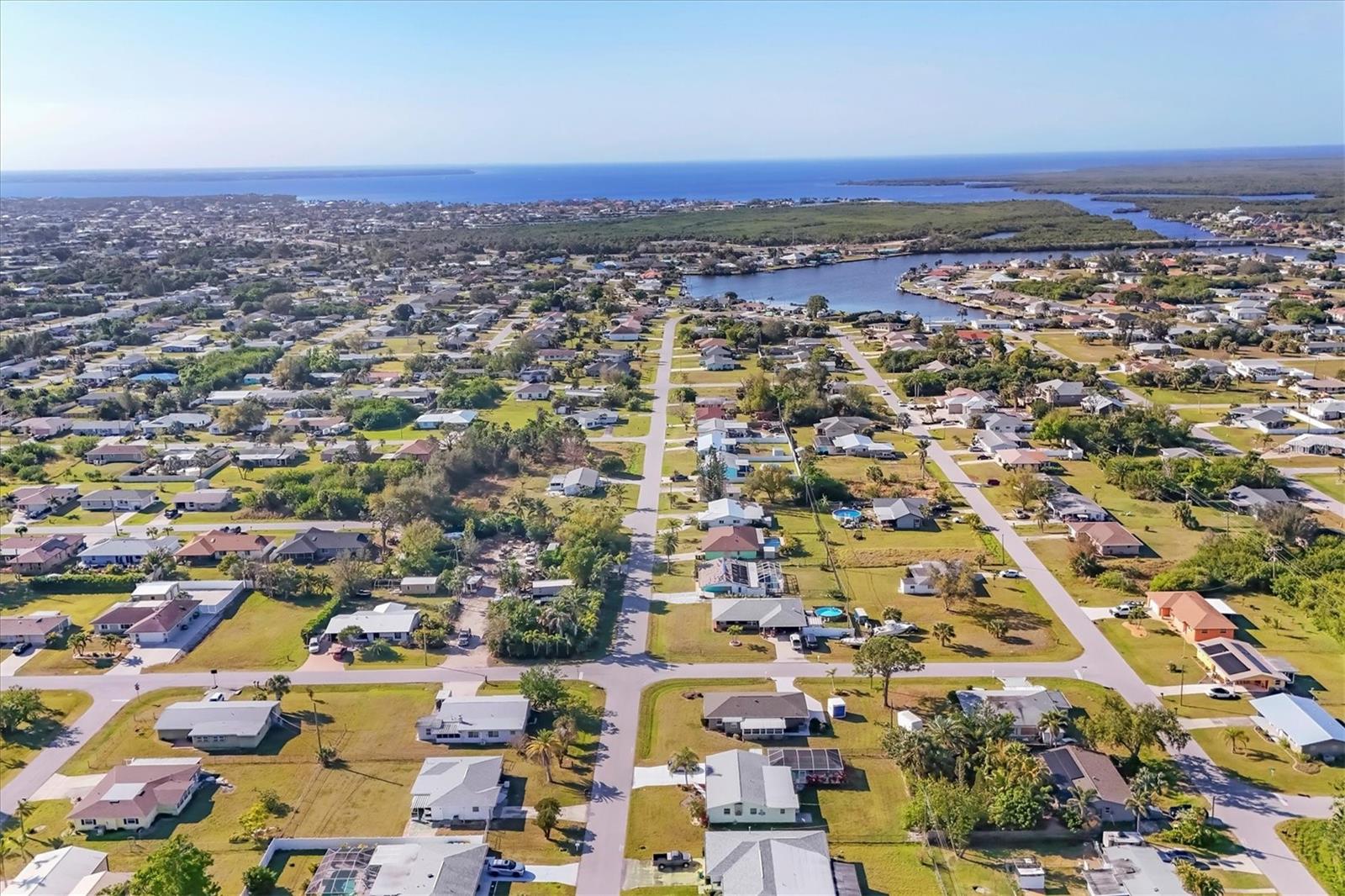 Welcome to this beautiful two bedroom, two bathroom home situated on a desirable corner lot in the heart of Port Charlotte. This property offers a spacious layout featuring a large one-car garage with additional slab space beside it, ideal for extra parking. The interior garage features wood steps (not pull-down) leading to the attic area, offering plenty of extra storage. A new roof 2021, new A/C unit 2024, new water heater 2021, gutters and soffit 2023, water shutoff valve 2021, exterior of the home and driveway painted 2025. The home’s living areas are enhanced by durable ceramic tile with a plank design in the living room, while the bedrooms are carpeted for comfort. An abundence of kitchen cabinets with plenty of corrian counter space to enhance this lovely kitchen. The finished lanai adds additional space for relaxation or entertaining. The home is located near shopping, dining, and entertainment, as well as spring training facilities for baseball fans. Don’t miss out on the opportunity to own this lovely home with an ideal combination of comfort, location, and modern upgrades. The home boasts beautiful landscaping that enhances its curb appeal, and it is connected to city water and sewer for your convenience. The property has been meticulously maintained, with recent updates