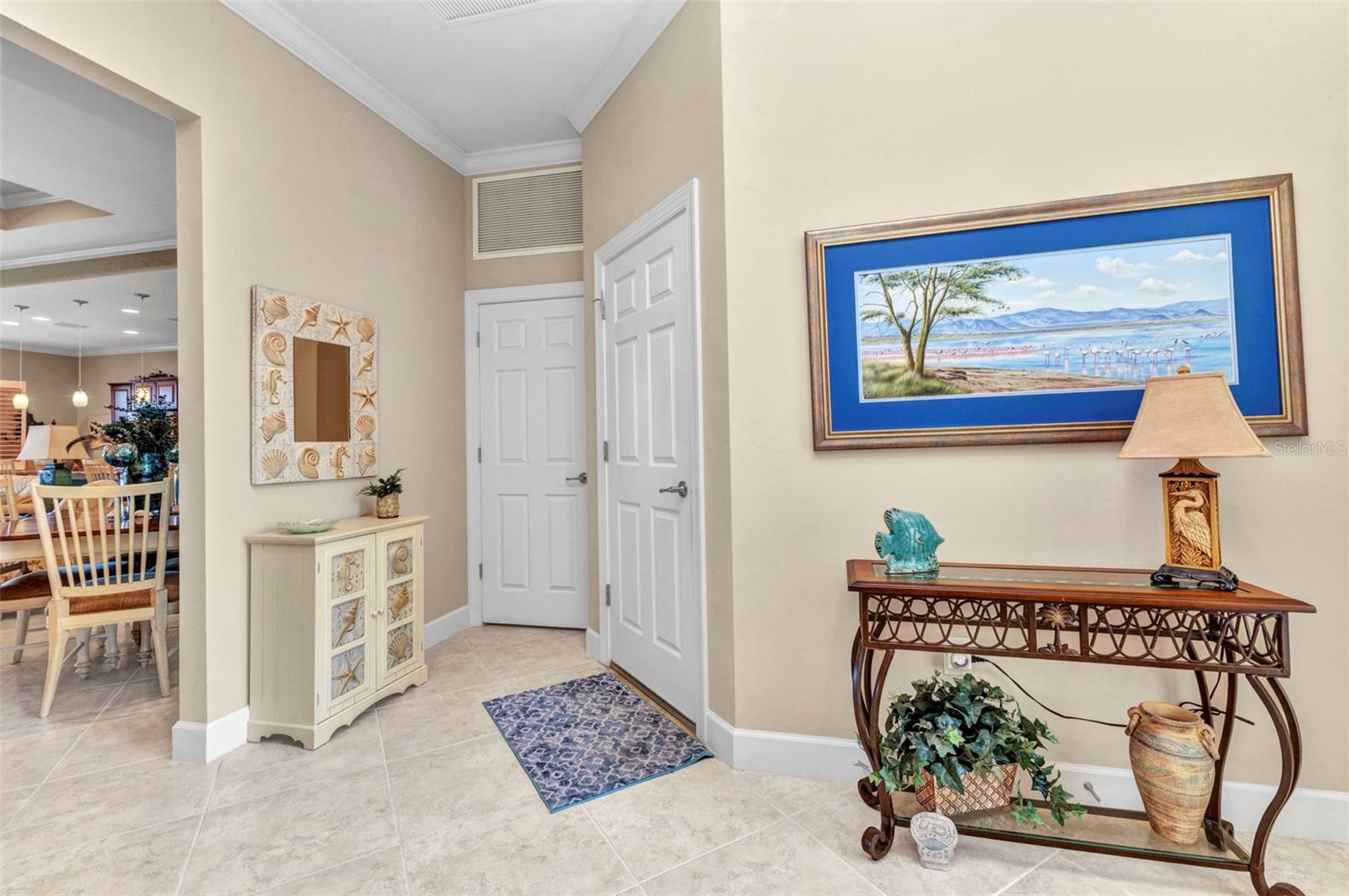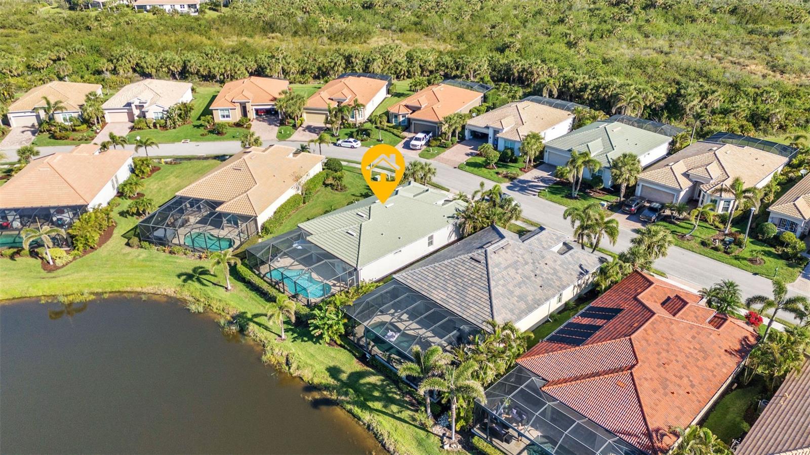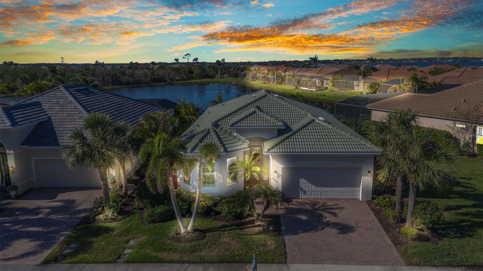 Discover the finest in Florida living in this beautifully decorated 3-bedroom, 2-bath + office home situated in the sought-after gated golf course community of Riverwood. Overlooking a tranquil pond, this home greets you with a brick paver driveway and fresh coastal colors that establish a light and airy atmosphere throughout. Step inside to find ceramic tile flooring in the main living areas, while the bedrooms and office boast rich solid wood floors. Plantation shutters, crown molding, and a lovely tray ceiling in the living room enhance the open, split-bedroom floor plan. Sliding glass doors open to a spacious 26' x 40' brick lanai, where tranquil water views and a sparkling heated saltwater pool await. The soothing sound of the pool’s water feature adds to the relaxing atmosphere. Recent upgrades include a new pool heater and salt cell, ensuring worry-free enjoyment. Whether you're soaking up the sun or seeking shade, the electric awning has you covered, and the electric roll-down shutter on the lanai provides storm protection and peace of mind. Designed for easy entertaining, the kitchen opens directly to the living area and includes granite counters with a tile backsplash, solid wood soft-close cabinetry, stainless steel appliances, a breakfast bar, and a sunny dining nook. A spacious primary suite with a coffered ceiling and private access to the lanai is en suite, featuring dual sinks, a large tiled walk-in shower, and a generous walk-in closet. Two guest bedrooms and a full guest bath provide plenty of space for family and friends—one guest room even features a charming bay window! You’ll also appreciate the private office/den and the laundry room, with extra storage and a utility sink conveniently located off the kitchen. For added peace of mind, there’s an electric roll-down shutter at the front door, along with shutters for the rest of the home. A spacious 2-car garage completes the package, offering plenty of room for your vehicles and storage needs. Furnishings are negotiable outside of the contract, making this a truly move-in-ready opportunity. As a resident of the vibrant Riverwood community, you’ll enjoy resort-style amenities, including a par 72 championship golf course, a state-of-the-art fitness center, a resort-style pool, pickleball courts, and Har-Tru tennis courts. Just beyond your doorstep, take advantage of world-class fishing, boating, dining, shopping, and the pristine beaches of the Gulf of Mexico. Ideally situated between Sarasota and Ft. Myers on Florida’s scenic West Coast, Riverwood offers the perfect blend of relaxation and adventure. Don’t miss the opportunity to make this beautiful home your own! BEACH CLUB MEMBERSHIP AVAILIABLE!!