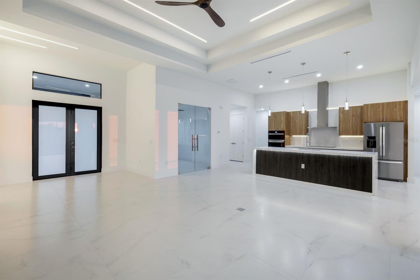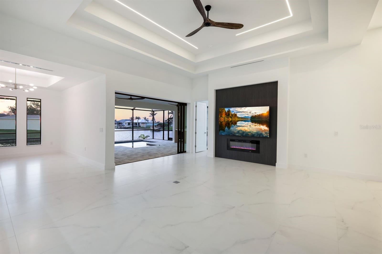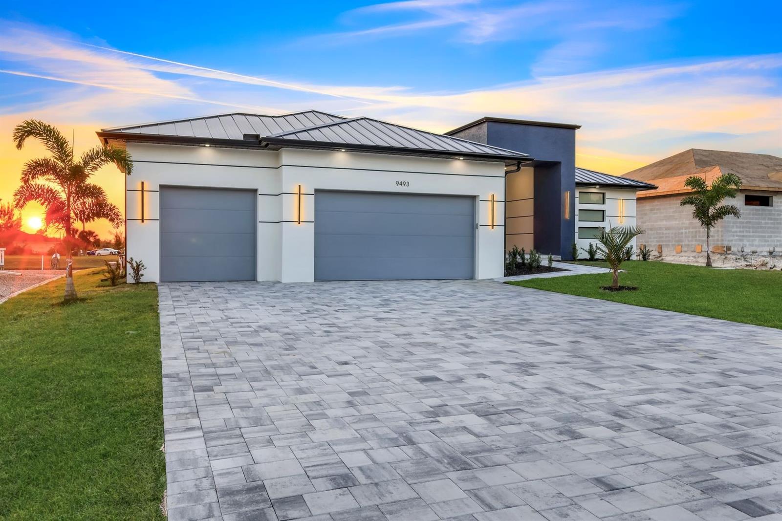 One or more photo(s) has been virtually staged. Stunning Gulf Access Waterfront Home with Modern Amenities Ready to move in. This magnificent 4-bedroom, 3-bathroom waterfront property offers 2,446 sq. ft. of luxurious living space. The entire house is adorned with oversized tiles, giving it a sleek and modern look.An upgraded kitchen with elegant quartz countertops featuring waterfall edges, European-style cabinets, and top-of-the-line Samsung appliances. A stylish living room with a modern electric fireplace and LED striped lights in the entryway for a touch of sophistication.A fully equipped outdoor kitchen, perfect for entertaining guests.A durable metal roof and hurricane impact windows providing extra protection and peace of mind.This move-in-ready home is designed for both comfort and style, making it the perfect place to enjoy waterfront living.