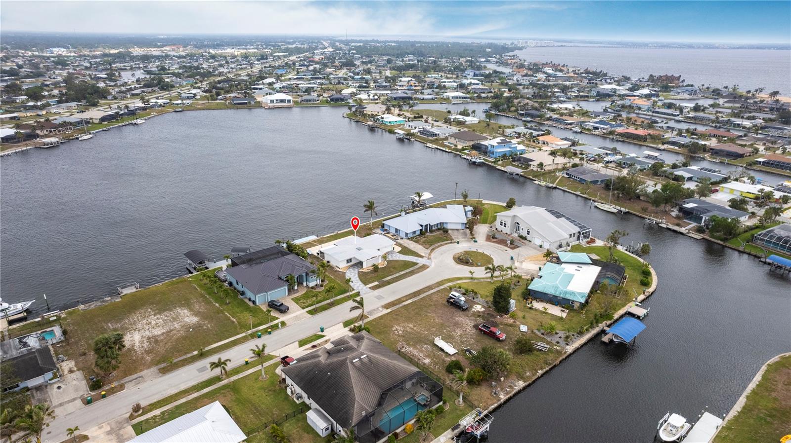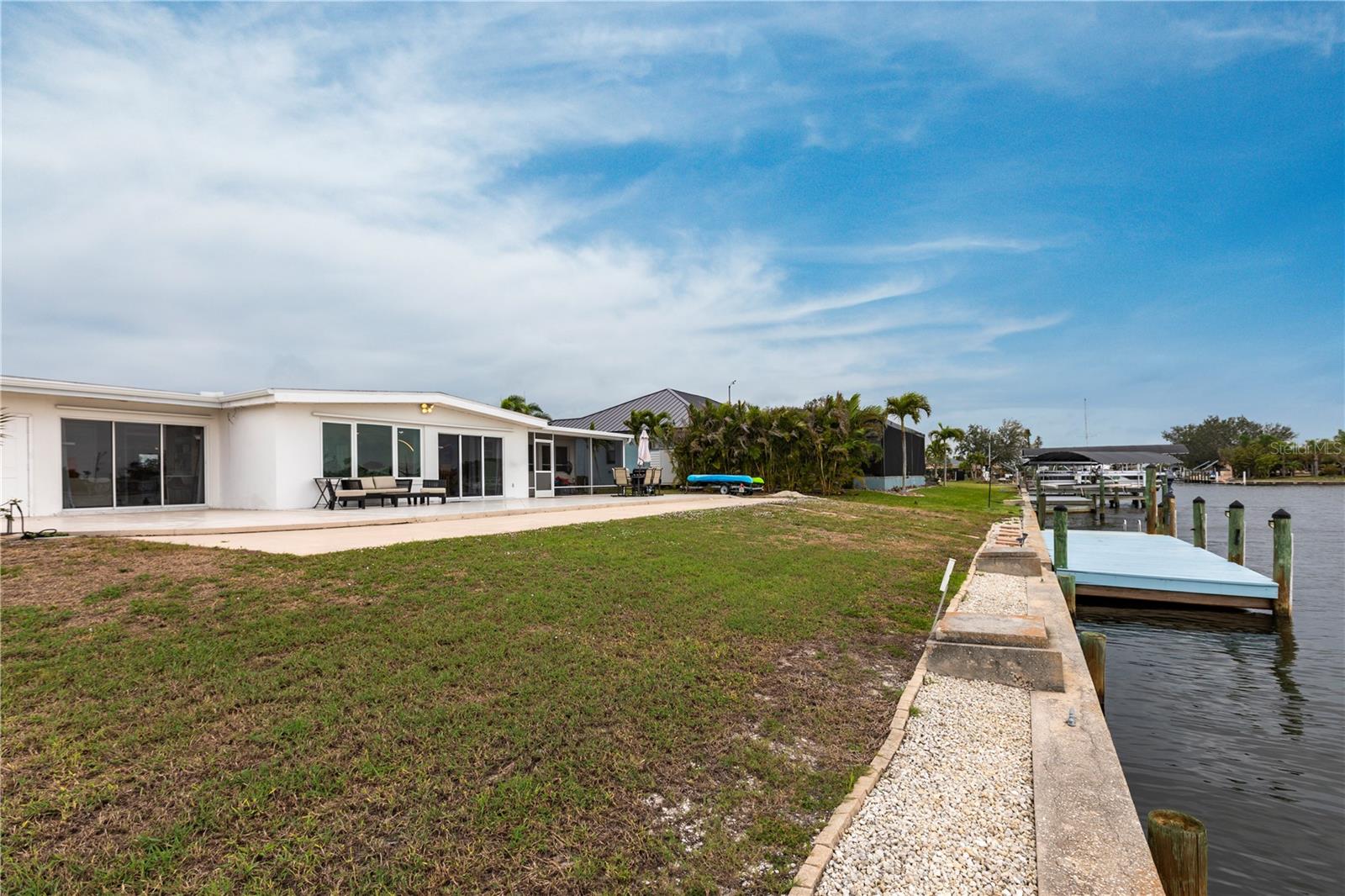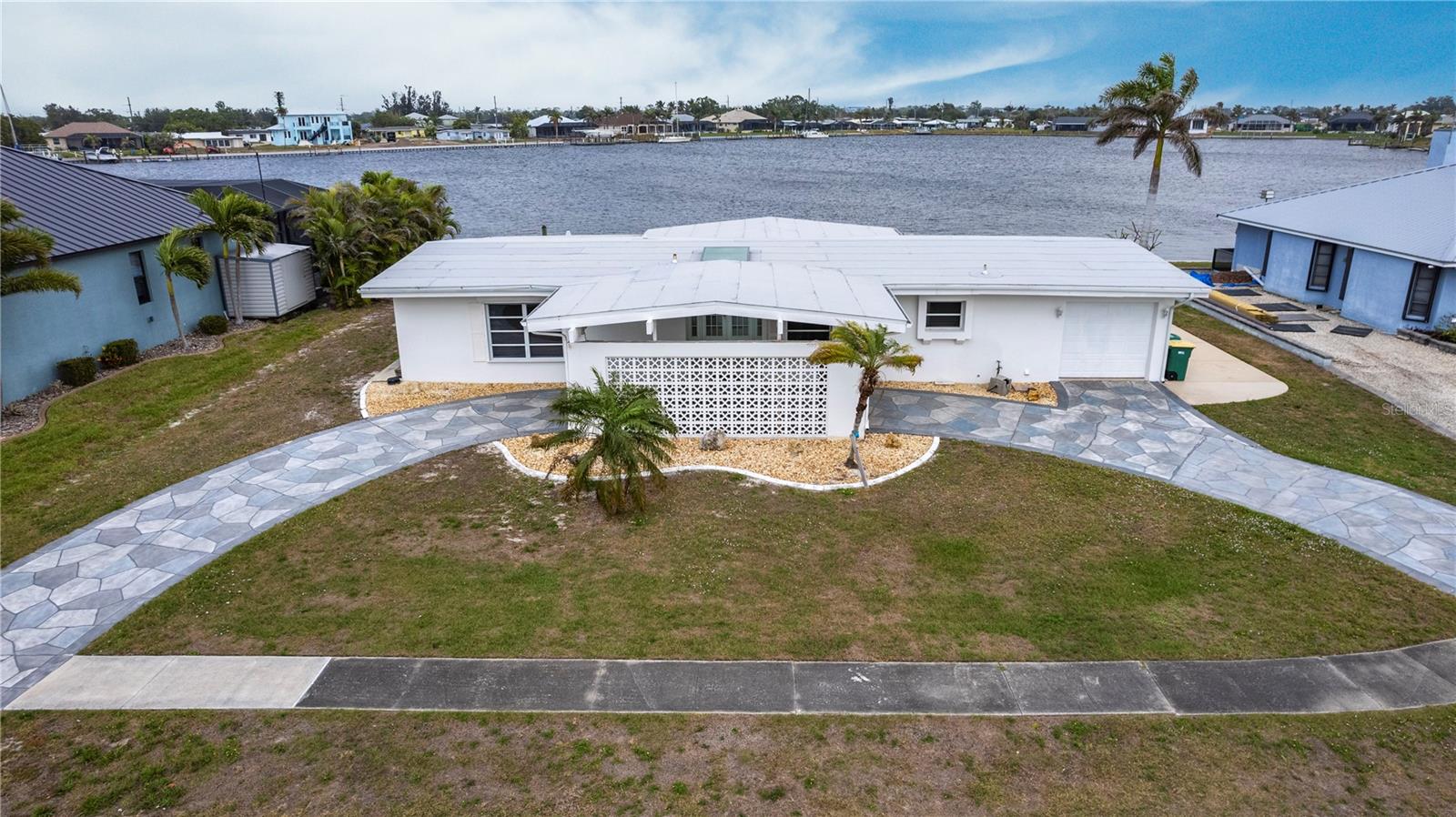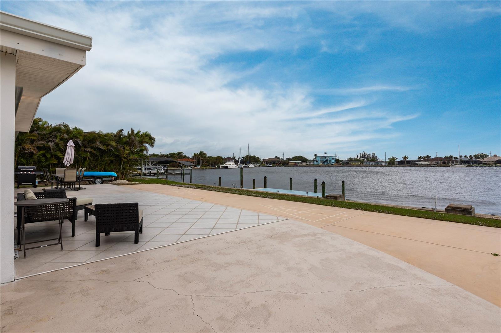 Waterfront Paradise with Deep Water Sailboat Access and wide open views! Location is everything, and this is your chance to own a stunning three-bedroom home on a quiet cul-de-sac with approximately 100 feet of frontage on Edgewater Lake. Enjoy breathtaking, unobstructed views from the living area as you walk in, stunning sunrises, and an abundance of marine life—including tarpon, mullet, and bottlenose dolphins—right in your backyard. Boaters will love the deep water sailboat access with no bridges, offering quick and direct passage to the bay and the Gulf of Mexico. The protected inlet serves as a safe haven for boats while keeping you just moments from open water adventures. Inside, the open floor plan features a spacious living area and a split-bedroom layout for added privacy. The updated island kitchen boasts custom cabinetry, beautiful countertops, a wine fridge, custom lighting, and a pantry. Additional highlights include a large laundry room with ample storage, an extra-long one-car garage with doors on both ends, a circular driveway with a porte-cochère, and a concrete pad with a hookup for your boat or RV. Don’t miss this rare opportunity for waterfront living with quick Gulf access—schedule your showing today!