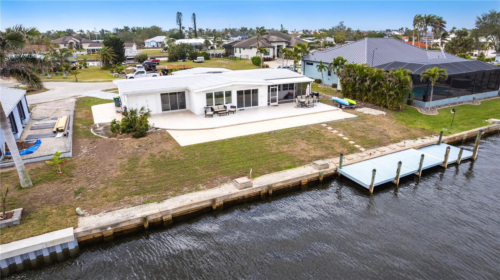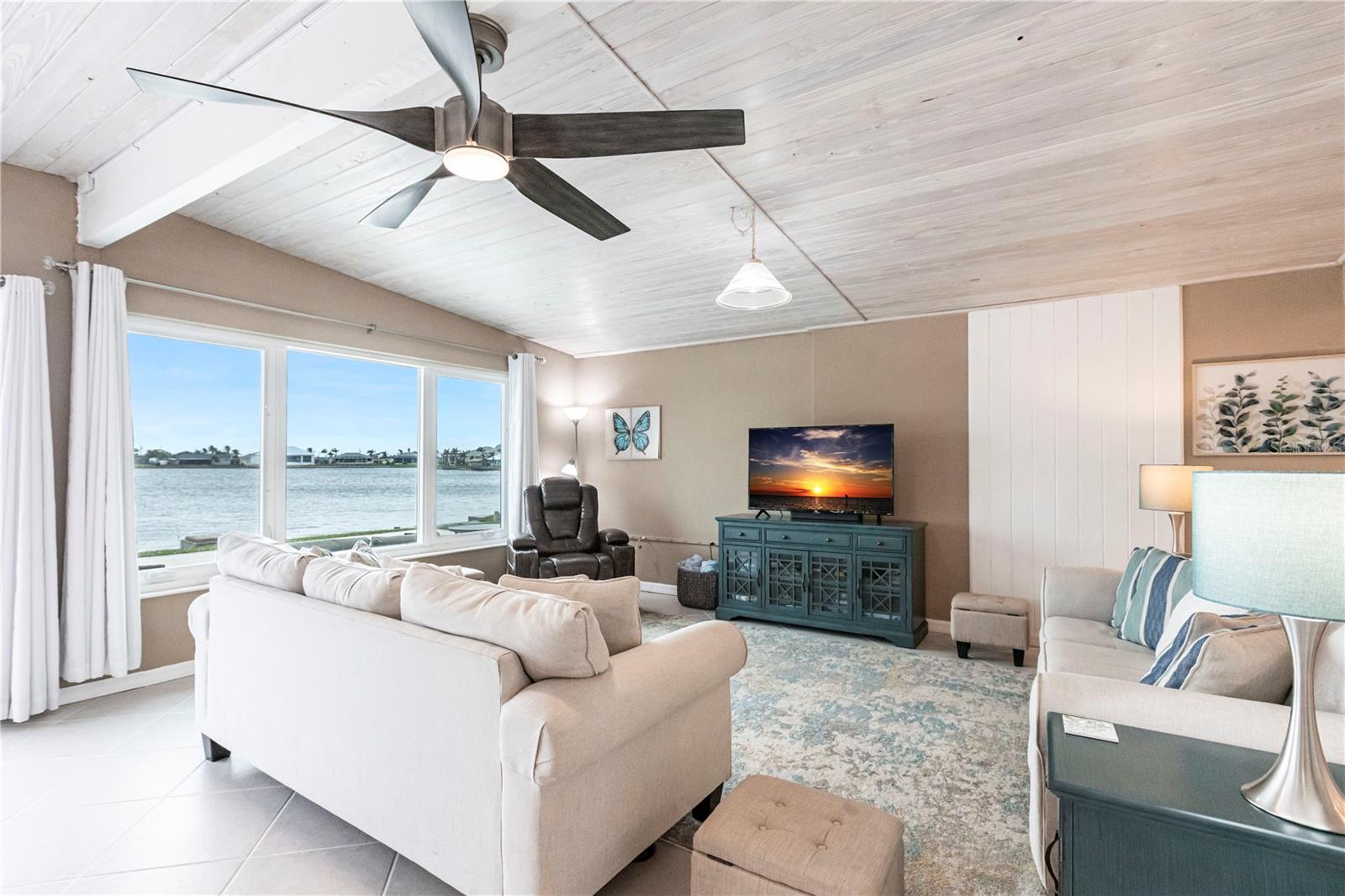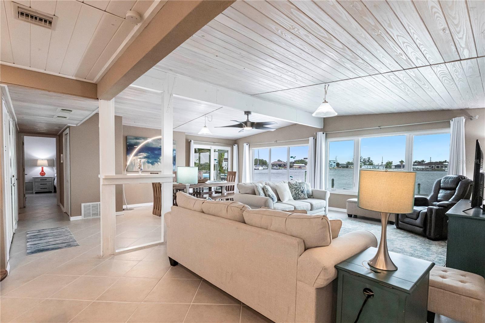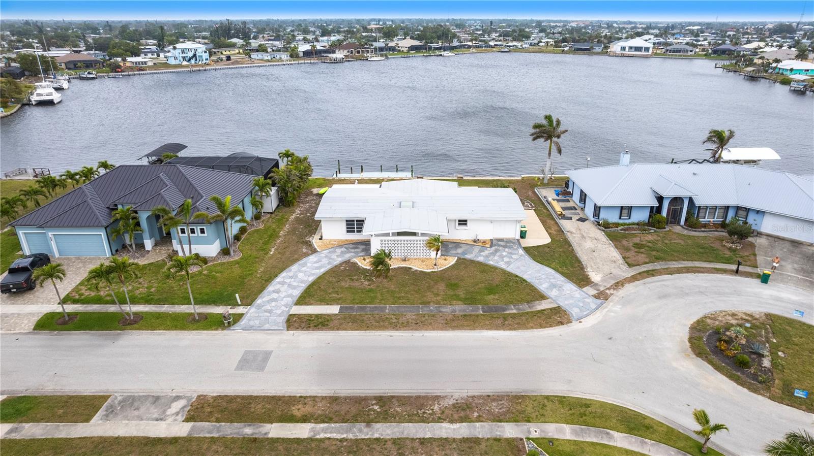 Waterfront Paradise with Deep Water Sailboat Access and wide open views! Location is everything, and this is your chance to own a stunning three-bedroom home on a quiet cul-de-sac with approximately 100 feet of frontage on Edgewater Lake. Enjoy breathtaking, unobstructed views from the living area as you walk in, stunning sunrises, and an abundance of marine life—including tarpon, mullet, and bottlenose dolphins—right in your backyard. Boaters will love the deep water sailboat access with no bridges, offering quick and direct passage to the bay and the Gulf of Mexico. The protected inlet serves as a safe haven for boats while keeping you just moments from open water adventures. Inside, the open floor plan features a spacious living area and a split-bedroom layout for added privacy. The updated island kitchen boasts custom cabinetry, beautiful countertops, a wine fridge, custom lighting, and a pantry. Additional highlights include a large laundry room with ample storage, an extra-long one-car garage with doors on both ends, a circular driveway with a porte-cochère, and a concrete pad with a hookup for your boat or RV. Don’t miss this rare opportunity for waterfront living with quick Gulf access—schedule your showing today!