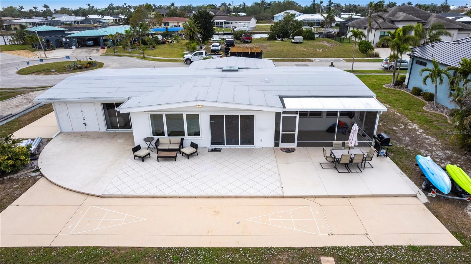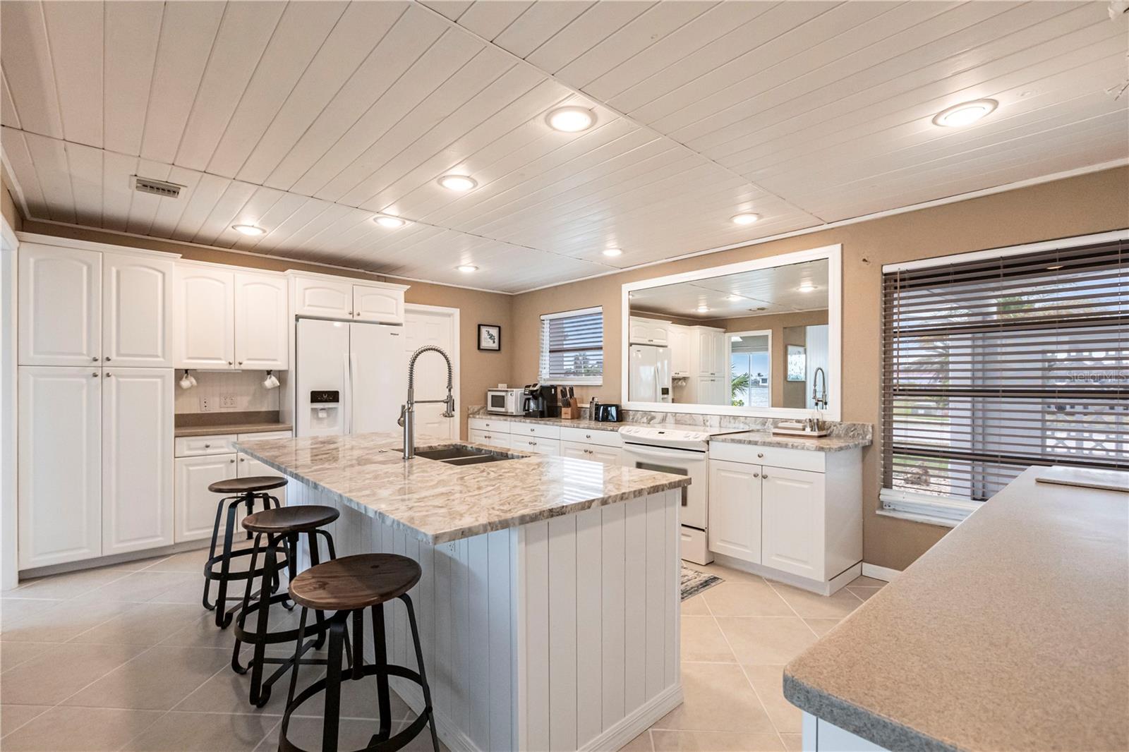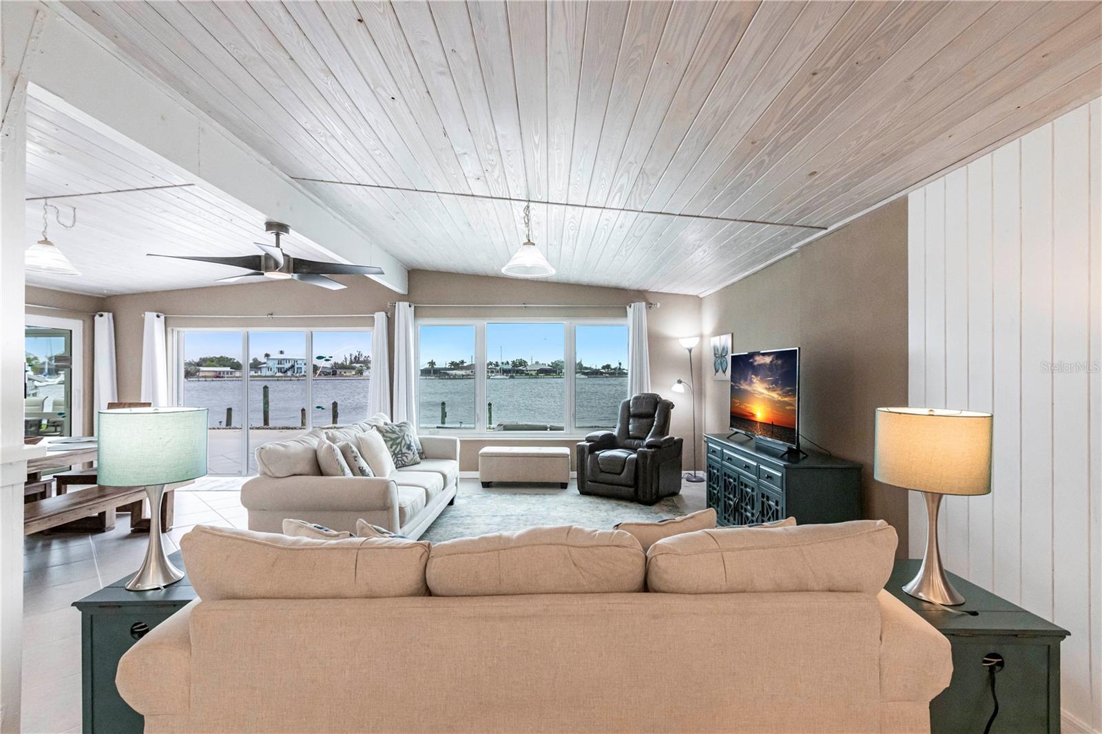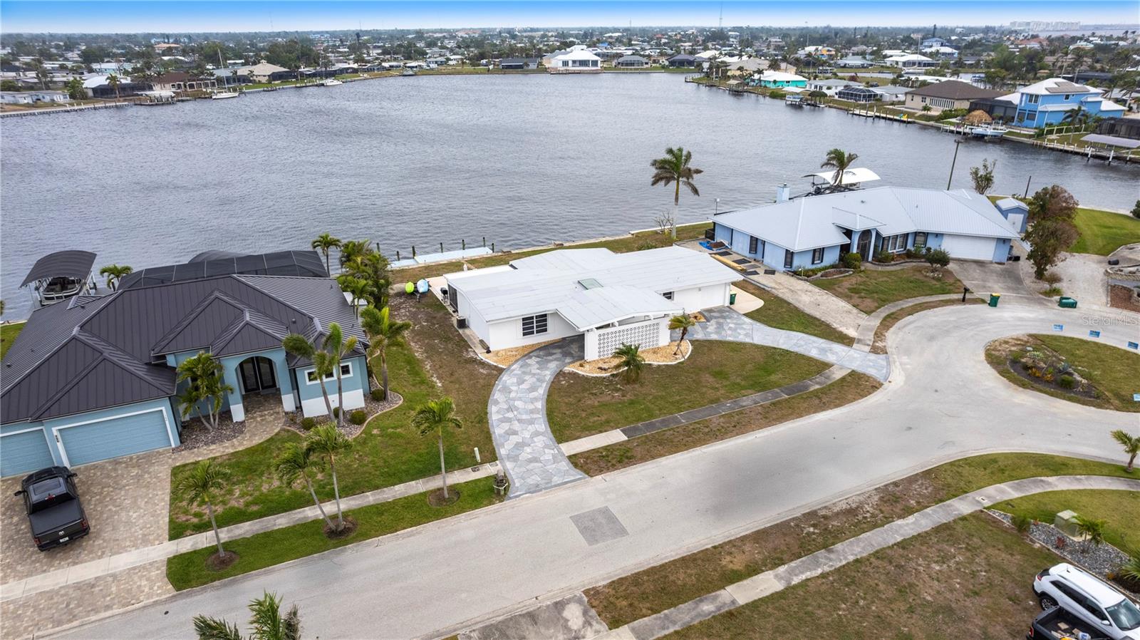 Waterfront Paradise with Deep Water Sailboat Access and wide open views! Location is everything, and this is your chance to own a stunning three-bedroom home on a quiet cul-de-sac with approximately 100 feet of frontage on Edgewater Lake. Enjoy breathtaking, unobstructed views from the living area as you walk in, stunning sunrises, and an abundance of marine life—including tarpon, mullet, and bottlenose dolphins—right in your backyard. Boaters will love the deep water sailboat access with no bridges, offering quick and direct passage to the bay and the Gulf of Mexico. The protected inlet serves as a safe haven for boats while keeping you just moments from open water adventures. Inside, the open floor plan features a spacious living area and a split-bedroom layout for added privacy. The updated island kitchen boasts custom cabinetry, beautiful countertops, a wine fridge, custom lighting, and a pantry. Additional highlights include a large laundry room with ample storage, an extra-long one-car garage with doors on both ends, a circular driveway with a porte-cochère, and a concrete pad with a hookup for your boat or RV. Don’t miss this rare opportunity for waterfront living with quick Gulf access—schedule your showing today!