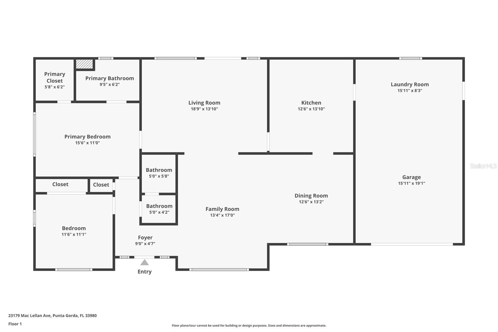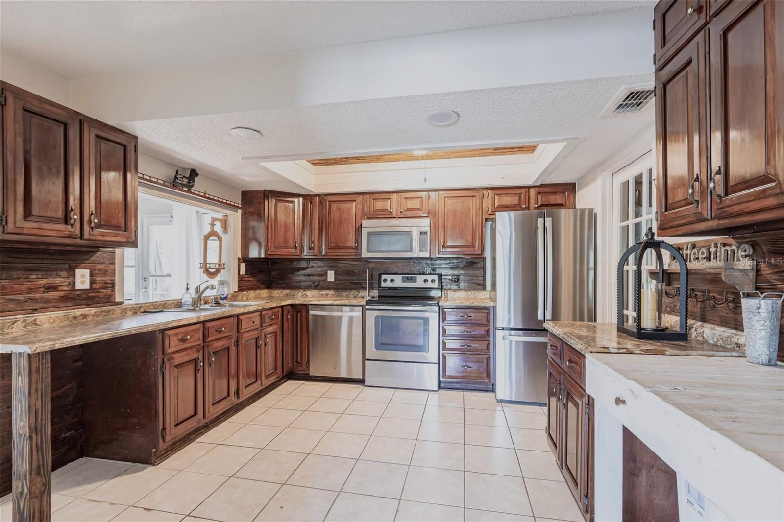 Perfect opportunity to own this 2-bedroom 2-bathroom home with attached garage located in Port Charlotte. Home has 1,206 square feet of living space with size-able backyard and outdoor patio area. New Roof in 2022 and Whole House Re-Pipe in 2023. Step inside, and you'll be greeted by a spacious living room seamlessly connected to the dining area and kitchen, creating an inviting open concept living space. The warm ambiance of tiled floors throughout the home are great for easy maintenance. The spacious kitchen features stainless-steel appliances, rich hardwood cabinetry, and a generous double sink with a window overlooking the cozy enclosed family room. The tray ceiling adds a touch of elegance, while the ample storage space ensures you’ll have room for all your essentials and more. Perfect for both cooking and entertaining, this kitchen is designed to meet all your needs. Both the kitchen and the living room flow into the Family room with a wall of windows that overlook the outdoor patio area and backyard. The primary bedroom is a peaceful retreat, complete with a walk-in closet, ceiling fan and an en-suite bath with a walk-in shower and a granite-topped vanity. The guest bedroom is generously sized, offering ample closet space, and is conveniently located near a full guest bathroom. The attached 20x16 garage boasts durable epoxy flooring that's fully resistant to tire marks and includes a 15x8 laundry area with a washer and dryer, plus additional storage space. An oversized driveway offers plenty of parking for family and visitors. The large backyard provides plenty of room to add a pool if desired. Located in a nice quite neighborhood. Centrally located between Punta Gorda and North Port with easy access to I75 and US41 along with all the major stores, eateries, schools, beaches, golf and more.