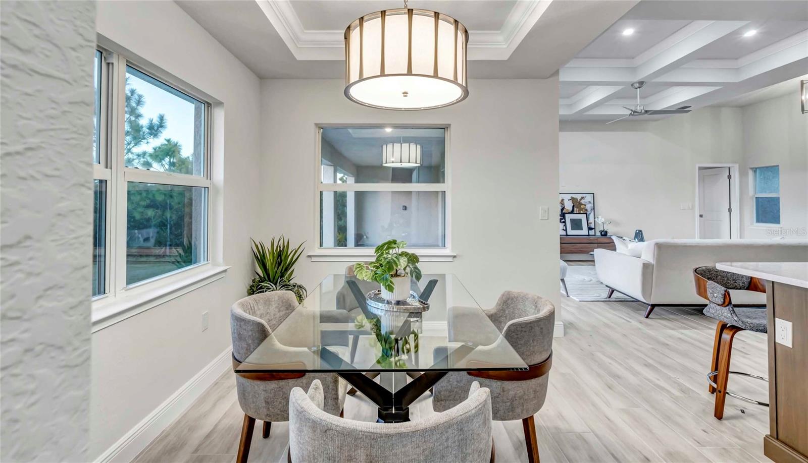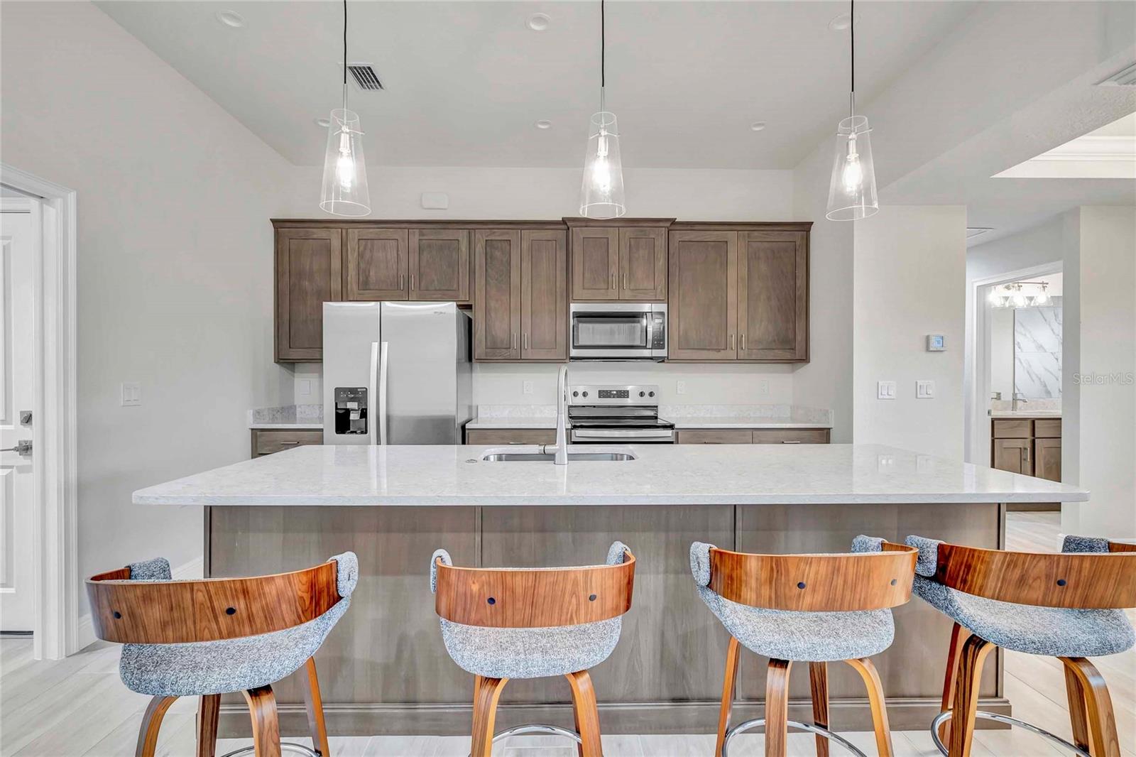 Brand New Move-In Ready Home! Introducing the Turnberry DX model by the award-winning Harbor Home Builders. This beautifully crafted 3-bedroom, 2-bathroom, 3-car garage home welcomes you with a grand 12-foot entryway and elegant coffered ceilings. Enjoy luxury finishes throughout, including impact windows, porcelain plank flooring, solid wood cabinetry with soft-close doors and drawers, quartz countertops, and designer lighting and fans. The spacious primary suite features a tray ceiling with ambient lighting, a transom window, a generous walk-in closet, and an additional storage closet. The primary bath offers dual vanities and a stunning tiled walk-in shower. Step outside to the expansive 27' x 9' lanai, complete with an entertainment wall featuring electrical outlets and provisions for an outdoor kitchen — perfect for relaxing or entertaining. Don’t miss your chance to own this exceptional new home. Schedule your private showing today!