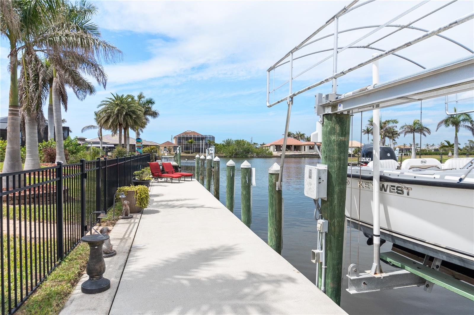 Get ready to experience the ultimate Southwest Florida lifestyle in this beautifully upgraded 3-bedroom, 2-bathroom FURNISHED waterfront home in the highly sought-after community of South Gulf Cove! Boasting over 2,000 sq. ft. of living space, this property is perfectly situated in the northeastern corner of the neighborhood, boasting 128 feet of water frontage, and just minutes from the South Gulf Cove lock, providing quick and easy access to open water and Charlotte Harbor—an ideal setup for boaters, anglers, and island hoppers alike.<br /><br /> Step inside and be welcomed by ceramic wood-look tile flooring, vaulted ceilings, and a modern, coastal-inspired interior. The open-concept kitchen is a chef’s dream, featuring stone countertops, stainless steel appliances, and custom wood cabinetry—all overlooking the spacious living and dining areas. A built-in Sonos sound system elevates your daily soundtrack whether you’re entertaining guests or enjoying a relaxing evening at home.<br /><br /> Need a flex space? A cozy nook area provides the perfect spot for a home office, reading lounge, or creative corner—a rare and versatile bonus!<br /><br /> The primary suite offers a true retreat with a luxurious soaker tub, dual vanity, and his & hers walk-in closets. Both guest bedrooms are oversized, easily fitting king-size beds—ensuring comfort for guests or family.<br /><br /> Step outside into your own tropical paradise: a heated pool, lush landscaping, and elegant landscape lighting make this backyard perfect for both day and night enjoyment. The 60-foot private concrete dock, equpped with lighting, electrical and water, along with a 9,000 lb boat lift ensure your boat is always ready for the next adventure. Irrigation keeps the yard pristine year-round, while the 3-car garage with epoxy floors adds functionality, storage, and style—ideal for vehicles, toys, or your next workshop setup.<br /><br /> Enjoy peace of mind with recent updates including a new roof (2023), new pool cage (2023), and new A/C system (2021). This home also features a ManaBloc plumbing system and tankless hot water heater, enabling more efficient use of the water system.<br /><br /> The South Gulf Cove community features an optional HOA, multiple parks, walking paths, playgrounds, and community boat ramps. You’re also just a 20-minute drive to Englewood Beach and 25 minutes to Boca Grande, making beach days and coastal adventures easier than ever.<br /><br/> Don’t just dream about waterfront living—make it your reality. This home checks all the boxes and is ready for you to move in and enjoy from day one.