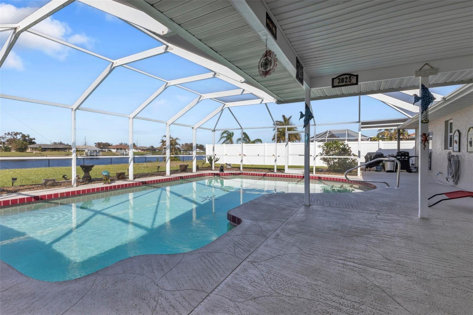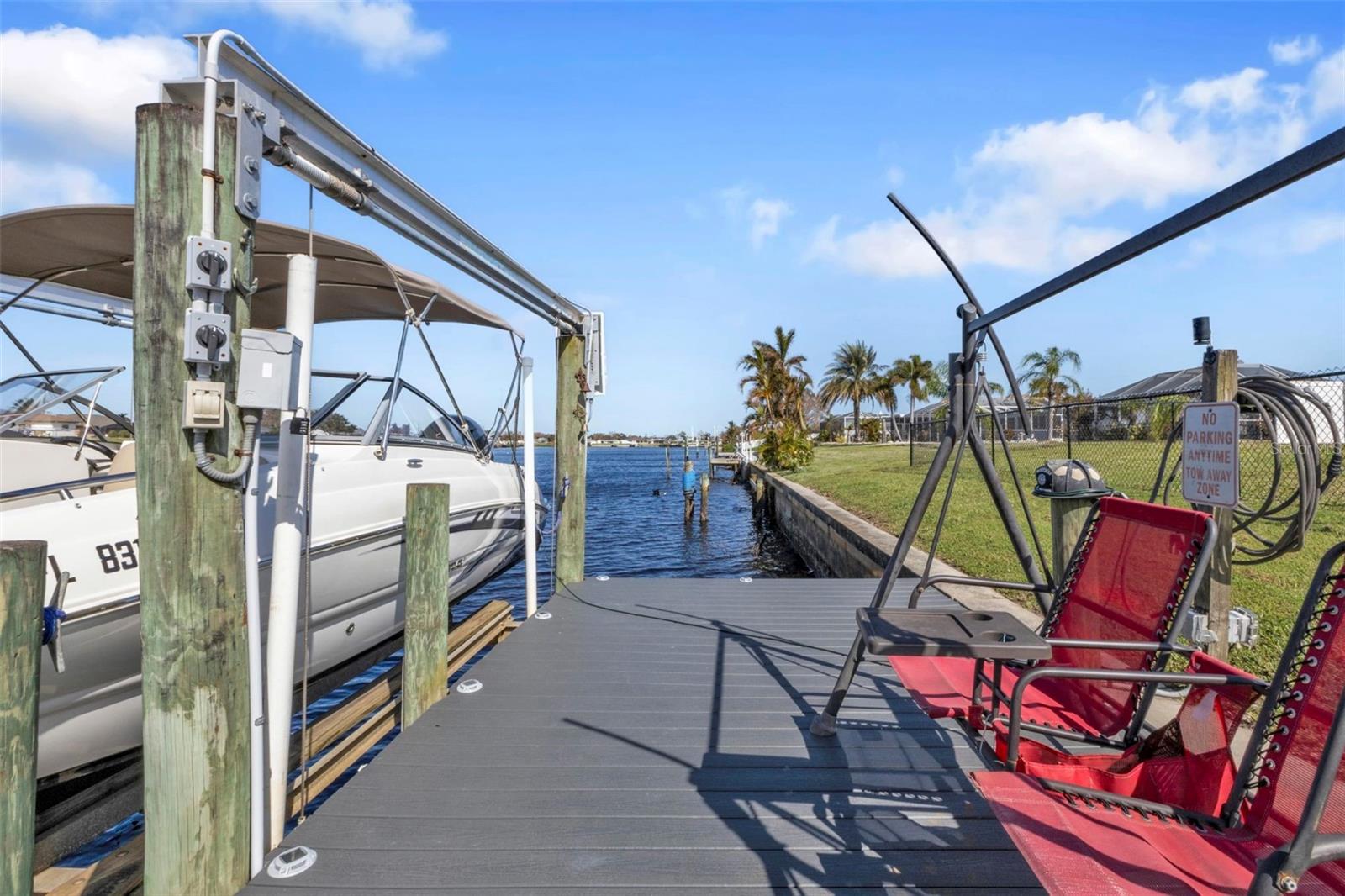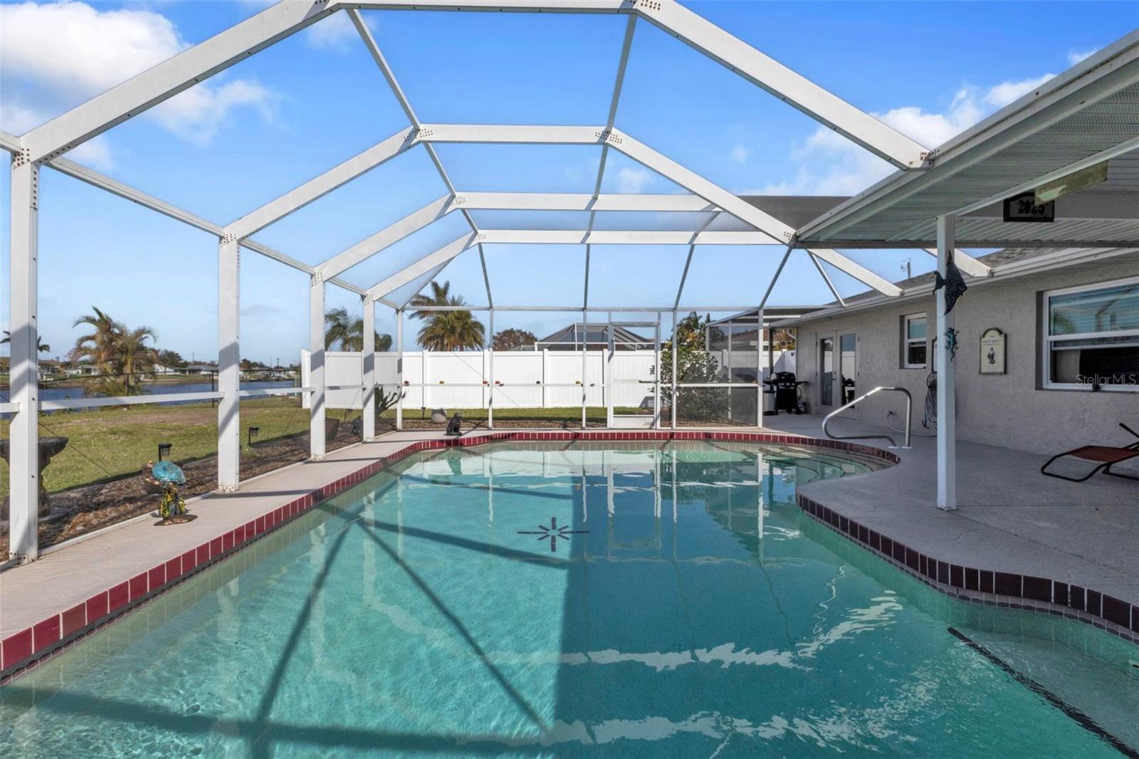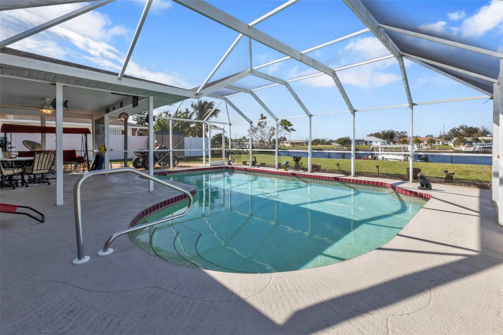 BEAUTIFUL SUNSETS AWAIT! BOATER’S PARADISE!! Welcome to YOUR dream waterfront oasis! This stunning 4 bed, 2 bath, 2-car garage WATERFRONT POOL home, boasts an expansive 1,932 square feet under air with 8ft ceilings creating a welcoming space with plenty of room for both relaxation and entertainment. Enjoy the convenience of CITY WATER and beautifully landscaped. Step inside to discover a bonus room-a potential 5th bedroom, or office featuring a charming bay window for natural light. The recently remodeled kitchen boasts NEWER cabinets, quartz countertop, and sub tile backsplash, all complemented by laminate flooring. Stainless steel appliances and a convenient closet pantry complete this kitchen. Entertain in the spacious living/dining room with access to the inviting pool area through French doors. The master bedroom is spacious with tile flooring, a walk-in closet, and French doors leading to the pool & lanai. The master bathroom features a single sink and a walk-in shower. Both guest bedrooms have been upgraded with laminate flooring, creating comfortable and inviting spaces. The guest bathroom features a single sink and a shower/tub combo. You will find the expansive 4th bedroom off of the living area featuring tile flooring, closet, and French doors to lanai & pool. Laundry is conveniently located in garage. Outside living at its finest! The oversized pool and lanai provide the perfect setting for entertaining and enjoying breathtaking sunsets. Boating and fishing enthusiasts will love the 80 feet of waterfront featuring a NEW composite dock, electric and water hookups, and a 7,000 lb boat lift for quick access to Charlotte Harbor. With two bridges leading out to the harbor, waterfront adventures are just a short boat ride away! The fully fenced yard includes a NEW storage shed with platform for your outdoor needs. Enjoy peace of mind with recent upgrades including: Septic System "2025", Two Boat Lift Motors Replaced "2024", NEW Dock with composite decking "2024", Nest Thermostat "2024", AC Condenser "2024", Fence "2024", 50 AMP for RV "2024", Garage Door Opener “2024”, New Microwave "2024", Impact windows "2023", Roof "2023", AC Handler "2023", New Gutters "2023", Hot Water Heater "2023" and Pool Cage rescreened "2022". The interior and exterior have been freshly painted in 2023, including the driveway, walkway and lanai. New light fixtures installed to enhance the ambiance. The home was repiped in 2015, ensuring excellent condition. Conveniently located to 41, restaurants, shopping, beaches and much more!!! Don't miss the chance to make this waterfront paradise your own. Schedule a viewing today and let your dream home become a reality!