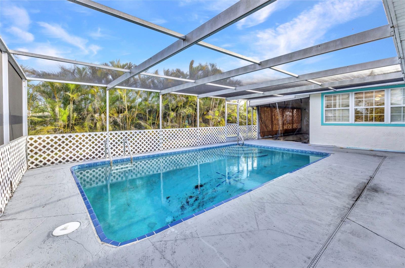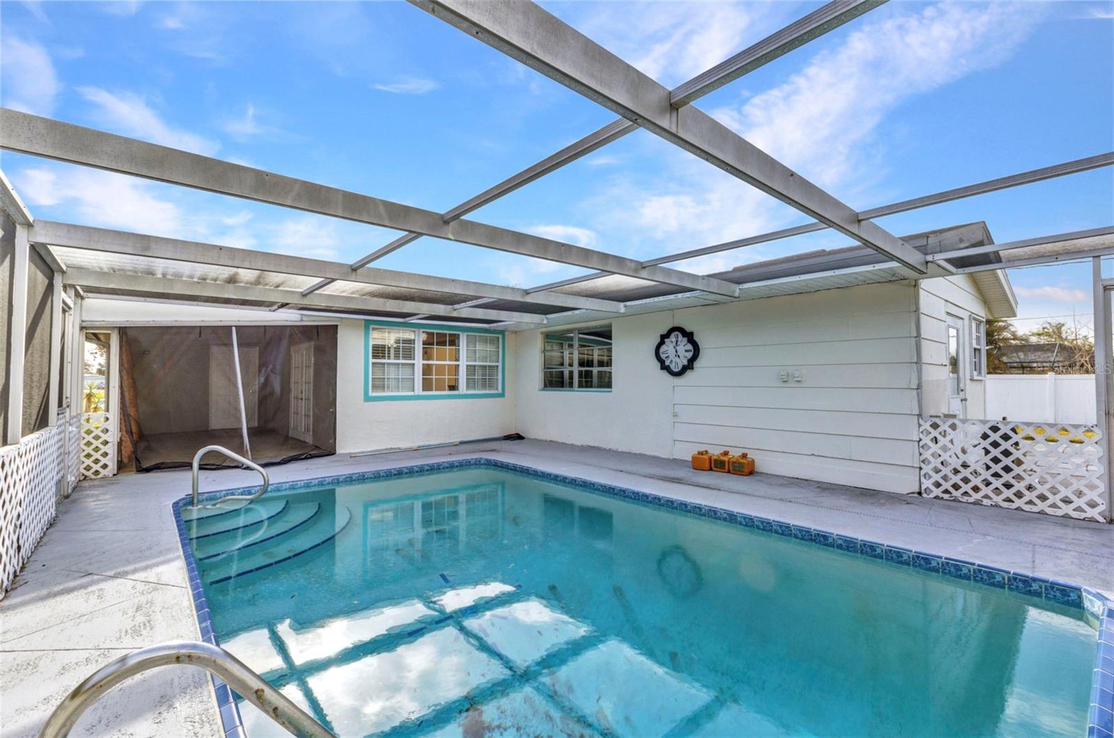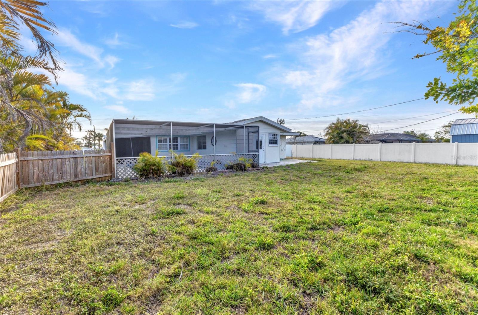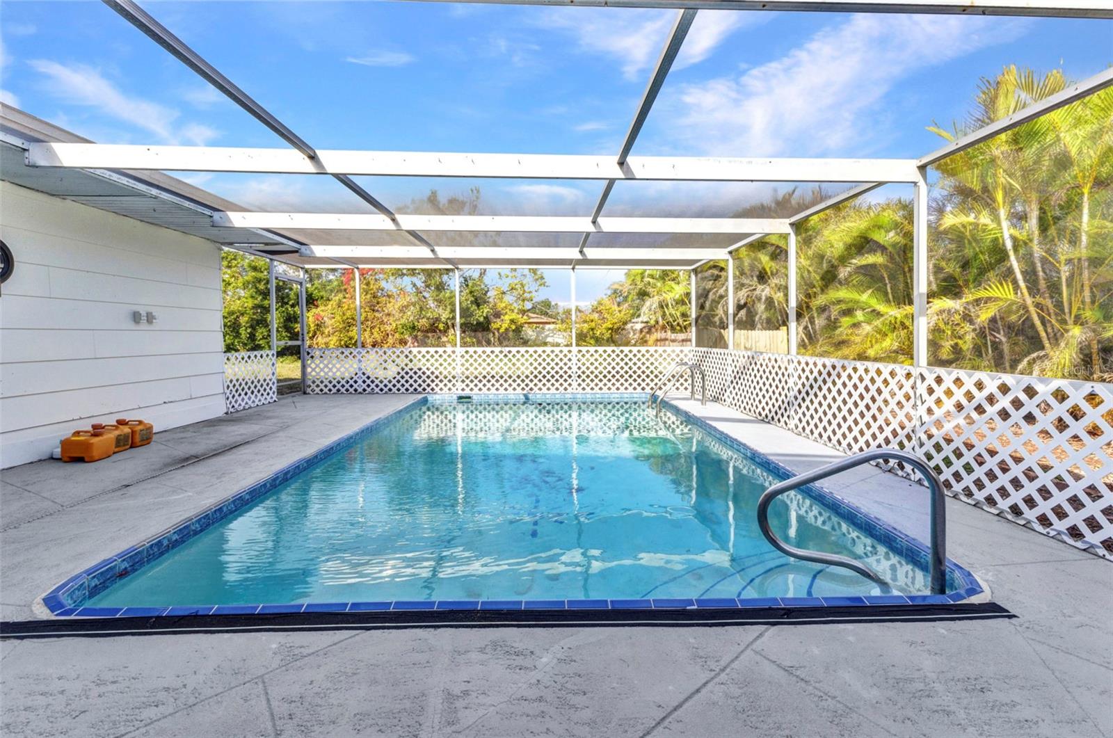 Affordable living in a cozy 3 bedroom open floor plan with a bonus room and a one car garage. 3rd Bedroom could be used for an office, exercise room, nursery room, etc. A family room with wooden plantation shutters over looking 9' deep pool with a large lanai area for entertaining with brand new lanai screens. New cabinets in kitchen, has an area for a little eat in table. Bar stools could be added as well. Garage has a work bench and lots of space for storage. Big back yard all fenced in. Room for your boat, RV, Trailers, toys. As well as room for a play area, garden, along with area for the dogs to run around. Close to shopping, Hospitals, Charlotte Co beach park with a pool and boat launch area etc. Golfing, Beaches.