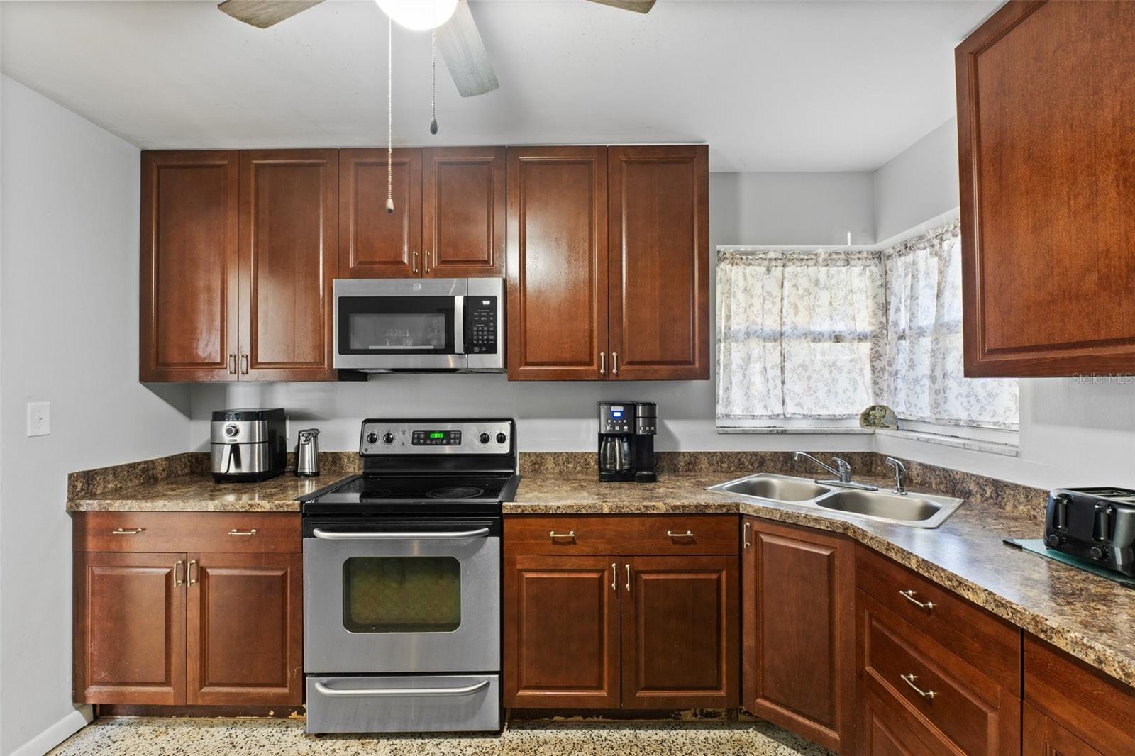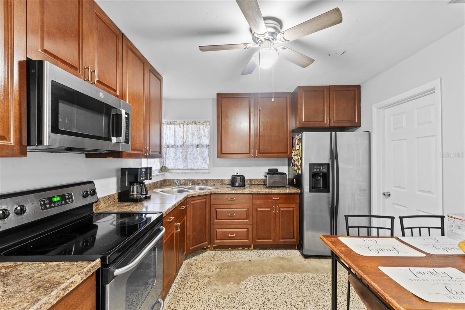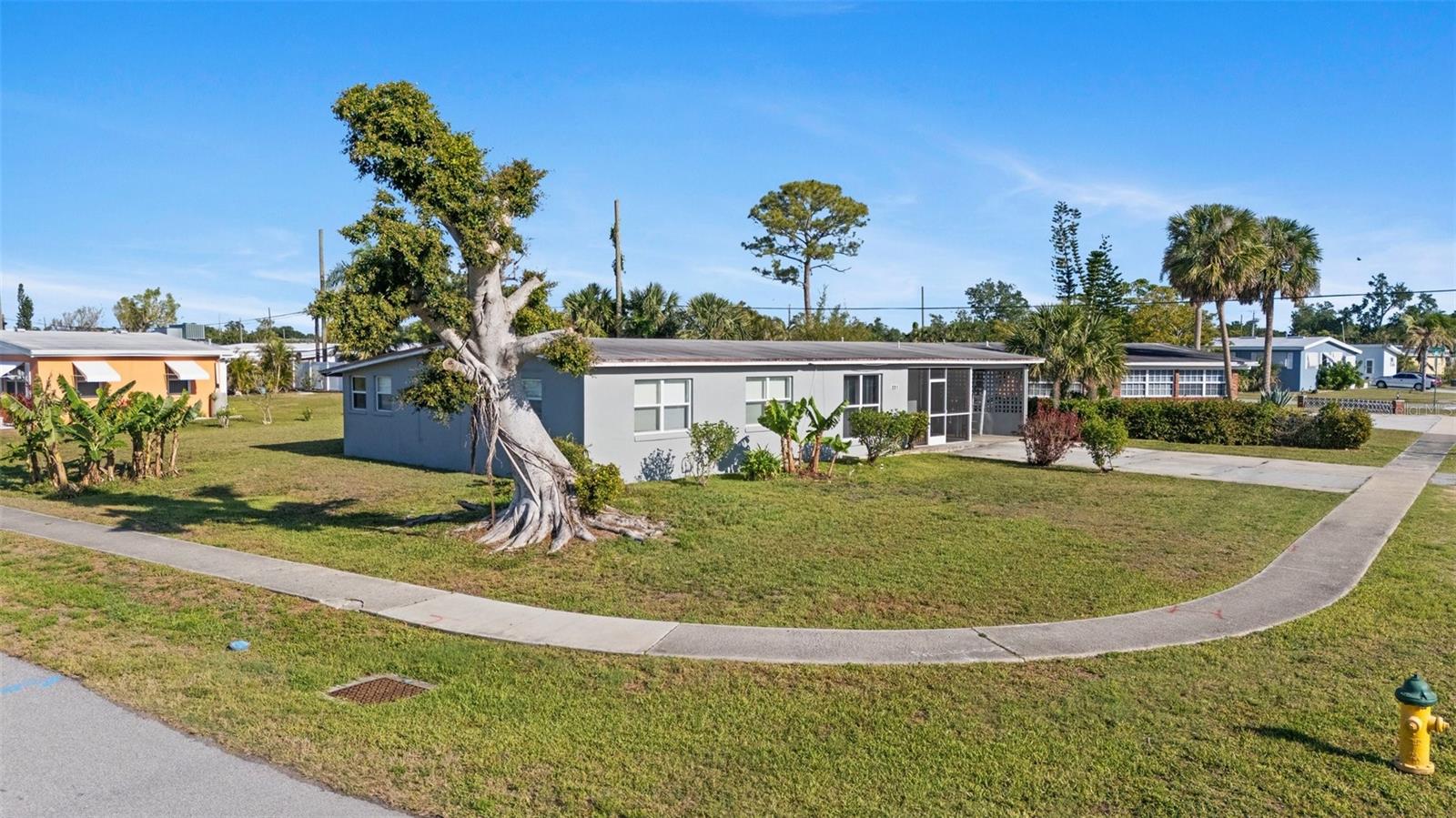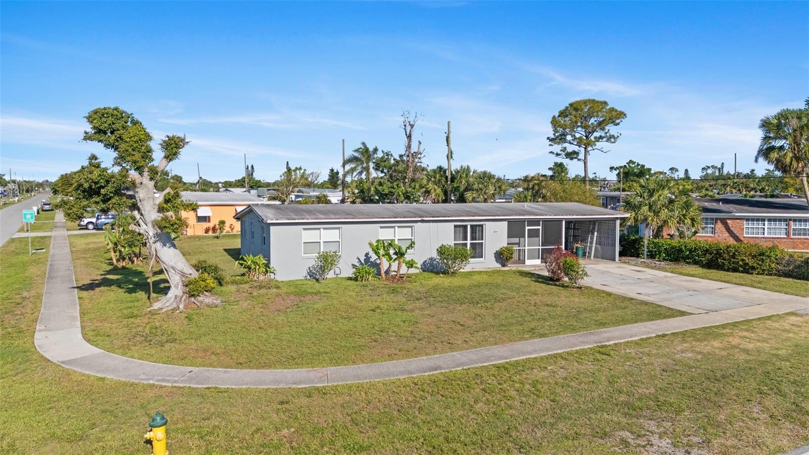 Well maintained 4 BD, 2 BA home on spacious corner lot, featuring 2 additional bonus rooms! Ideal for families, first-time buyers, or anyone looking to enjoy a blend of comfort and convenience. Enter the home into the nicely sized living room, open to the dining area with built-in shelving. The remodeled kitchen has stainless steel appliances and plenty of cabinet space! Just off the kitchen is the laundry room, with a NEW water heater, 2nd refrigerator, shelving and an exterior door to the carport. On the opposite side of the home are the bedrooms. Just off the dining room you'll find bedroom #4. Walk down the hall to find the other three bedrooms. The Primary bedroom has a remodeled en-suite bathroom. Bedroom #2 and #3 are across the hall from the remodeled second bathroom, with a walk-in shower. Terrazzo floors and ceiling fans throughout the home. The 2 bonus rooms are accessed from the back of the home - great for a home office, workout room, playroom - whatever your heart desires! Enjoy evenings around the backyard fire pit. A storage room is also accessed from the back of home, great for storing gardening tools and other items. Carport and large driveway can accommodate multiple vehicles. *Kevlar storm/hurricane shutters. *Exterior recently stuccoed and painted. *NEW water heater 2025 *NEW HVAC and electric panel 2023. **Excluded: Washer & Dryer, Cameras on exterior of home** Close to shopping, dining, beaches and outdoor activities! Just down the street is the Boys and Girls Club of Charlotte County!! Don't miss out on the opportunity to make this your own!