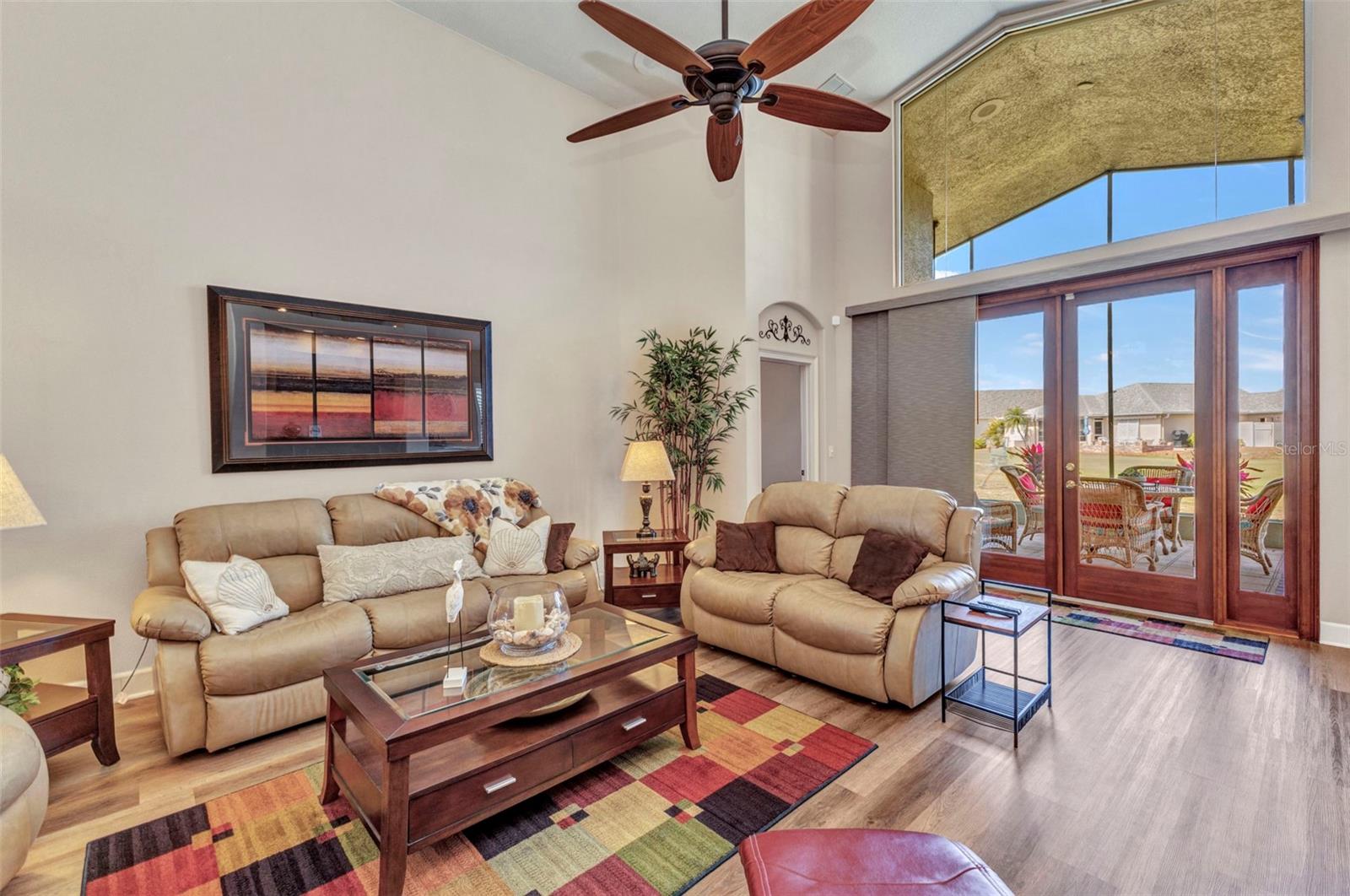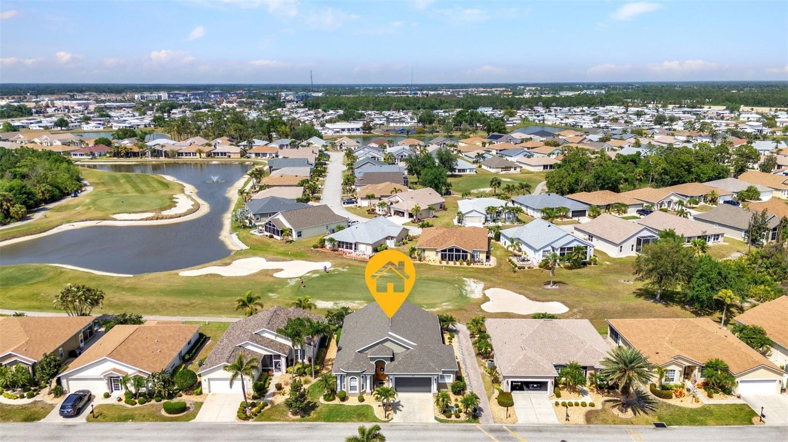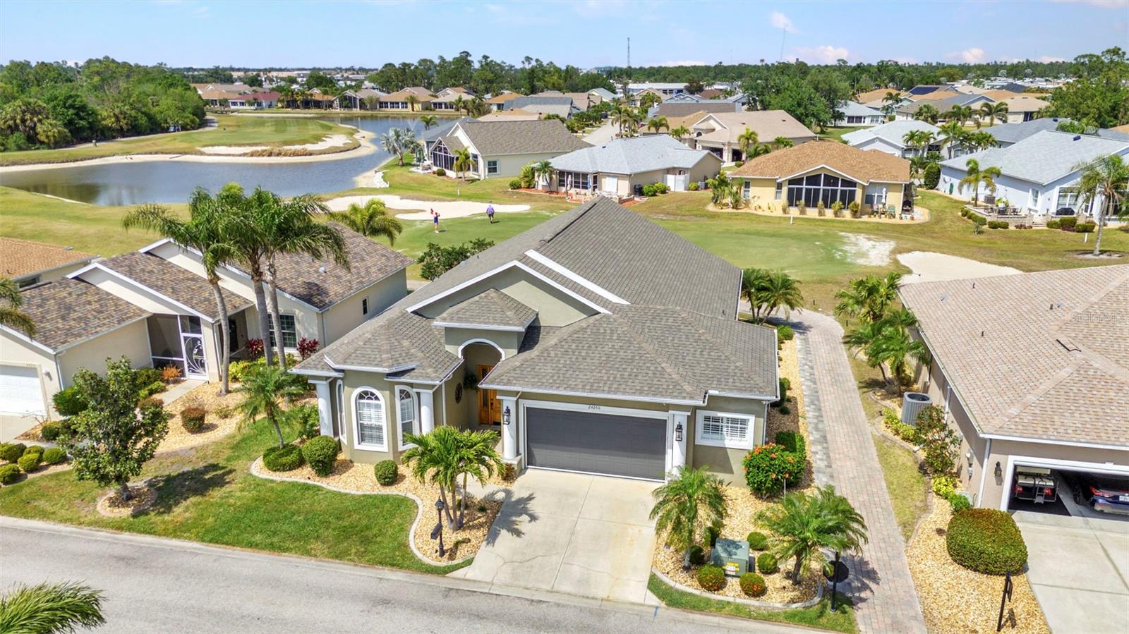 You're going to be WOWED by this truly one of a kind home in the gated golf course/active resort of Kings Gate, a 55+ community that is NOT in a flood zone and in evacuation zone D (never been ordered to evacuate). Step into luxury with soaring 17ft ceilings, large panoramic window above gorgeous French doors, brick pavers in lanai with spectacular golf course view.