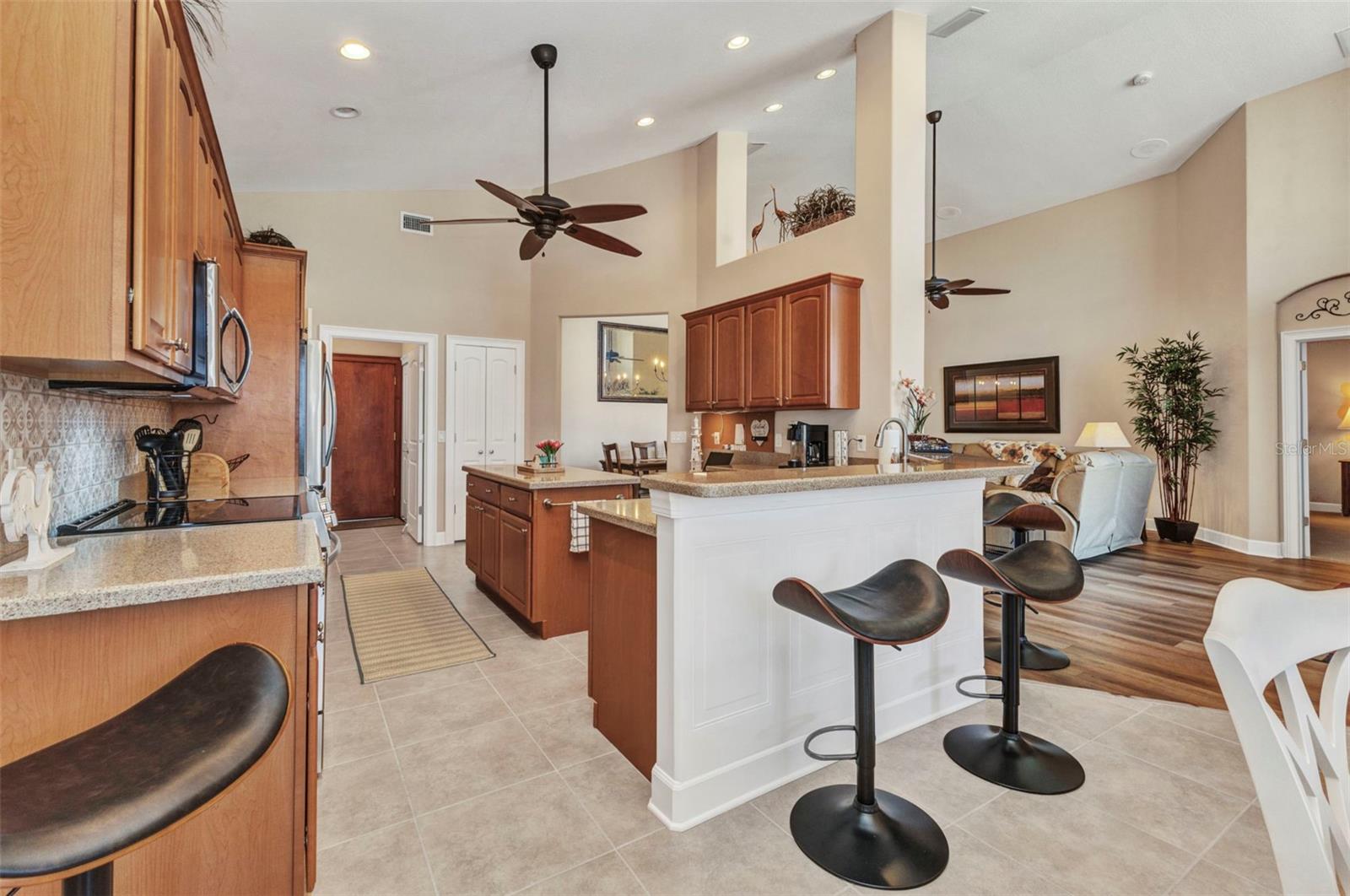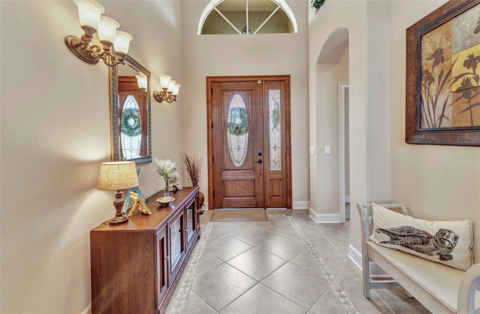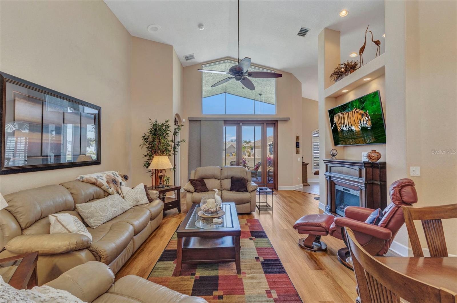 You're going to be WOWED by this truly one of a kind home in the gated golf course/active resort of Kings Gate, a 55+ community that is NOT in a flood zone and in evacuation zone D (never been ordered to evacuate). Step into luxury with soaring 17ft ceilings, large panoramic window above gorgeous French doors, brick pavers in lanai with spectacular golf course view.