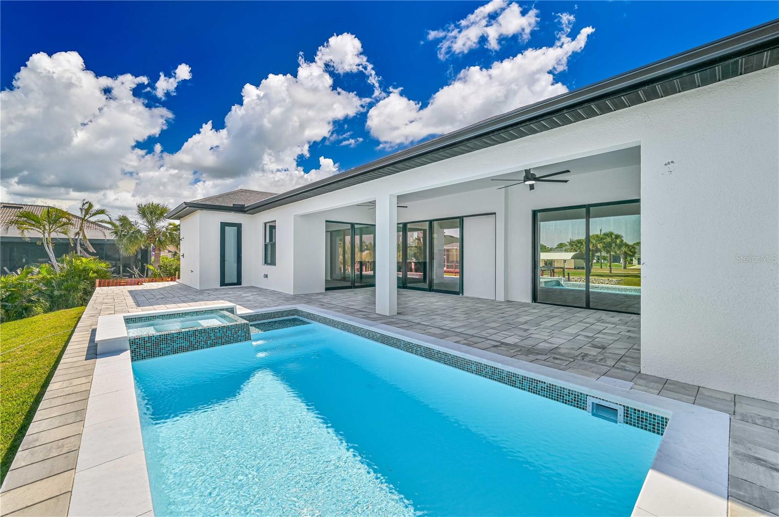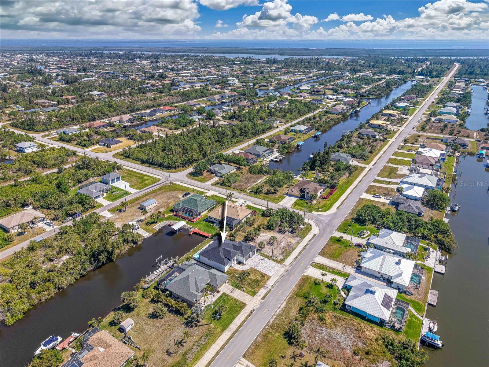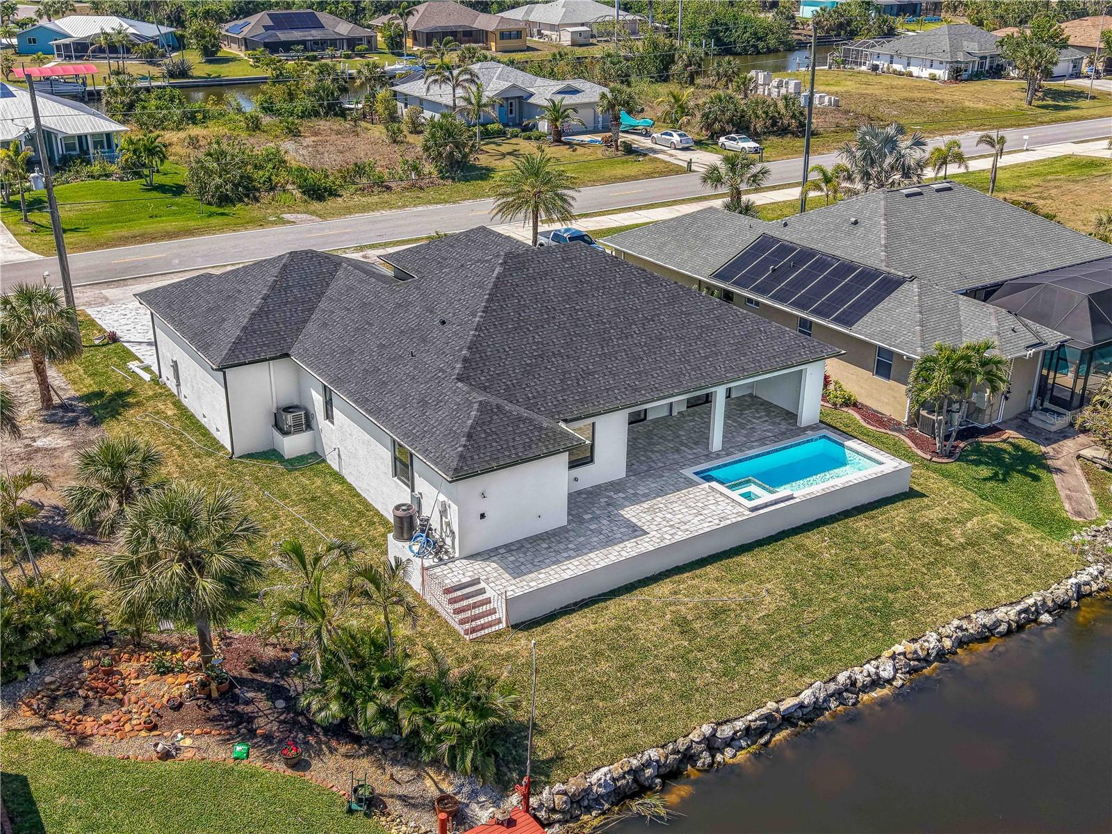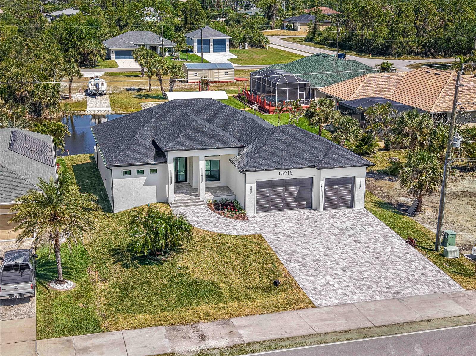 Experience the ultimate Florida lifestyle in this stunning 3-bedroom, 3-bathroom lakefront pool home with an additional office, located in the sought-after South Gulf Cove community of Port Charlotte. With over 2,160 sq ft of interior space and a total of 3,624 sq ft under roof, this home was crafted to combine comfort, elegance, and lasting quality. Enjoy peaceful waterfront living with canal access and serene lake views, all visible from your gourmet kitchen outfitted with high-end KitchenAid stainless steel appliances, abundant cabinetry, and expansive countertops. The open-concept layout flows seamlessly into the living and dining areas, offering the perfect space for both entertaining guests and quiet evenings at home. Step outside to your own private oasis, where a heated pool and spa overlook the tranquil water beyond. Situated on a 10,000 sq ft lot, the backyard offers the freedom to fully embrace the outdoor Florida lifestyle. The extended driveway leads to a generous 3-car garage with epoxy flooring — ideal for vehicles, storage, or a personal workshop. This home is built with exceptional materials and energy-efficient features throughout, including spray foam insulation (R-19) covering the entire roof, lanai, entry, and garage, as well as insulated block walls and Bat 15 insulation on exposed wood areas. Even the garage doors are insulated, ensuring year-round comfort. Premium Tamko Titan XT shingles rated for up to 160 MPH winds provide added durability, while luxury Durato Vevo XL flooring brings style and resilience to every room. Designed with long-term peace of mind in mind, the home includes a comprehensive warranty: one year covering workmanship and materials, two years for major systems such as electrical, plumbing, and HVAC distribution, and ten years of structural coverage for components like the foundation and load-bearing walls. Located in a peaceful, fast-growing community with direct access to boating, fishing, and the best of the Gulf Coast, this home delivers more than just a place to live — it’s a sanctuary where quality construction meets an unbeatable lifestyle. Schedule your private showing today and experience everything this exceptional property has in store.