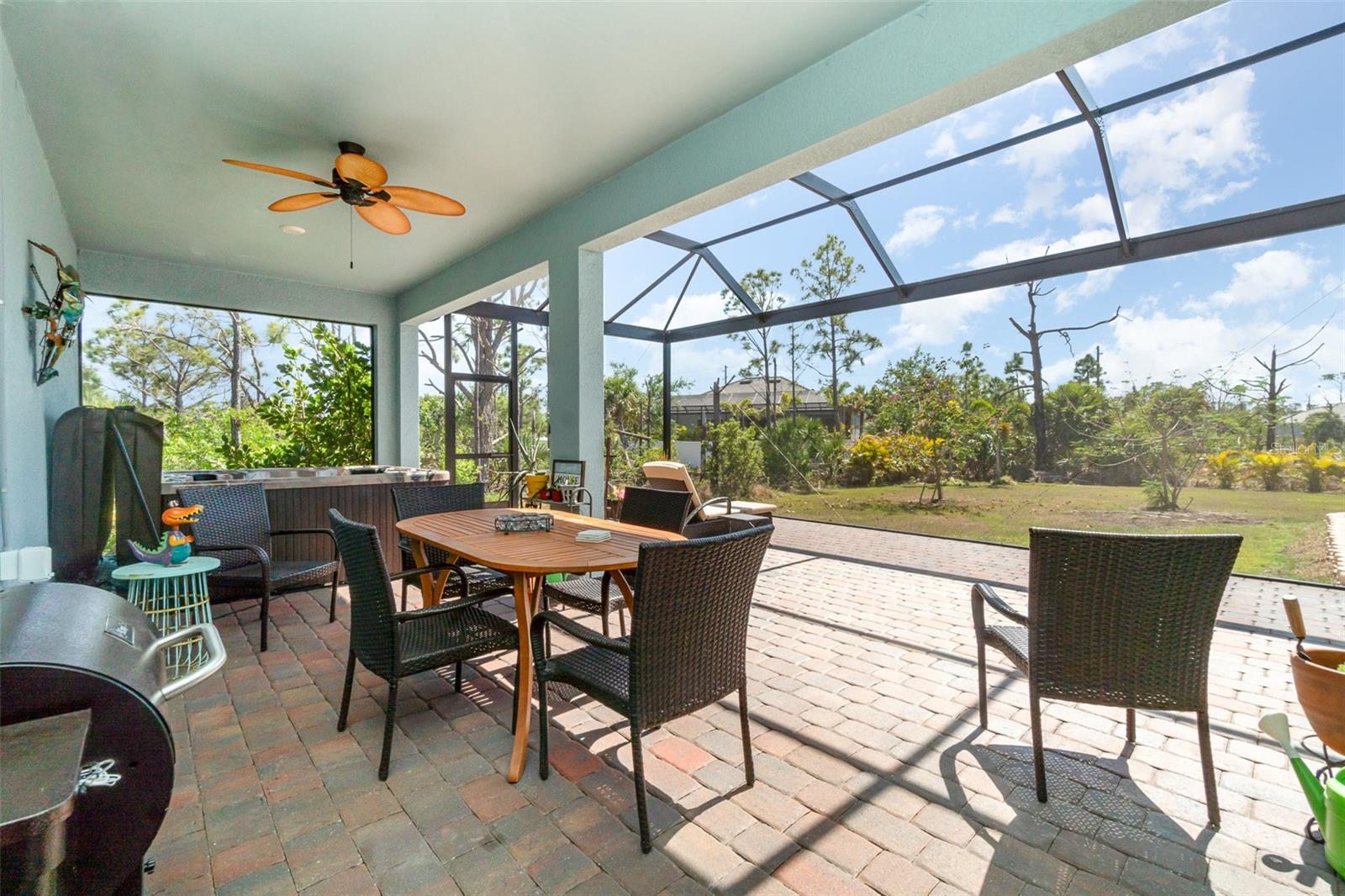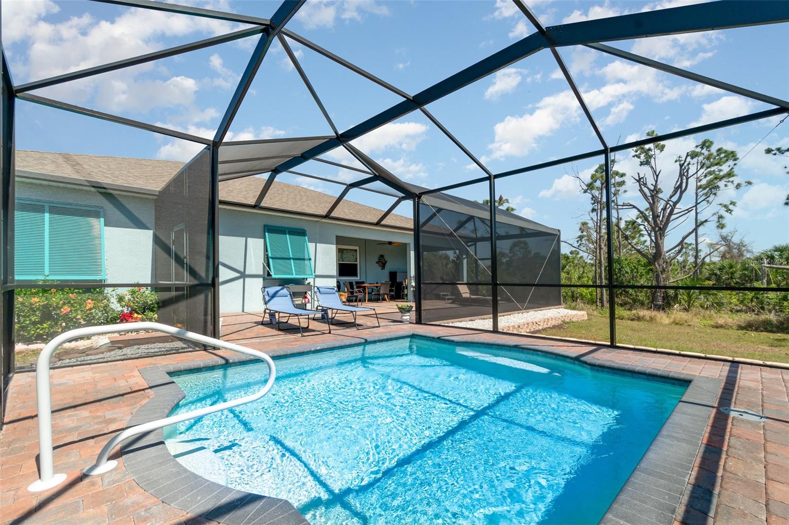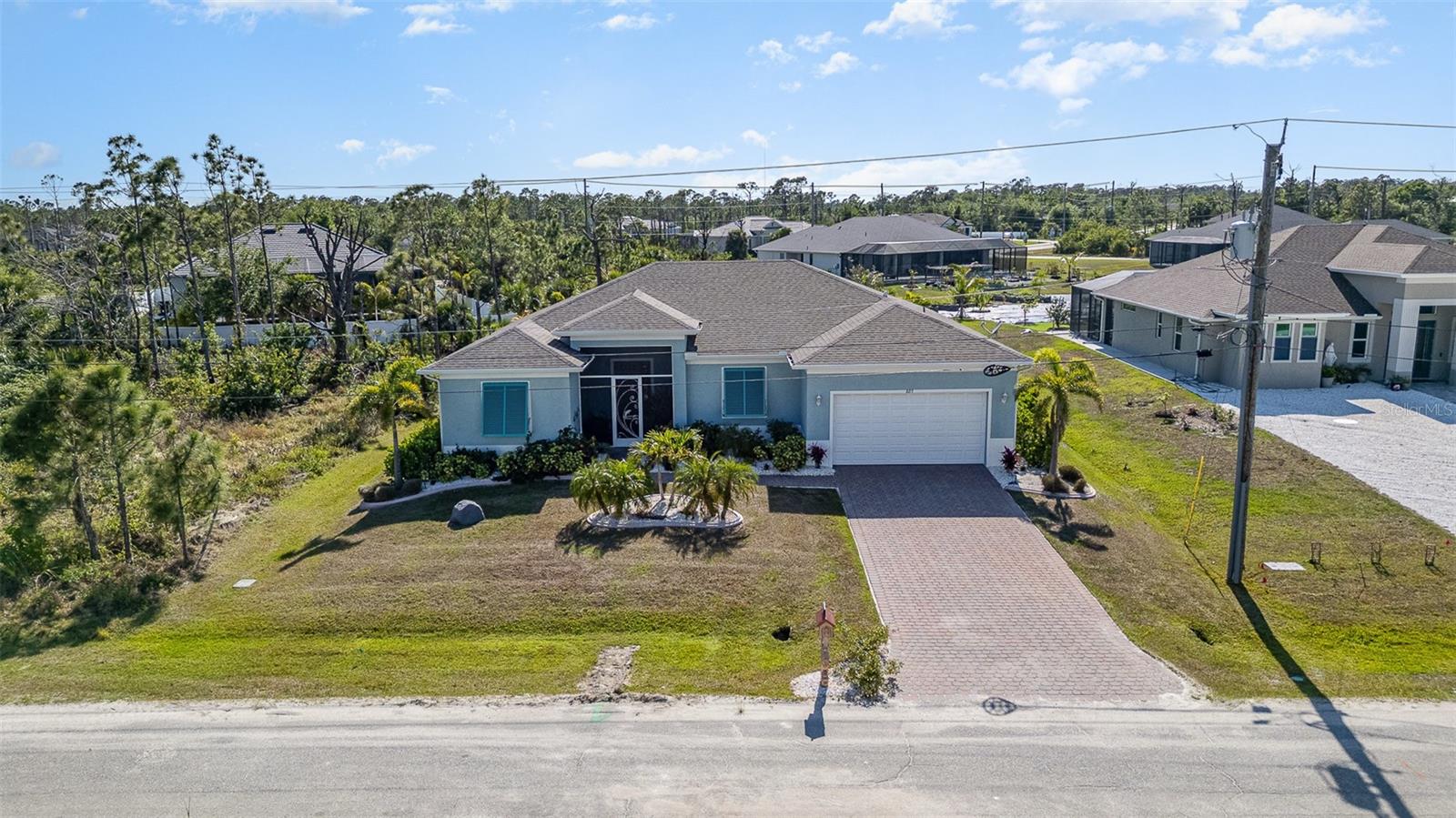 BEAUTIFUL 3 Bedroom, 2 Bathroom, 2 Car Garage, Pool home with an office situated on an OVERSIZED LOT located in South Gulf Cove. NO HOA FEES & FLOOD IS TRANSFERRABLE! CLICK ON THE VIRTUAL TOUR LINK 1 FOR THE VIDEO AND VIRTUAL LINK 2 FOR THE 3D TOUR. This lovely home features a bright & open floor plan, tile and luxury vinyl flooring throughout, high ceilings, recessed & pendant lighting, plantation shutters, and MUCH MORE! The open living and dining room make this home ideal for entertaining your friends and family. The kitchen offers ALL stainless-steel appliances, including a touch-screen refrigerator, granite countertops, tiled backsplash, an island with a breakfast bar, and a closet pantry. The spacious master bedroom has DUAL walk-in closets and a private en-suite bathroom with a dual sink vanity, walk-in shower, and water closet. The guest bedrooms are on a split floor plan, providing plenty of privacy with built-in closets and a shared guest bathroom nearby. Step outside to your private oasis, featuring an oversized lanai that offers ample space for relaxation and entertaining. Enjoy year-round comfort with an above-ground 7-person hot tub and a sparkling in-ground saltwater pool, perfect for unwinding or hosting guests in style. Whether you're lounging by the pool, soaking in the hot tub, or enjoying the expansive outdoor living area, this backyard retreat is designed for ultimate relaxation and enjoyment. 2021 ROOF - 2021 APPLIANCES - 2021 A/C & HOT WATER HEATER - HURRICANE IMPACT WINDOWS & BAHAMA SHUTTERS - SCREENED FRONT ENTRY - EPOXY GARAGE FLOOR - LUSH LANDSCAPING & CURBING. South Gulf Cove is a deed-restricted neighborhood with an optional HOA that offers members a clubhouse, waterfront park with playground, and private boat ramp. Conveniently located close to local shopping & boutiques, fine & casual dining, LIVE entertainment, and AWARD-WINNING BEACHES!! Schedule your showing TODAY!
