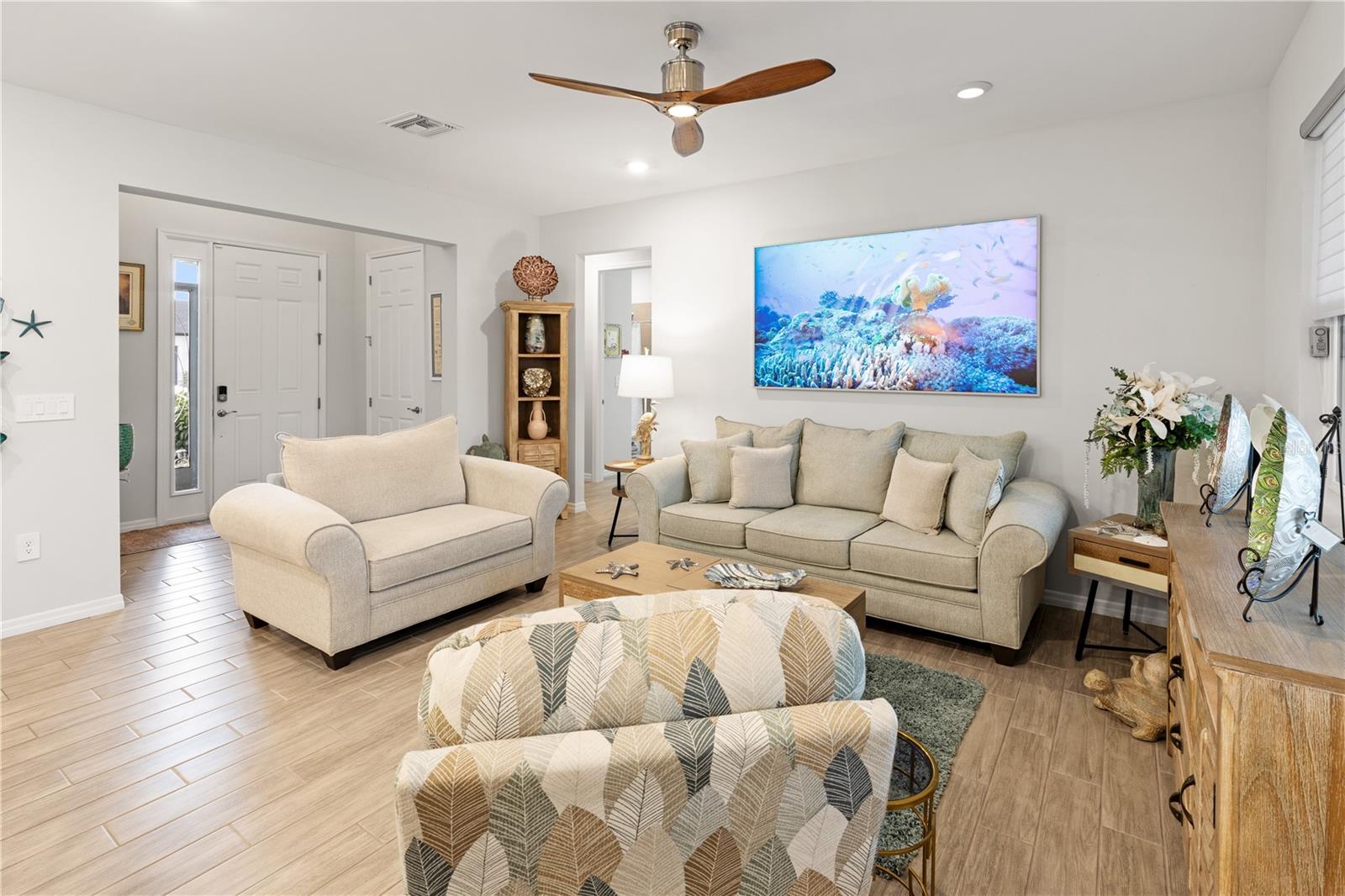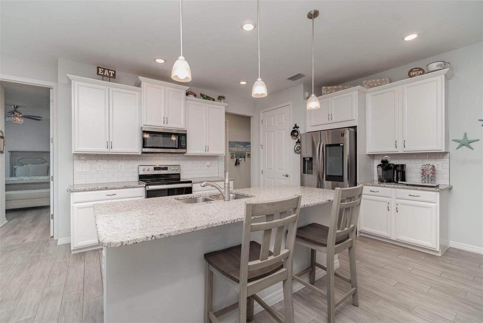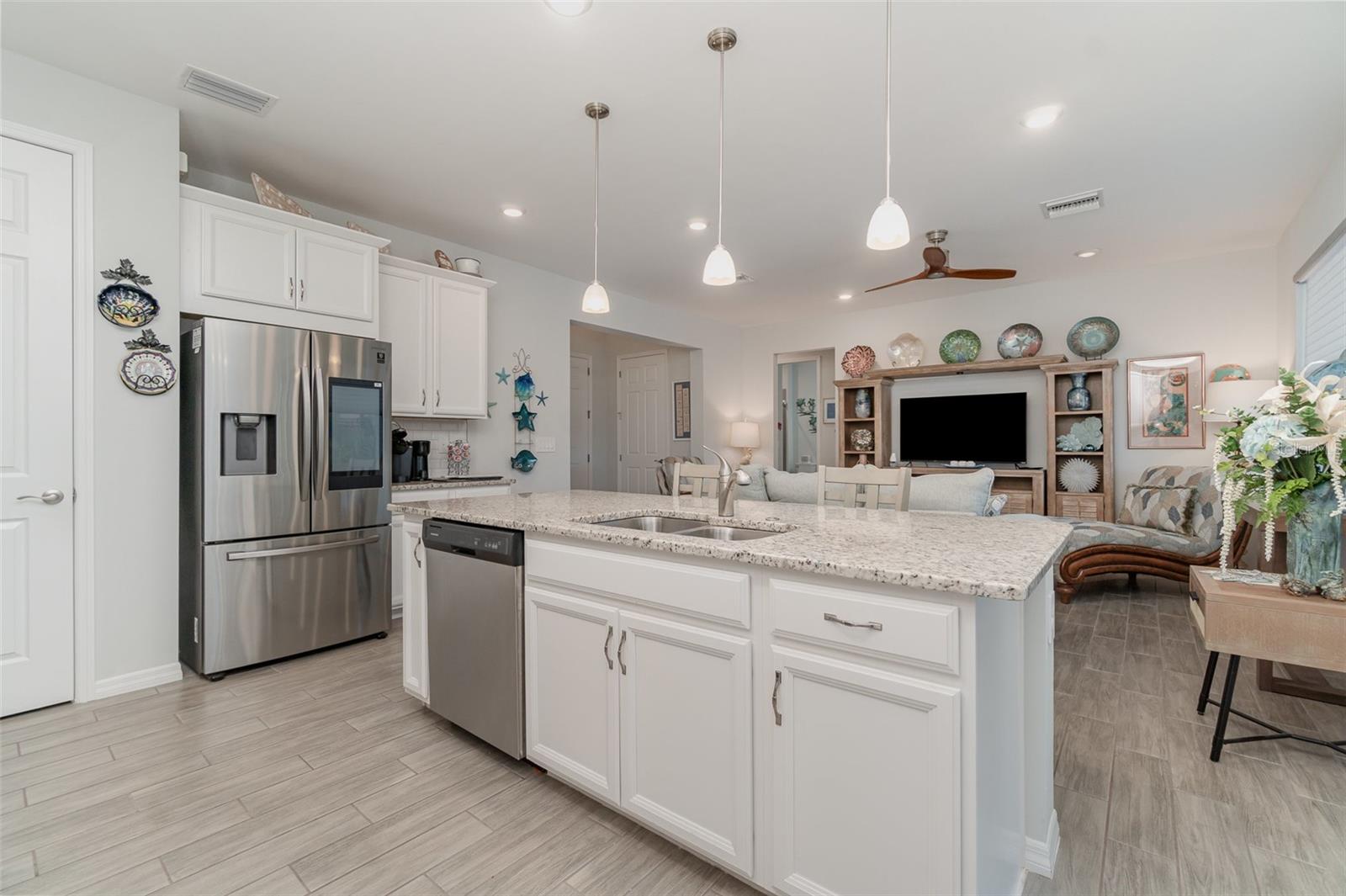 BEAUTIFUL 3 Bedroom, 2 Bathroom, 2 Car Garage, Pool home with an office situated on an OVERSIZED LOT located in South Gulf Cove. NO HOA FEES & FLOOD IS TRANSFERRABLE! CLICK ON THE VIRTUAL TOUR LINK 1 FOR THE VIDEO AND VIRTUAL LINK 2 FOR THE 3D TOUR. This lovely home features a bright & open floor plan, tile and luxury vinyl flooring throughout, high ceilings, recessed & pendant lighting, plantation shutters, and MUCH MORE! The open living and dining room make this home ideal for entertaining your friends and family. The kitchen offers ALL stainless-steel appliances, including a touch-screen refrigerator, granite countertops, tiled backsplash, an island with a breakfast bar, and a closet pantry. The spacious master bedroom has DUAL walk-in closets and a private en-suite bathroom with a dual sink vanity, walk-in shower, and water closet. The guest bedrooms are on a split floor plan, providing plenty of privacy with built-in closets and a shared guest bathroom nearby. Step outside to your private oasis, featuring an oversized lanai that offers ample space for relaxation and entertaining. Enjoy year-round comfort with an above-ground 7-person hot tub and a sparkling in-ground saltwater pool, perfect for unwinding or hosting guests in style. Whether you're lounging by the pool, soaking in the hot tub, or enjoying the expansive outdoor living area, this backyard retreat is designed for ultimate relaxation and enjoyment. 2021 ROOF - 2021 APPLIANCES - 2021 A/C & HOT WATER HEATER - HURRICANE IMPACT WINDOWS & BAHAMA SHUTTERS - SCREENED FRONT ENTRY - EPOXY GARAGE FLOOR - LUSH LANDSCAPING & CURBING. South Gulf Cove is a deed-restricted neighborhood with an optional HOA that offers members a clubhouse, waterfront park with playground, and private boat ramp. Conveniently located close to local shopping & boutiques, fine & casual dining, LIVE entertainment, and AWARD-WINNING BEACHES!! Schedule your showing TODAY!