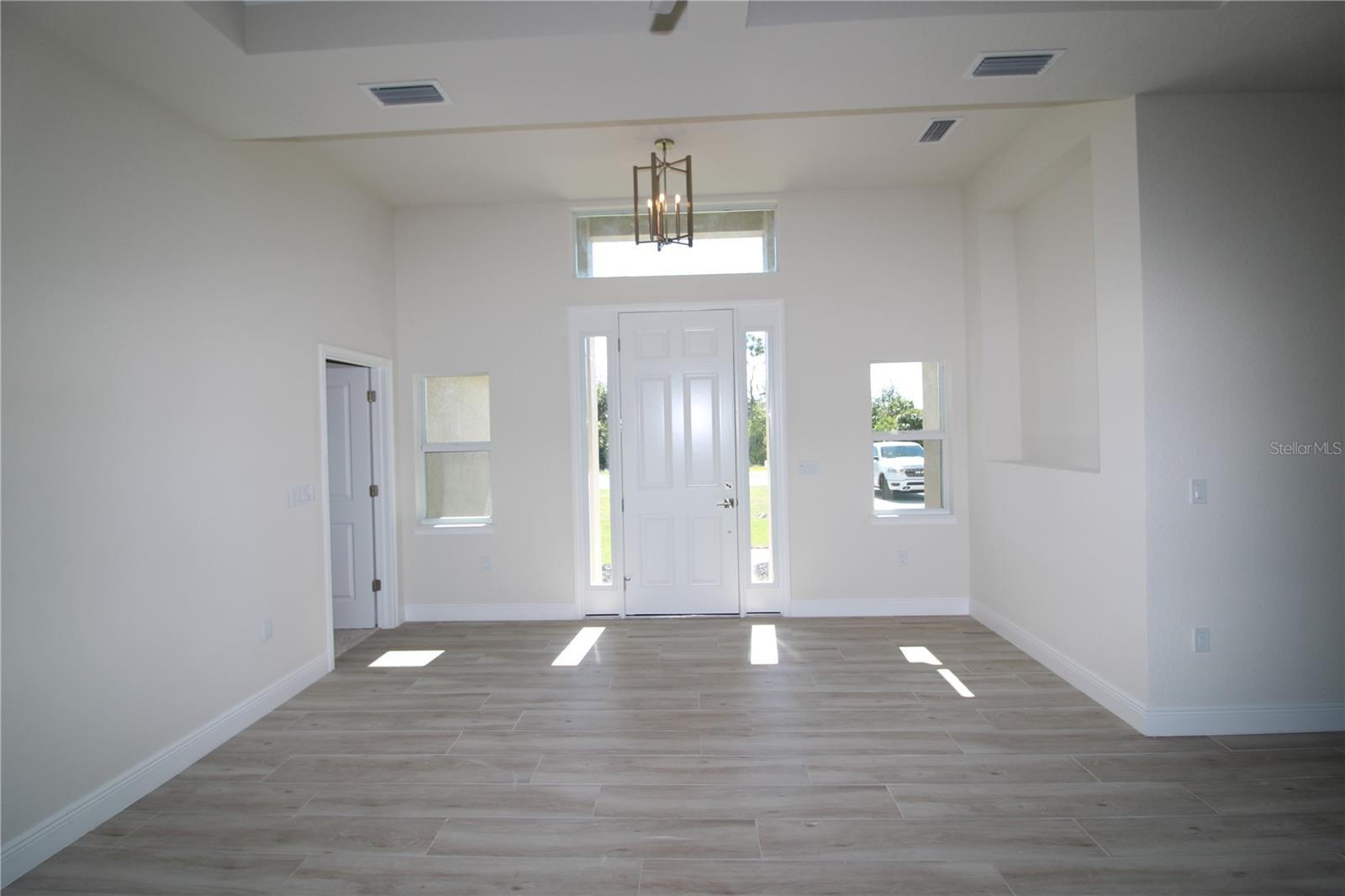 Brand New Home, Move-In. The Turnberry DX model from the award-winning Harbor Home Builders. This-bedroom, two-bathroom, three-car garage home boasts a 12-foot entryway, coffered ceilings, windows, porcelain plank flooring, solid wood cabinetry with soft-close doors and drawers, quartz countertops, and designer lighting and fans. master bedroom features a tray ceiling with lighting and transom window, walk-in closet, an additional closet. The master bathroom includes dual vanities and tiled walk-in shower. The 27-by-9-foot lanai offers an entertainment wall with outlets and provisions for outdoor kitchen. Schedule an appointment today to view this stunning home