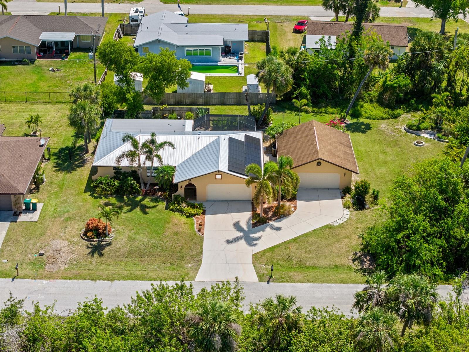 GREAT LOCATION! DOUBLE LOT! EXCEPTIONAL 2 BEDROOM, 2 BATH, 2-CAR GARAGE POOL HOME PLUS DETACHED 2-CAR GARAGE WITH 3 SPACES & CARPORT WITH ROOM TO PARK 6 VEHICLES! CONDITIONED GARAGE GIVES A TOTAL OF 1,733 SF UNDER AIR. 7.6KW solar panels on roof provide 50% reduction in electric costs and are paid off by the seller. Truly move-in-ready and features high ceilings, neutral décor, formal living room with plantation shutters, dining room with slider access to lanai, spacious kitchen featuring granite counters, solid wood cabinetry, convenient pass thru window to lanai and breakfast bar. Primary suite offers slider to lanai and private updated bath. Large second bedroom and separate full bath. Outdoor entertaining area features covered lanai with hot tub, heated screened pool and private backyard with a parklike setting. Mature landscaping includes 80-year heritage oak tree, 20 gray trunk palms, beautiful flowers including bougainvillea and jasmine. Attached garage offers 420 square feet of air-conditioned bonus space perfect for office or mancave giving 1,733 sf under air. Detached garage features 725 sf of workshop area with roll down door plus 10’x20’ carport out back for extra parking or storage. RV, boat or space available along side workshop. Quiet private street with all power lines going underground soon. This home offers it all! Great location close to Port Charlotte Beach Park, Sunseeker Resort, and downtown historic Punta Gorda, you'll enjoy easy access to fine dining, shopping, beautiful parks, award-winning fishing and boating, community events, and entertainment. Plus, you're just a short drive from Gulf Coast beaches. Don’t miss this amazing opportunity! Schedule your private showing today!