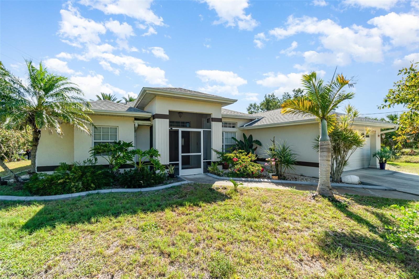 Waterfront Paradise – 3 Bed, 2 Bath, Oversized Lot, Boat Lift & Pool! Welcome to your dream coastal retreat! This beautiful 3-bedroom, 2-bathroom waterfront home features a spacious 2-car garage and sits on an oversized lot with 80 feet of saltwater canal frontage—just 10 minutes to open water, providing direct access to Charlotte Harbor and the Gulf of Mexico! Perfect for boating enthusiasts, the property includes an 8,000 lb boat lift with electric and water hookups. Spend your days lounging by the heated pool, relaxing under the large screened lanai, and enjoying the serene water views surrounded by lush, mature landscaping. Step inside to find an open, split-bedroom floor plan that’s ideal for entertaining. The living room welcomes you with soaring ceilings and a cozy gas fireplace. Enjoy tile flooring throughout the main areas with carpeted bedrooms for added comfort. The spacious master suite features sliding doors to the pool, a canal view, walk-in closet, dual sinks, and a luxurious garden tub. Additional features include: Inside laundry room with washer and dryer included Central vacuum system Intercom system Bright kitchen with plenty of storage Just minutes from your doorstep, enjoy convenient access to shopping, dining, movies, spring training baseball games, beaches, and more! This is Florida living at its finest—schedule your private showing today!