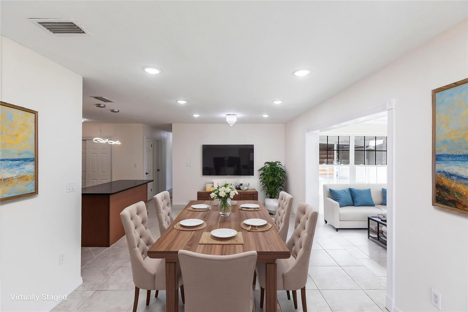 One or more photo(s) has been virtually staged. Welcome to this gorgeously remodeled waterfront retreat, where style, space and sunshine come together in perfect harmony... and where the hardest decision of your day might just be whether to relax on the dock or the deck! This stunning 3 bedroom, 2 bathroom home has been thoughtfully updated and is ready for you to move in and start living your best Florida life. Step through the front door and into an open floor plan bursting with natural light! Perfect for plants, selfies, and never having to say "it's too dark in here. The kitchen is a showstopper, featuring solid wood cabinets, granite countertops, and plenty of space to cook, entertain, or pretend you're on a cooking show (no judgement). Tile flows throughout most of the home, so forget the vacuum... you're officially a broom person now. The oversized bonus room is ready for whatever you need it to be: game room, home office, yoga studio, or just expanding your main living area for all the entertaining you'll want to do!! There is a seperate room in the garage for laundry as well as an extra storage area for all the things you swear you'll organize someday. Plus, there's a large shed out back for your lawn gear, fishing poles or a collection of mystery bins. Outside, the backyard is truly the main event. A massive deck which is partially covered for when you need shade.... perfect for cook outs and gatherings! The concrete seawall and private dock are ready for your water toys, or just wave at the passing fish. And with only one bridge out to Charlotte Harbor, your access to the Gulf is smooth sailing! Located less than a block from Higgs Park, with its playground and basketball court, you'll never run out of things to do.... or excuses to walk the dog again. Whether you're a boating enthusiast, outdoor lover, or just really into peaceful water views... this home checks every box. Come take a look before someone else docks their dreams here first!