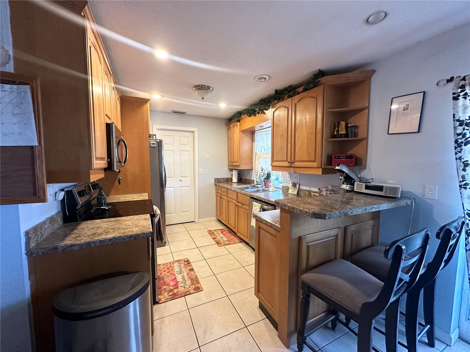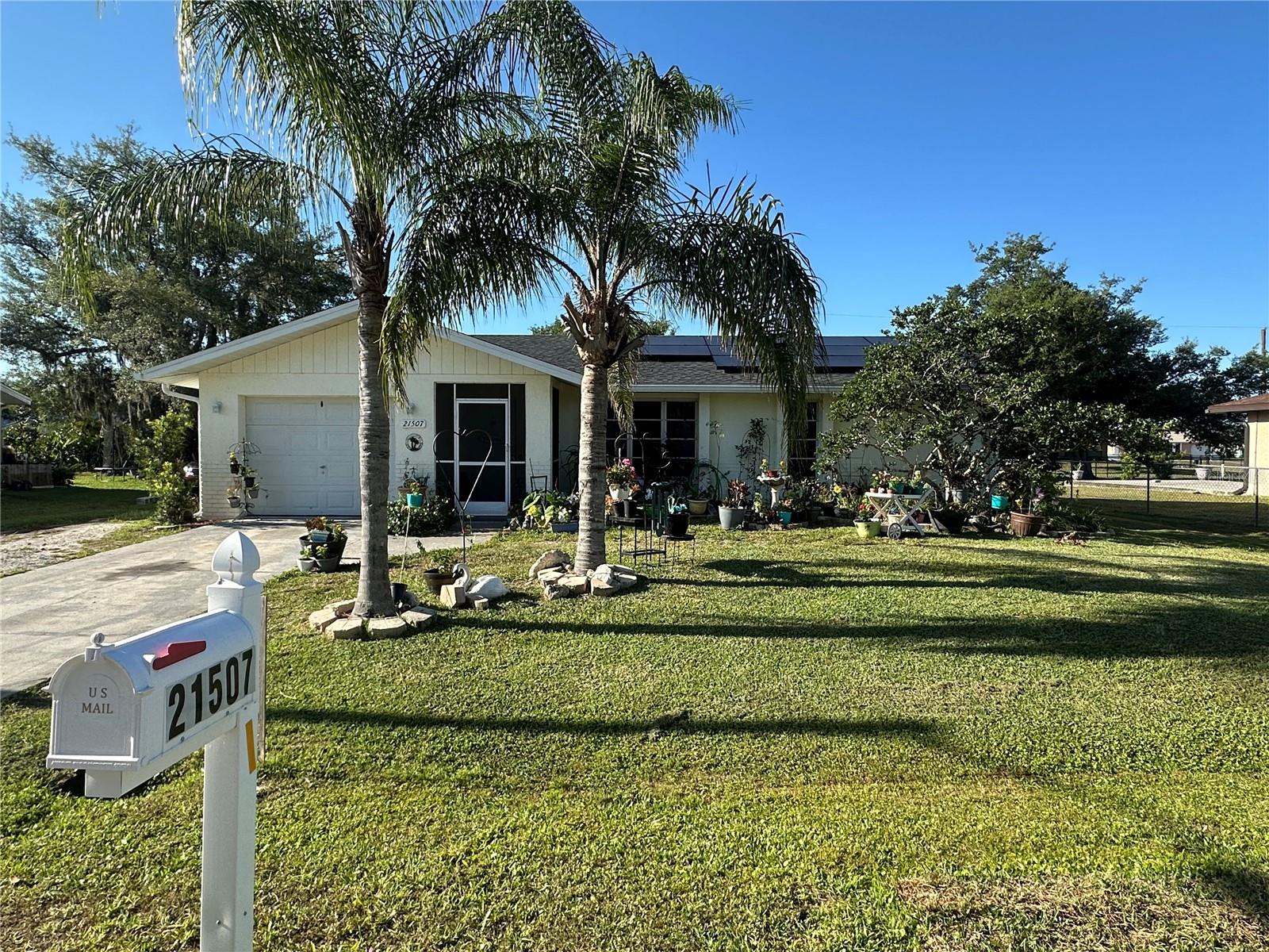 A lovely three bedroom, two bath home located in Central Port Charlotte, ideally situated close to shopping, dining, amenities, and medical facilities. Upon arriving at the home, prospective buyers will be welcomed by a screened entry porch leading to the front door. Inside, the home boasts tile flooring throughout, an updated kitchen with stainless steel appliances, window treatments, and a newer air conditioning system. Both bathrooms have been tastefully updated, and additional enhancements add to the property's overall appeal. The garage has been partially converted to serve as a third bedroom, complete with a closet. The laundry room, located just off the kitchen, includes ample storage space for convenience. Additional features include a back porch, a fully fenced yard, and solar panels that offer energy efficiency and sustainability. New roof installed in 2022, soffit and facia in 2023, and HVAC system with duct work installed in 2021. This home presents a perfect opportunity for comfortable living in a prime location.