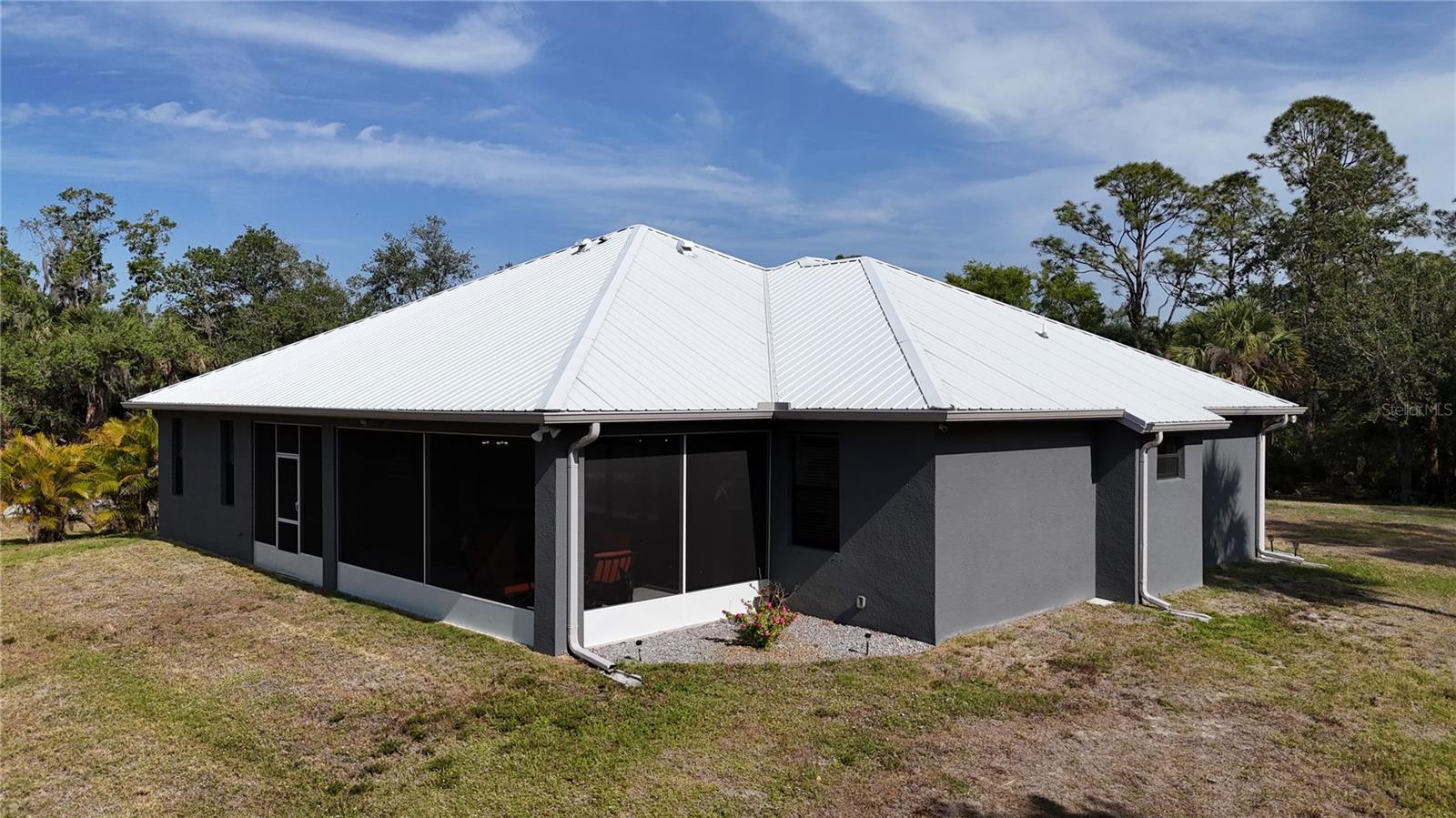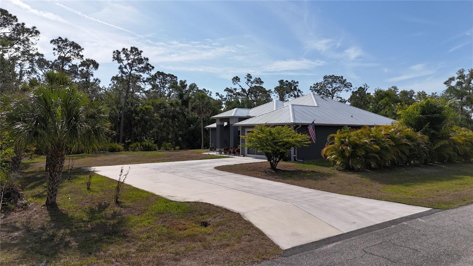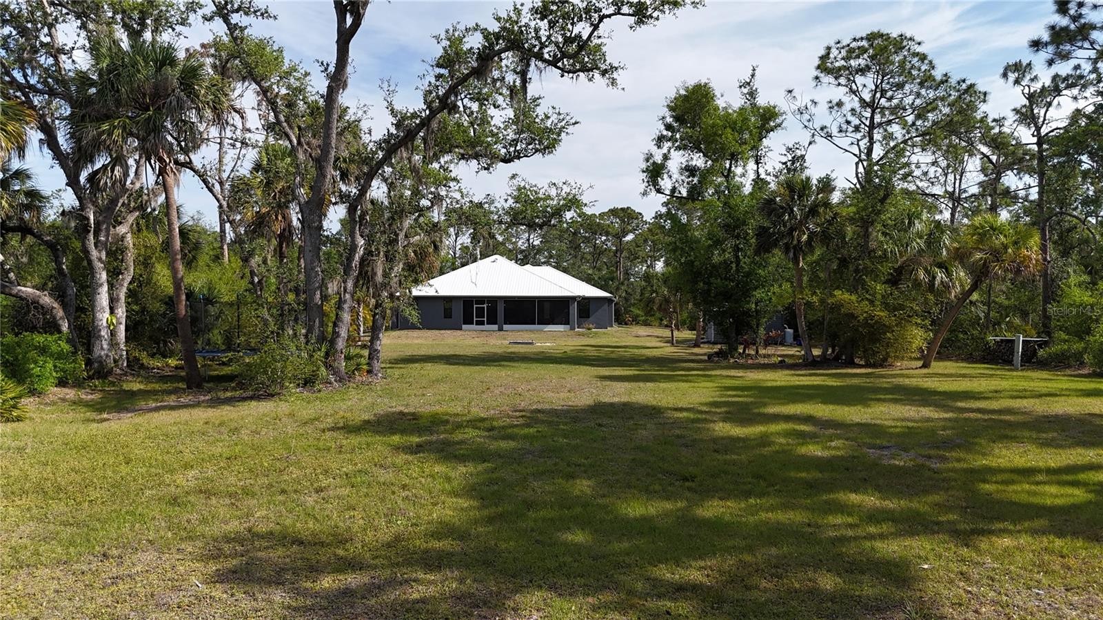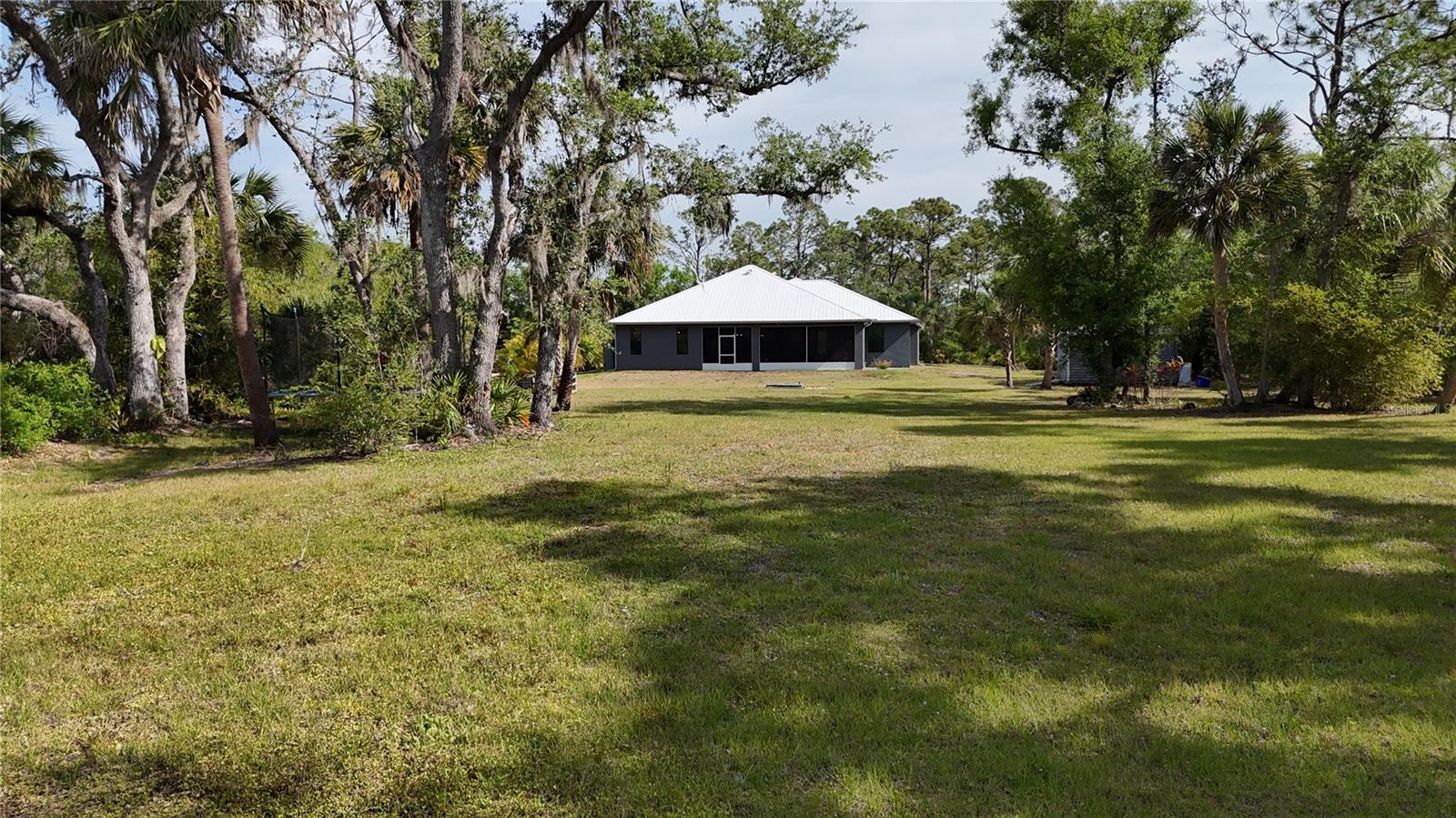 *3D VIRTUAL TOUR* Welcome home to your picture perfect CUSTOM BUILT home on 1.7 ACRES in the desirable area of Port Charlotte off Collingswood Blvd NOT IN A FLOOD ZONE! This beautifully crafted home combines elegance & comfort, while featuring 3 bedrooms + DEN, 2 baths & a 2 car garage. As you approach the property, you'll be captivated by it's charming curb appeal, featuring lush landscaping, pebble rock, curbing, retractable garage screen door, T-shaped driveway, gutters & downspouts, flag holder, METAL ROOF (w/40yr transferable warranty) & to top it all off exterior soffit lights, for nighttime ambiance. Open the double front doors & be greeted with a grand entrance that's sure to please with gorgeous upgrades including 8' doorways, modern fixtures, high tray ceilings, warm, neutral colors & wood blinds throughout making this home one you don't want to miss! The welcoming Great Room draws your attention as you enter, complete with tall ceilings & natural sunlight beaming through the triple pocket sliding doors, wood plank ceramic tile flows freely throughout the main living areas making cleaning a breeze & pet friendly. The gourmet kitchen would make any chef happy! It boasts stainless steel appliances, quality cabinets with soft close feature, GRANITE countertops, ornate backsplash, closet pantry, WHOLE HOUSE R.O. System, farmhouse sink, plant shelves & a centered breakfast bar/island that is highlighted by 3 hanging pendant lights & has added storage & seating options when entertaining! The quaint dining room flows seamlessly together with the kitchen & makes the perfect gathering spot! Retreat to the primary bedroom, it is comfortable & large in size & houses private lanai access & an en-suite master bath, that offers dual sinks, make-up vanity, linen & walk-in clothing closet, private water closet & walk-in Roman shower. The guest bedrooms are across the home in this desirable split bedroom floor plan. Both bedrooms are supplied with a private closet, ceiling fan & window. A well-appointed guest bath with vanity, shower/tub combo & toilet is in between the bedrooms for added convenience. A den with built in desk would make for an excellent office, craft room or game room - the possibilies are endless! The inside laundry room has additional storage, utility sink & custom top for washer/dryer where you can fold your clothes or iron. The 2-car garage & large driveway provides ample storage & parking spaces for vehicles or hobbies. Pocket sliders from the Great Room open to your peaceful extended, screened in lanai showcasing panoramic backyard views, the epitome of Florida living. Entertain family & friends all while enjpoying the firepit & gorgeous weather Florida has to offer or grab a good book & relax while taking in the sights & sounds of your serene 1.7 acres of land. No deed restrictions or HOA fees. The terrific location of this home allows QUICK access to shopping, golfing & restaurants. Close proximity to the beautiful Gulf Beaches. Also nearby, Charlotte Harbor & the Gulf of Mexico where fishing is plentiful! Love Baseball? Charlotte Sports Park, home of the Tampa Bay Rays baseball spring training & the BRAND NEW Wellen Park area where you can watch an Atlanta Braves spring training baseball game, shop, dine out or enjoy a Sunday at the Farmers Market are just a short drive! US-41 & Interstate 75 allow you quick access to the North or South. Include this home on your "Must See List" and start packing!