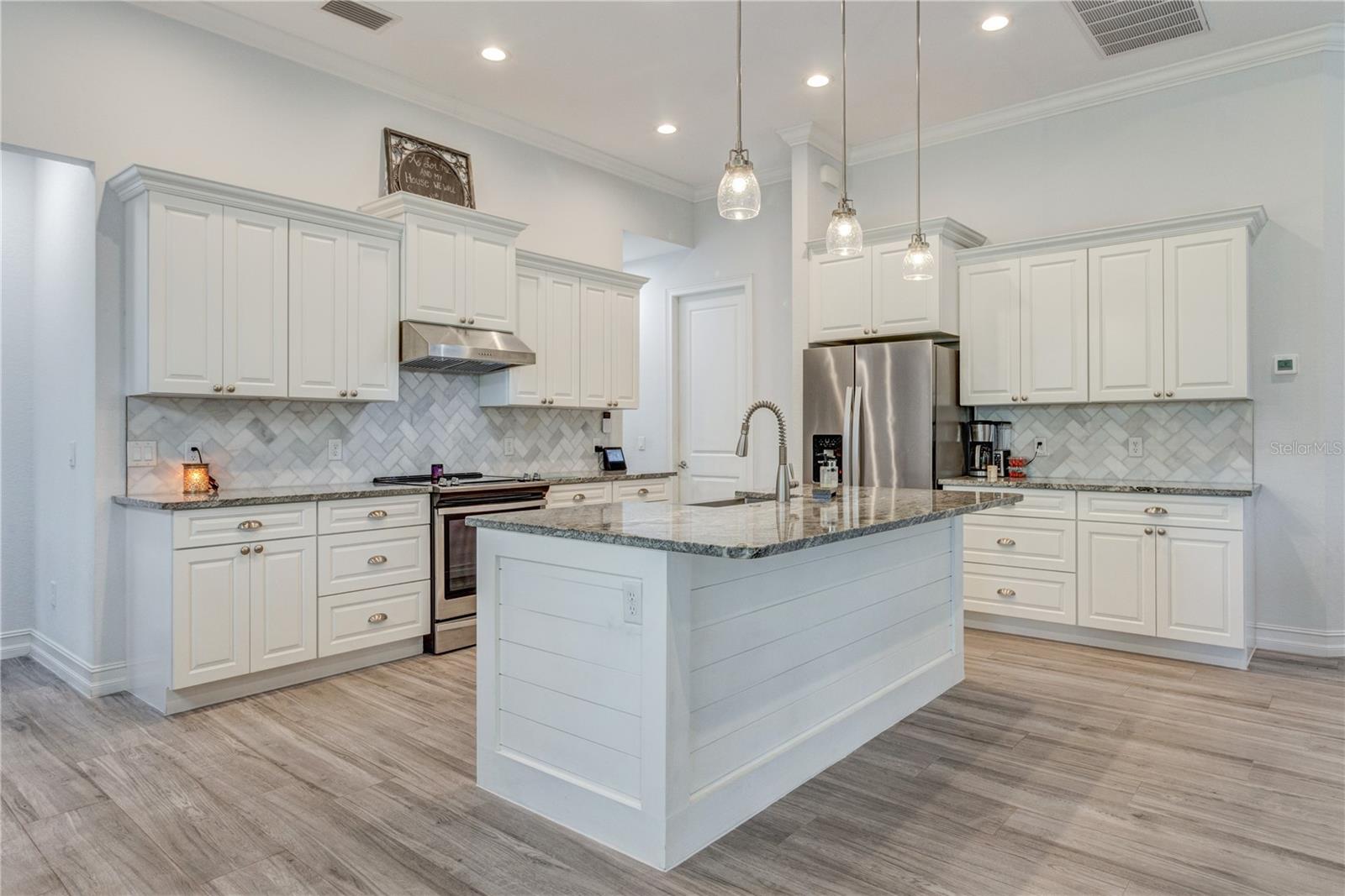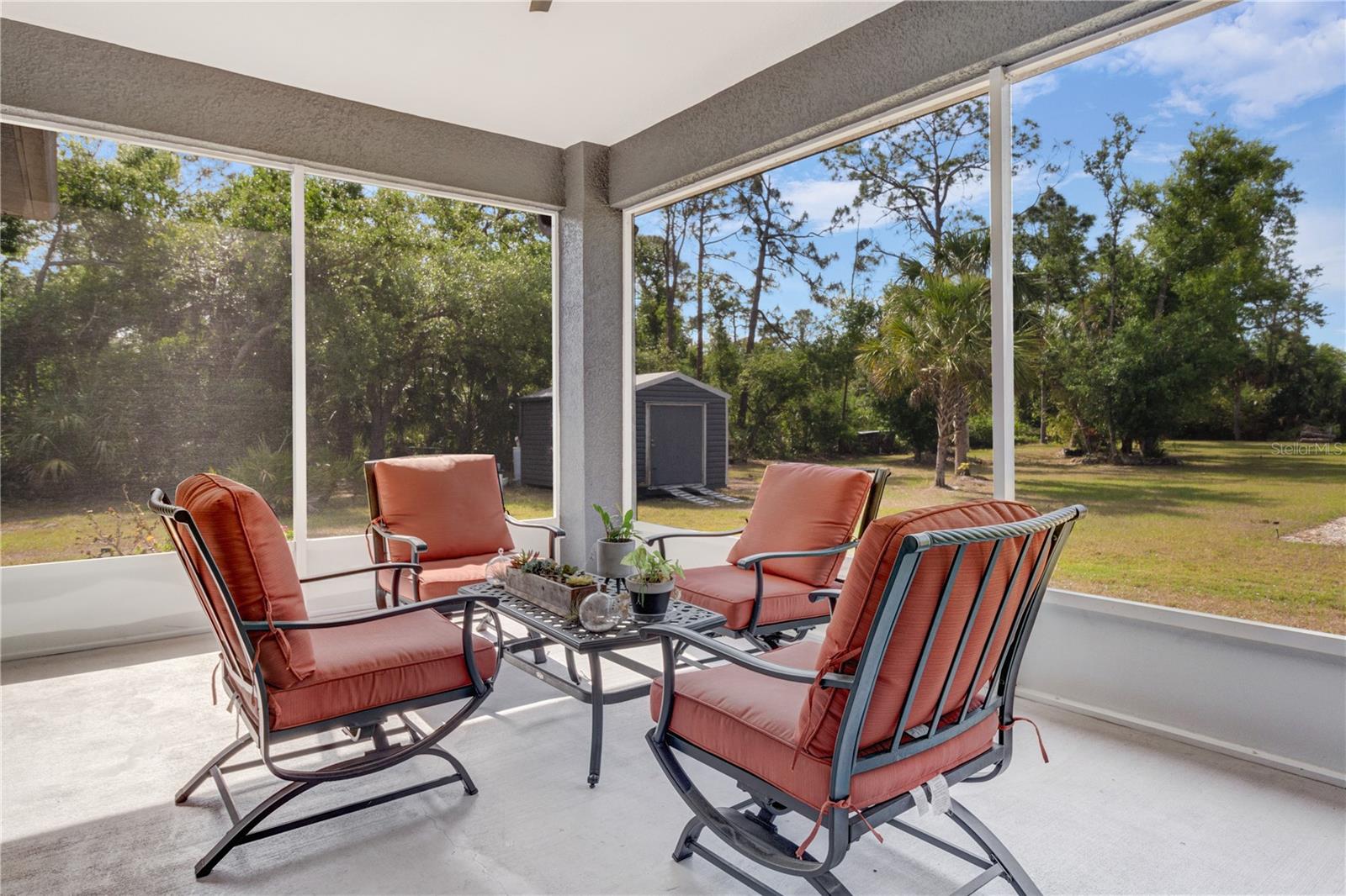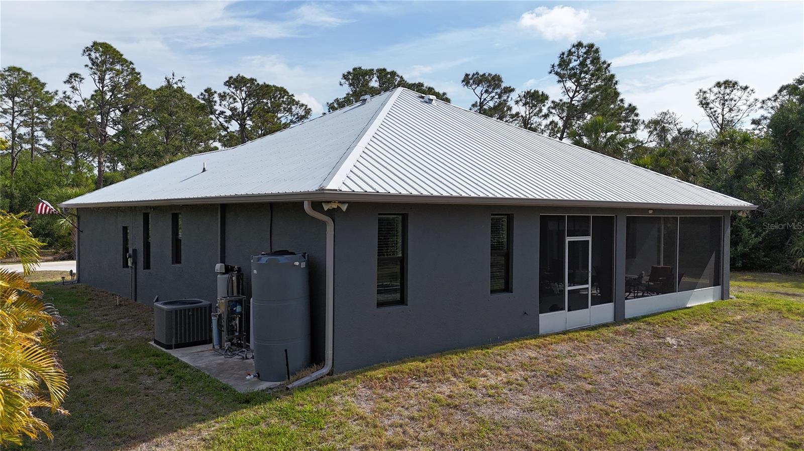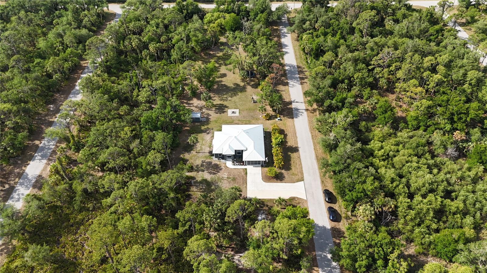 *3D VIRTUAL TOUR* Welcome home to your picture perfect CUSTOM BUILT home on 1.7 ACRES in the desirable area of Port Charlotte off Collingswood Blvd NOT IN A FLOOD ZONE! This beautifully crafted home combines elegance & comfort, while featuring 3 bedrooms + DEN, 2 baths & a 2 car garage. As you approach the property, you'll be captivated by it's charming curb appeal, featuring lush landscaping, pebble rock, curbing, retractable garage screen door, T-shaped driveway, gutters & downspouts, flag holder, METAL ROOF (w/40yr transferable warranty) & to top it all off exterior soffit lights, for nighttime ambiance. Open the double front doors & be greeted with a grand entrance that's sure to please with gorgeous upgrades including 8' doorways, modern fixtures, high tray ceilings, warm, neutral colors & wood blinds throughout making this home one you don't want to miss! The welcoming Great Room draws your attention as you enter, complete with tall ceilings & natural sunlight beaming through the triple pocket sliding doors, wood plank ceramic tile flows freely throughout the main living areas making cleaning a breeze & pet friendly. The gourmet kitchen would make any chef happy! It boasts stainless steel appliances, quality cabinets with soft close feature, GRANITE countertops, ornate backsplash, closet pantry, WHOLE HOUSE R.O. System, farmhouse sink, plant shelves & a centered breakfast bar/island that is highlighted by 3 hanging pendant lights & has added storage & seating options when entertaining! The quaint dining room flows seamlessly together with the kitchen & makes the perfect gathering spot! Retreat to the primary bedroom, it is comfortable & large in size & houses private lanai access & an en-suite master bath, that offers dual sinks, make-up vanity, linen & walk-in clothing closet, private water closet & walk-in Roman shower. The guest bedrooms are across the home in this desirable split bedroom floor plan. Both bedrooms are supplied with a private closet, ceiling fan & window. A well-appointed guest bath with vanity, shower/tub combo & toilet is in between the bedrooms for added convenience. A den with built in desk would make for an excellent office, craft room or game room - the possibilies are endless! The inside laundry room has additional storage, utility sink & custom top for washer/dryer where you can fold your clothes or iron. The 2-car garage & large driveway provides ample storage & parking spaces for vehicles or hobbies. Pocket sliders from the Great Room open to your peaceful extended, screened in lanai showcasing panoramic backyard views, the epitome of Florida living. Entertain family & friends all while enjpoying the firepit & gorgeous weather Florida has to offer or grab a good book & relax while taking in the sights & sounds of your serene 1.7 acres of land. No deed restrictions or HOA fees. The terrific location of this home allows QUICK access to shopping, golfing & restaurants. Close proximity to the beautiful Gulf Beaches. Also nearby, Charlotte Harbor & the Gulf of Mexico where fishing is plentiful! Love Baseball? Charlotte Sports Park, home of the Tampa Bay Rays baseball spring training & the BRAND NEW Wellen Park area where you can watch an Atlanta Braves spring training baseball game, shop, dine out or enjoy a Sunday at the Farmers Market are just a short drive! US-41 & Interstate 75 allow you quick access to the North or South. Include this home on your "Must See List" and start packing!