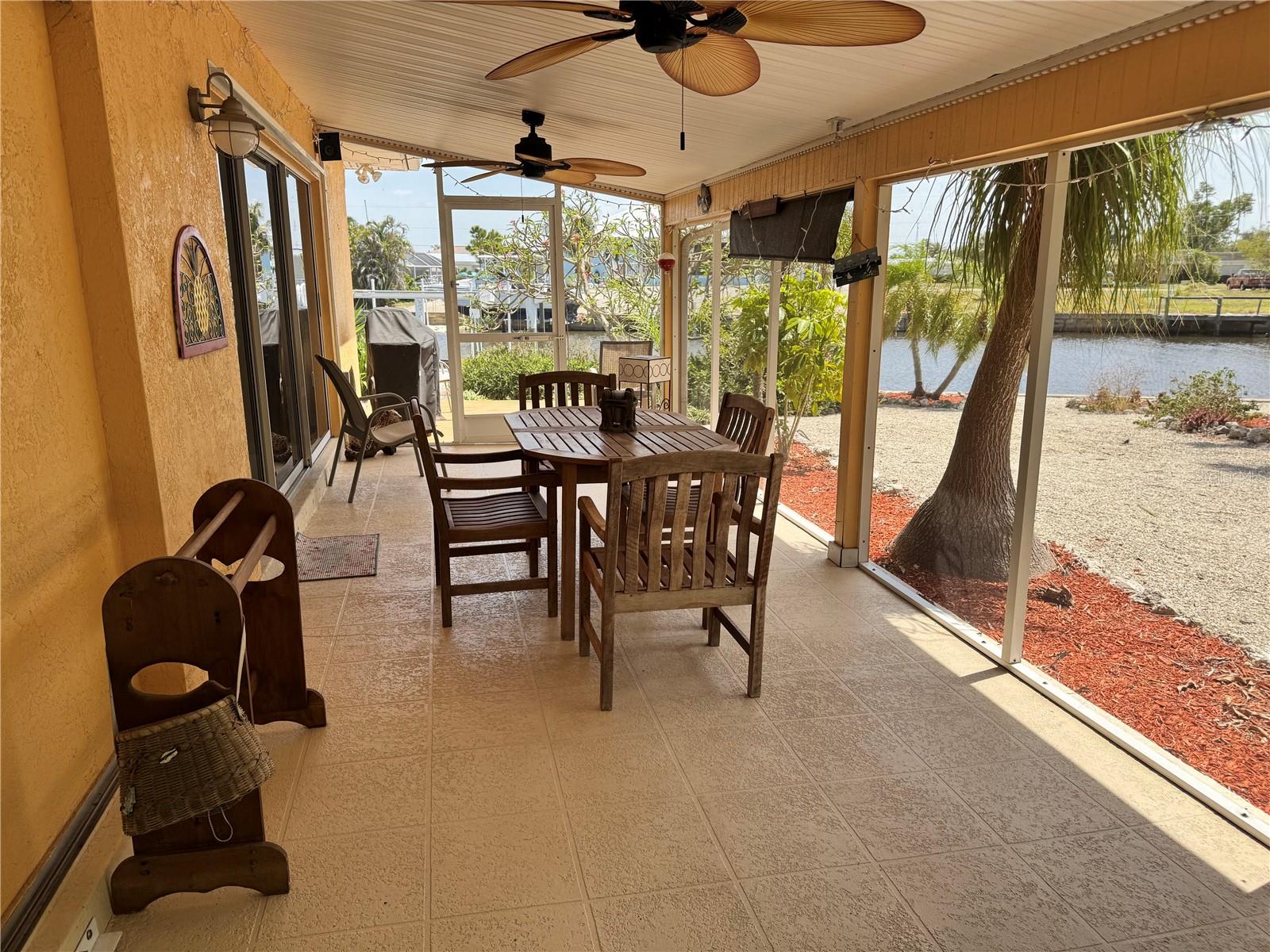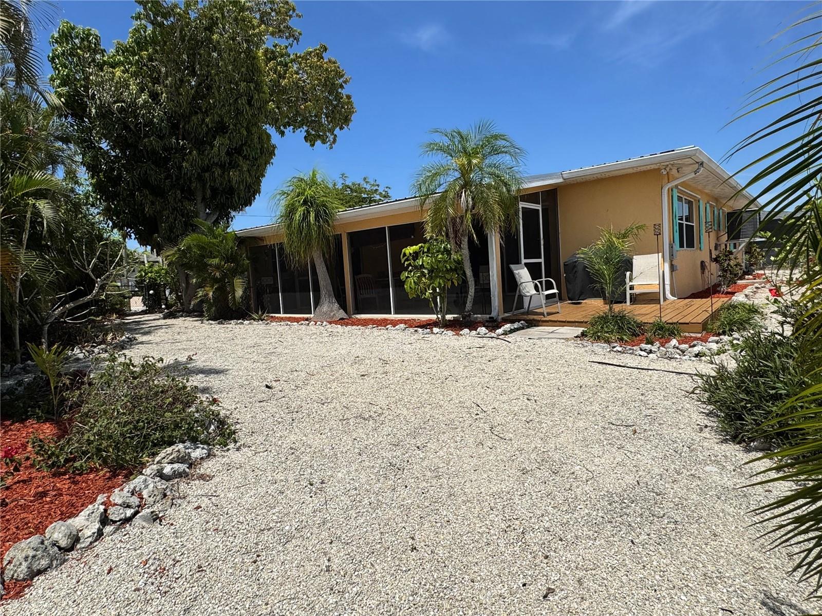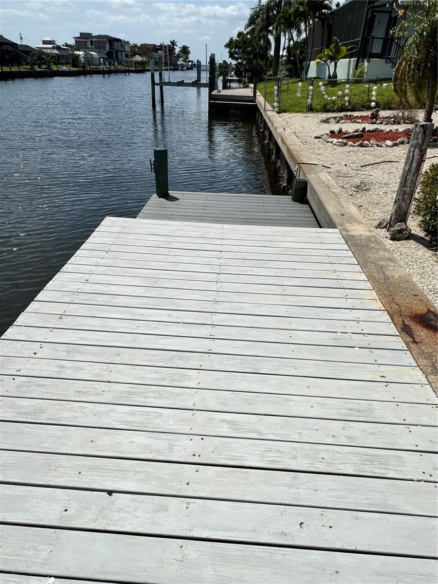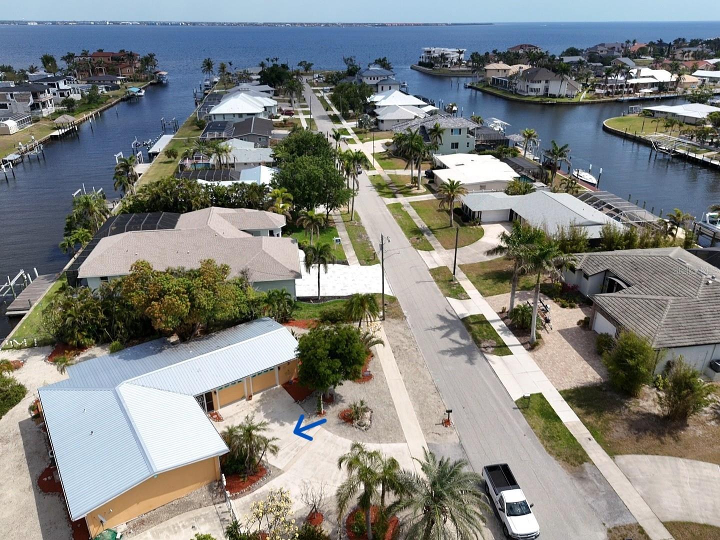 SAILBOAT SALTWATER FRONT~~~ Just 11 lots in from the Harbor & the open water leading to the Gulf. This beautiful waterfront ~~ 3 bedroom, 2 bath dollhouse features a new metal roof in 2023, new A/C in 2024 that is raised approx. over 4 feet off the ground. Kitchen is light and bright with a bar height countertop, newer dishwasher and a walk-in pantry. Master bedroom is off the back of the home with a large picturesque window to the canal, a walk-in closet and terrazzo floors. The 2nd guest bedroom offers French doors and bamboo flooring. 3rd bedroom has terrazzo floors and built in closet. This home offers hurricane shutters, 100 feet of seawall, a 10,000# boat lift with composite dock and lower dock for kayaks, a Davit, chain link fenced backyard, screened in lanai, a wooden deck for grilling, newer hot water heater, inside laundry room with laundry tub, 1x6 baseboards, crown molding, listellos around casing of front door, screened front entry, mature tropical landscaping, large Mango tree and plumerias abound. Additional concrete driveway to accommodate your boat trailer or R.V.