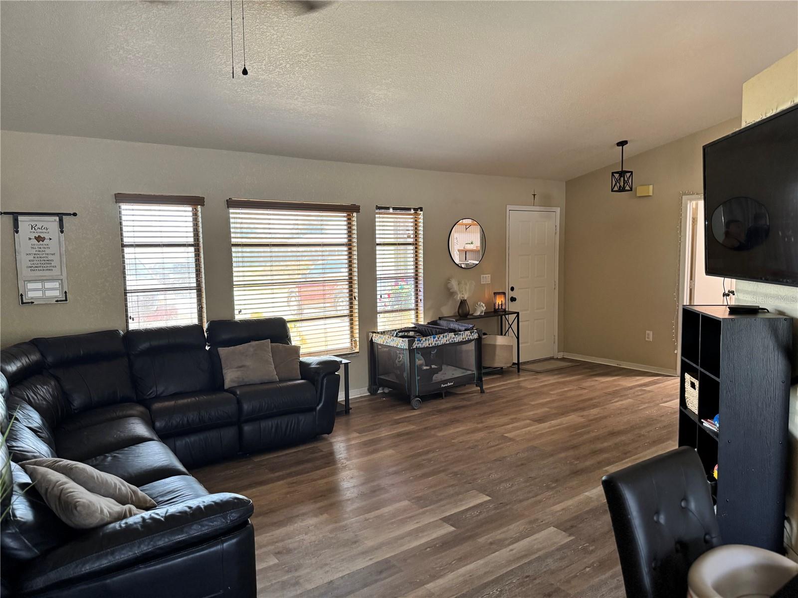 3/2/2 POOL HOME ~~~ Located on a freshwater canal (no access). No damage from the storms. NON-FLOOD ZONE!!!!! New roof in 2020. Pool resurfaced in 2019. Newer A/C in 2017, newer pool pump & laminate flooring. Enter the screened entry to a large great room/dining room with cathedral ceilings. The kitchen has been remodeled with Granite counters, a pass through window to the lanai area, newer fridge and dishwasher. There is a formal dining area as well as a breakfast/dinette off of the kitchen. The master is large with a walk in closet and a barn door leading you to the master bathroom. Both guest rooms have newer carpet and guest bath offers new vanity. Exterior has fresh coat of paint, Bomanite stamped pool deck, baby gate and newer copping tiles around pool, fenced backyard, grow your own veggies and raise chickens for fresh eggs if you like. Kitchen has been remodeled with Granite counters, a pass through window to the lanai area, fridge and dishwasher. Inside laundry room with wallpaper and wood shelves for your supplies. New garage door opener. City water and sewer.