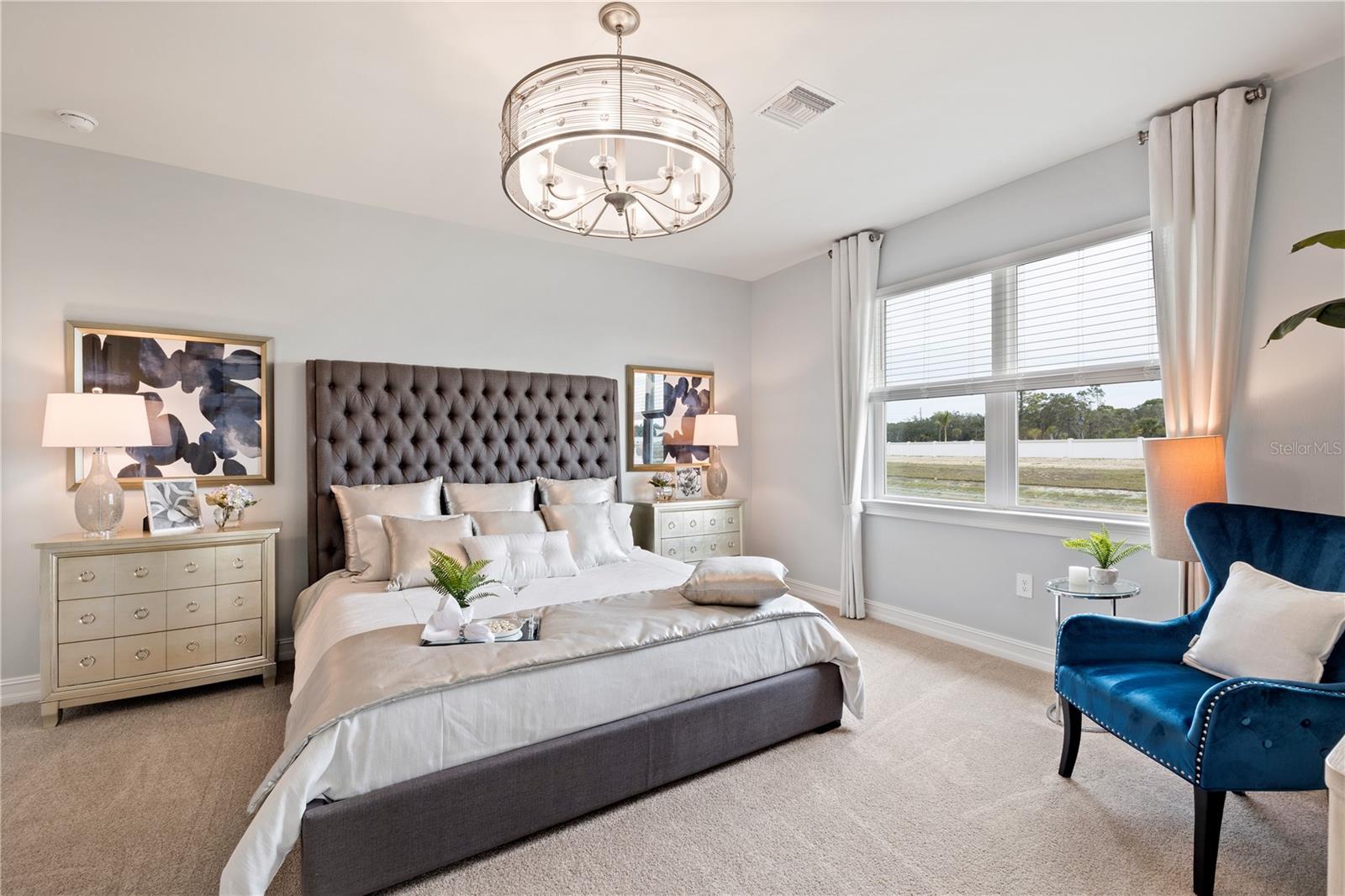 MOVE- IN READY! The Delray model (actual model for sale).This home features a highly-desired, open-concept design. A double-sliding glass door and a multitude of windows fill the kitchen, great room and dining area with the Florida sunshine. The kitchen is ideally situated at the heart of the home and is modernly-designed with an optimal amount of cabinets and counter space and features a walk-in pantry. A generous-sized, paved and covered lanai overlooking a private water lot. Located at the back of the home, the well-appointed owners suite comfortably fits a king-size bed set and features two walk-in closets, dual vanity, a desirable walk-in shower, and a private water closet. Opposite the owner’s suite, at the front of the home, two guest bedrooms share a guest bath. This home also features a versatile flex room with a closet that can be utilized as an office, den, or even a fourth bedroom. Hurricane windows and smart home features complete this home.