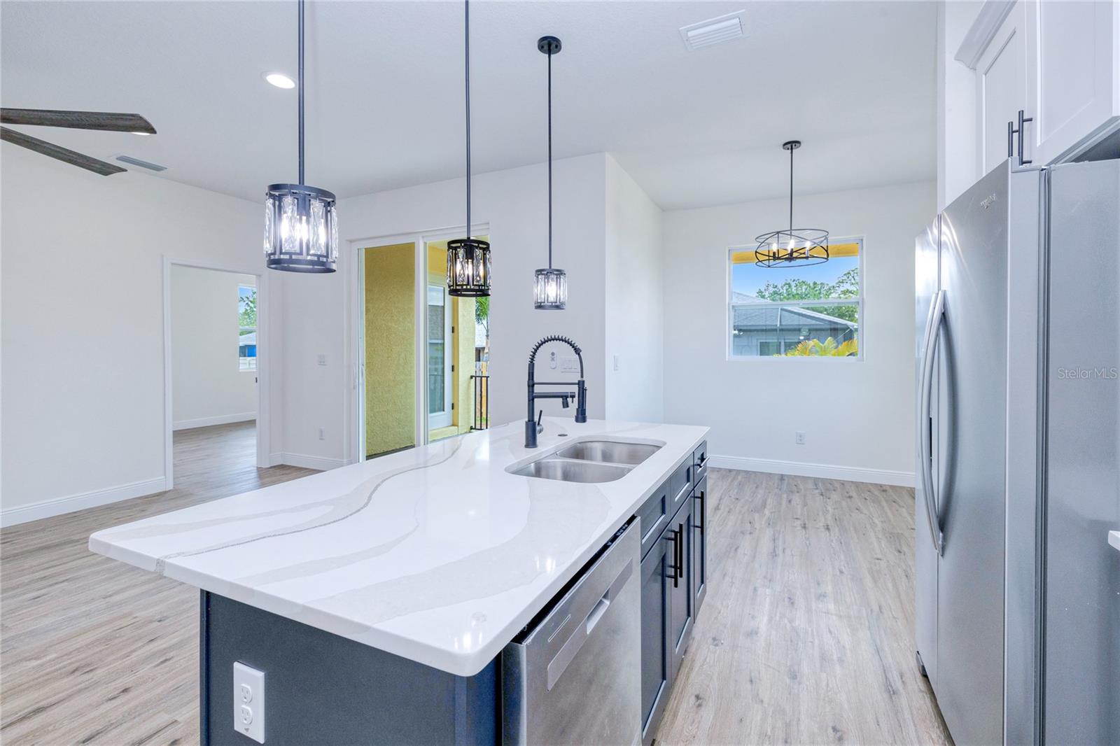 One or more photo(s) has been virtually staged. Welcome to this BRAND-NEW CONSTRUCTION home in the highly sought-after Tree Tops at Port Charlotte, a 55+ community offering resort-style living. This beautifully upgraded home features impact-resistant windows and doors for safety and energy efficiency. Enjoy a gourmet kitchen with premium 42” soft-close cabinetry, quartz countertops, a spacious island, stainless steel appliances, and modern lighting. The open floor plan is enhanced by luxury vinyl flooring, designer fixtures, and detailed trim work throughout. The primary suite boasts a walk-in closet, an additional built-in closet, and a luxurious bath with double vanities, a wall-to-wall mirror, a tiled glass shower, and a linen closet. The guest bath features a solid wood vanity and a tub/shower combo. Additional highlights include a two-car garage with an epoxy floor and thoughtful finishes throughout. Residents enjoy access to top-tier amenities including a clubhouse, heated pool, patio area, shuffleboard, tennis, and pickleball courts. Ideally located near North Port, Englewood, Port Charlotte, and the new Sunseeker Resort, you’ll be close to top-rated dining, shopping, and golf. Plus, some of Florida’s most beautiful Gulf Coast beaches—including Englewood Beach, Stump Pass, and Boca Grande—are just a short drive away, perfect for sun-filled days on the water. Schedule your private showing today!