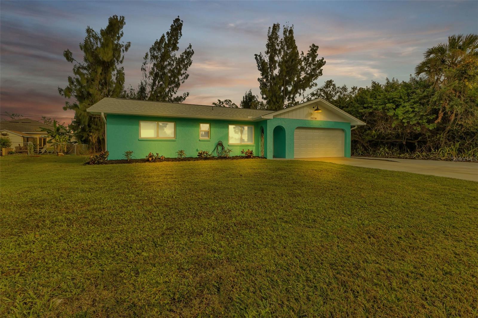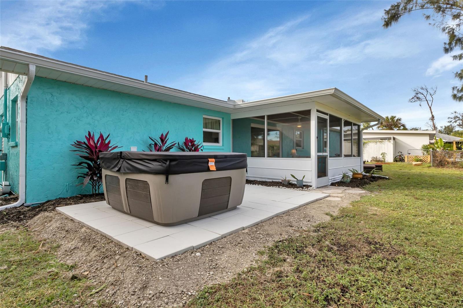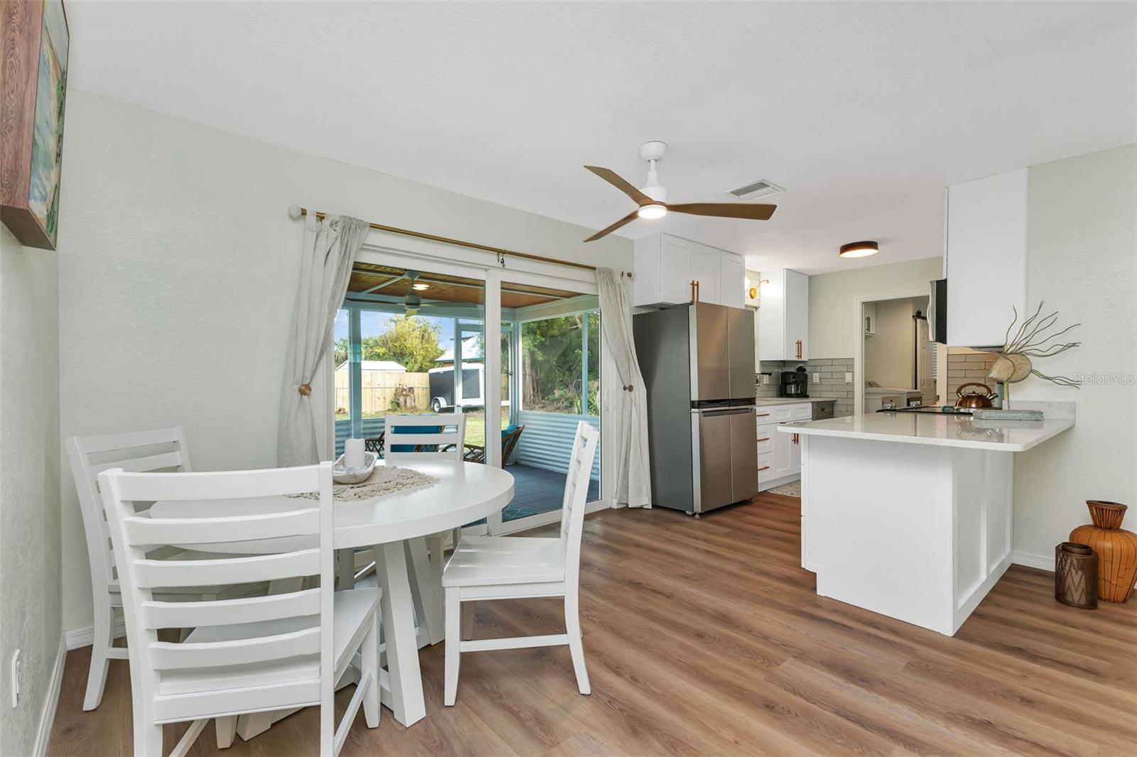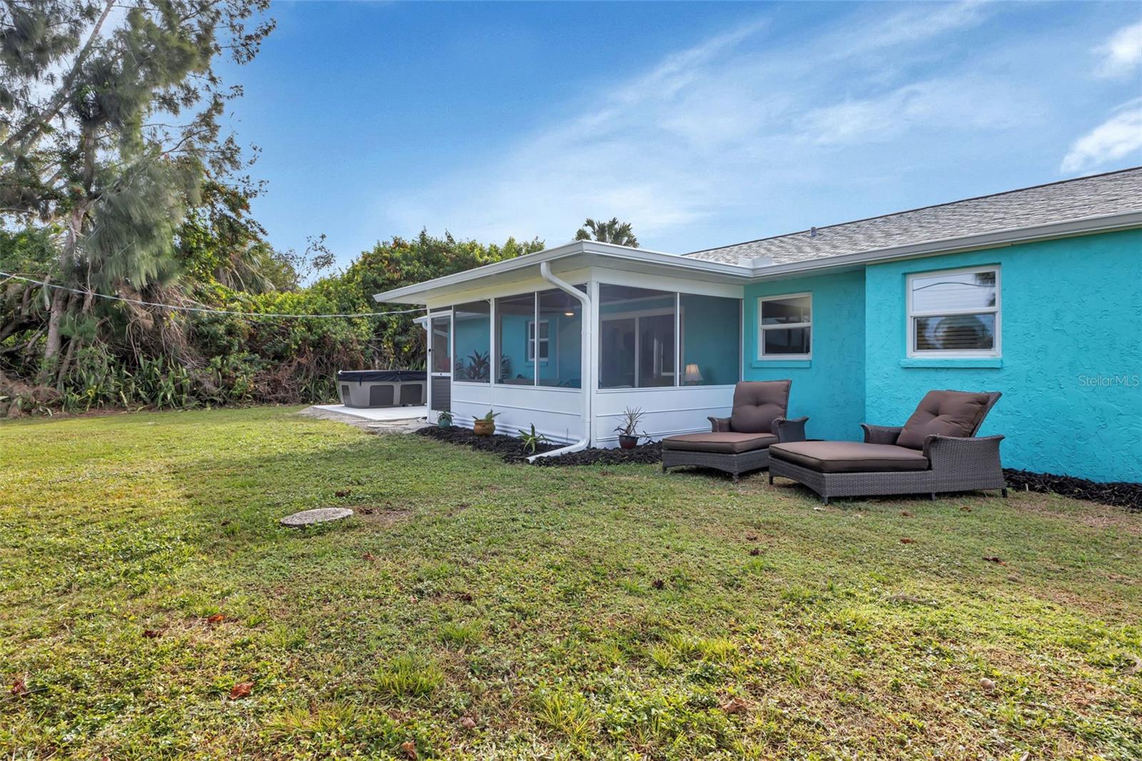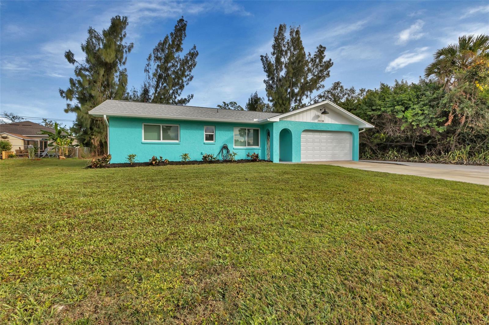 Florida Calling! Truly beautiful updated 2 bedroom, 2 bathroom, and 2 car garage home. There is not a room that has not been brought back to life in this home. 2019 the home received new hurricane windows. Then 2023 this home received a new roof and A/C system. The kitchen offers plenty of counter tops to utilize as a cook or entertainer and opens to the dinning, living room, and the beautiful screened in lanai giving elbow room for you and your guests. When the party is done and clean up is inevitable no fret the laundry room is large, open and storage abound. Tiled bathrooms and cozy bedrooms with large closets found here. Garage storage and RV parking with a 50amp hook up, yes that is here as well. All of this in a quite yet close to everything landscaped X-flood zone home. Stop in have a look and decide if you want the furnishings as well.
