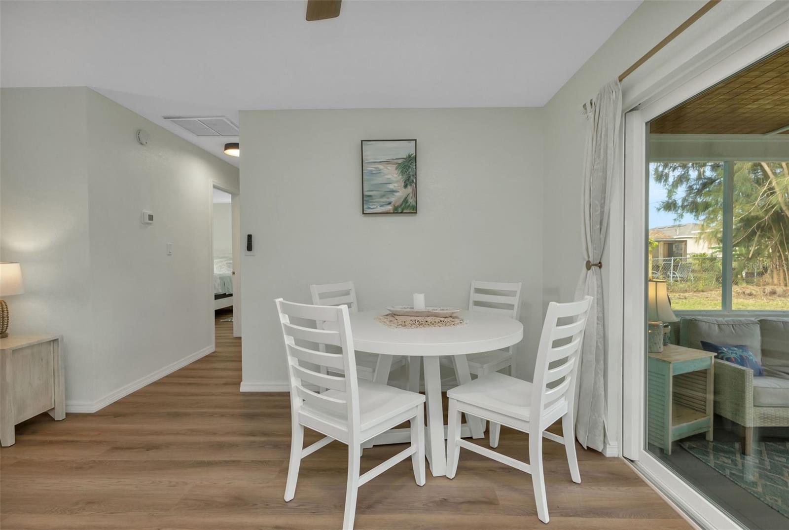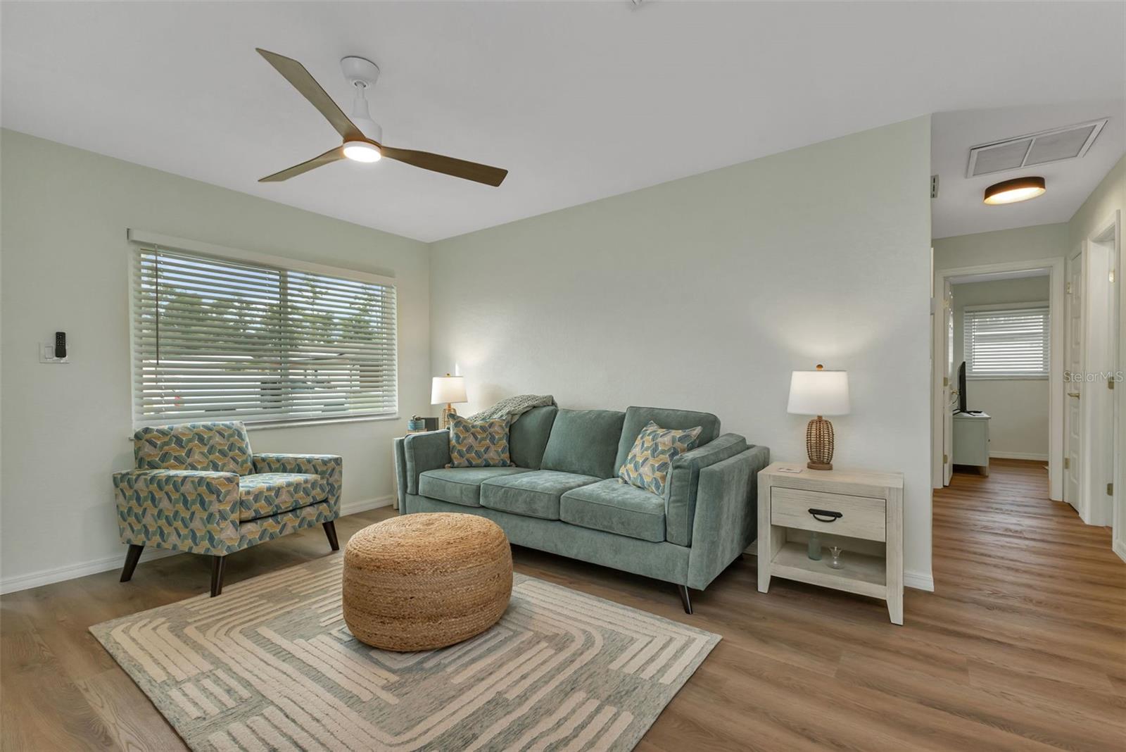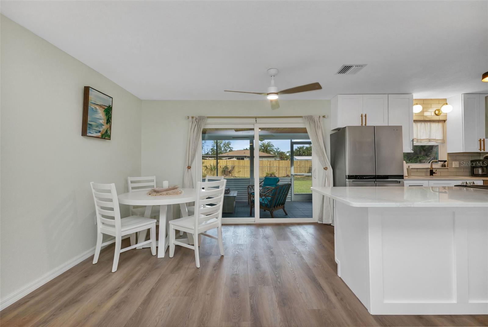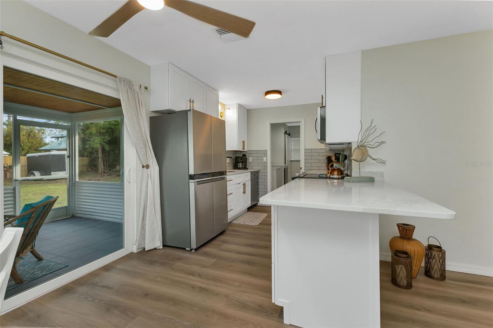 Florida Calling! Truly beautiful updated 2 bedroom, 2 bathroom, and 2 car garage home. There is not a room that has not been brought back to life in this home. 2019 the home received new hurricane windows. Then 2023 this home received a new roof and A/C system. The kitchen offers plenty of counter tops to utilize as a cook or entertainer and opens to the dinning, living room, and the beautiful screened in lanai giving elbow room for you and your guests. When the party is done and clean up is inevitable no fret the laundry room is large, open and storage abound. Tiled bathrooms and cozy bedrooms with large closets found here. Garage storage and RV parking with a 50amp hook up, yes that is here as well. All of this in a quite yet close to everything landscaped X-flood zone home. Stop in have a look and decide if you want the furnishings as well.