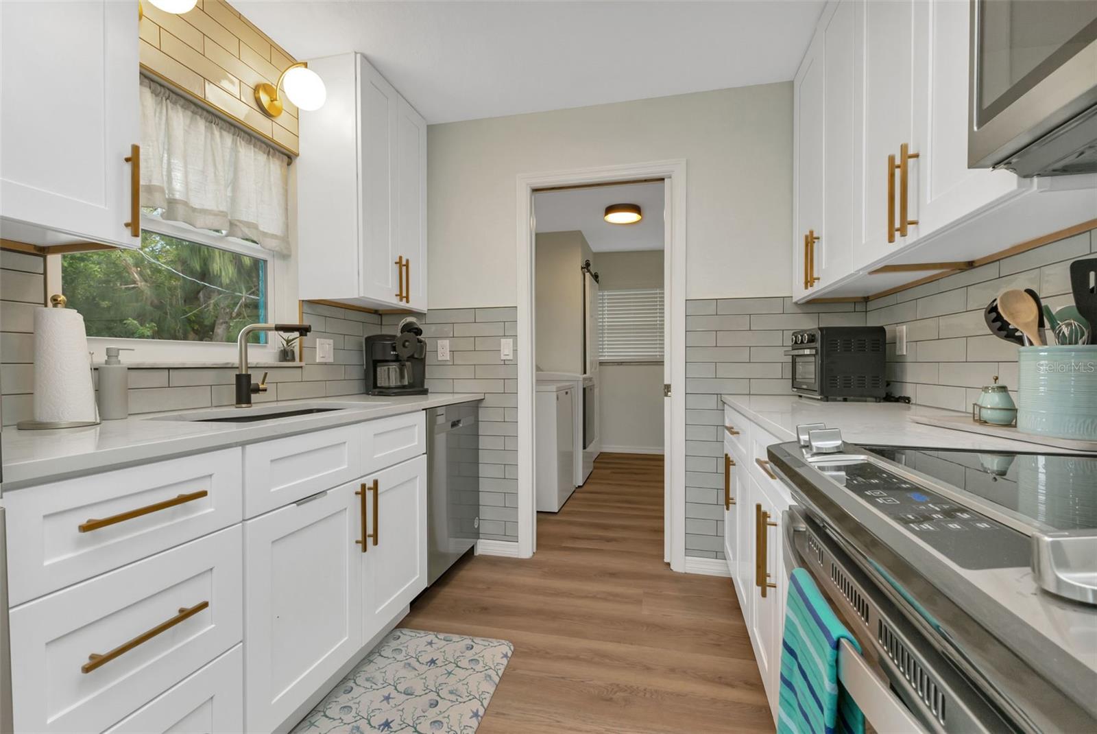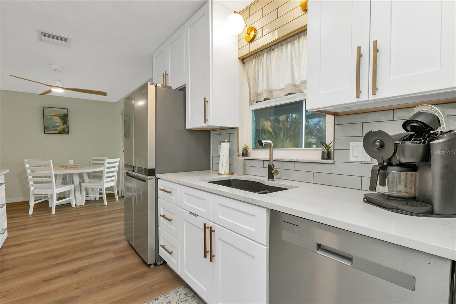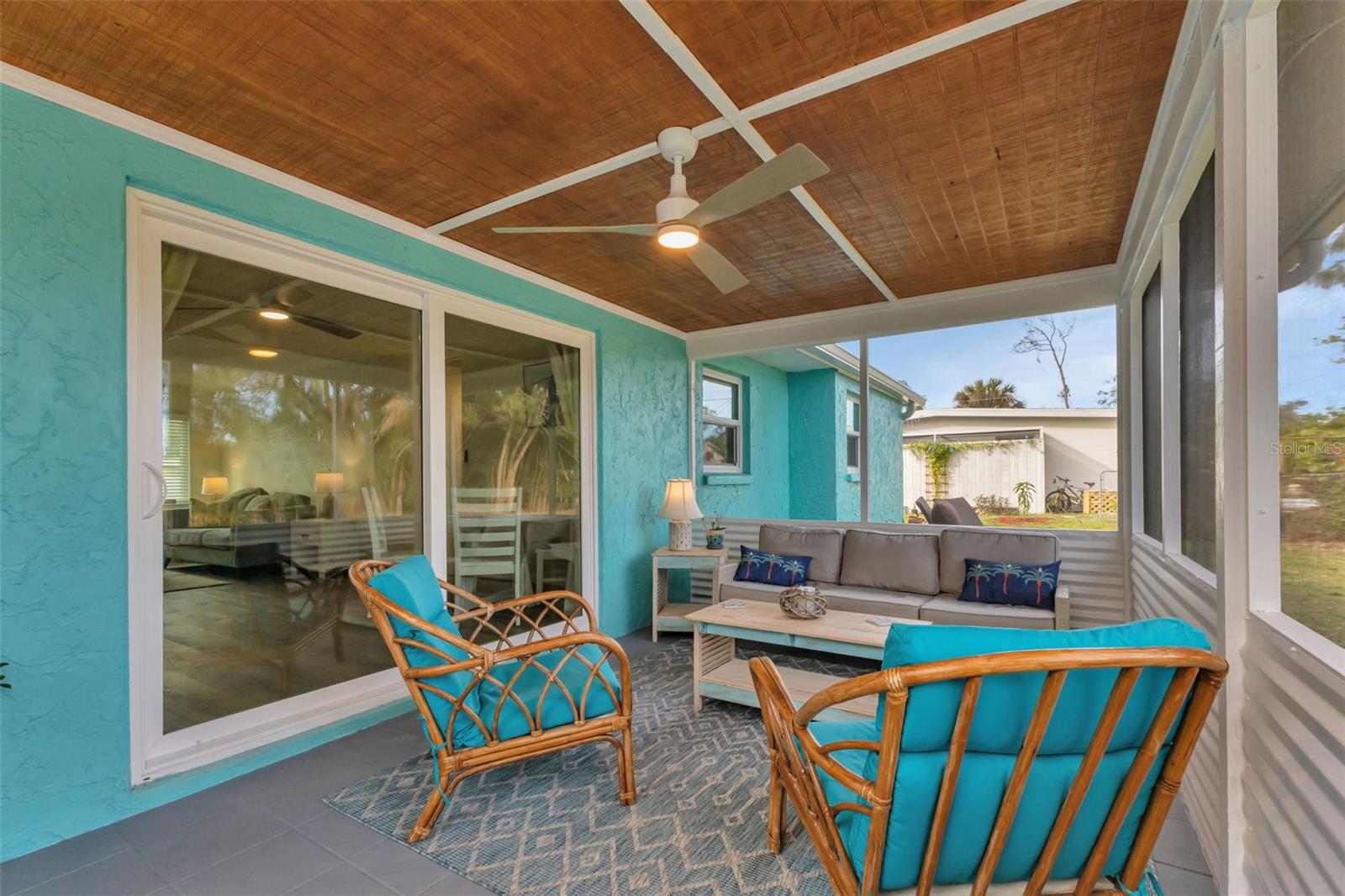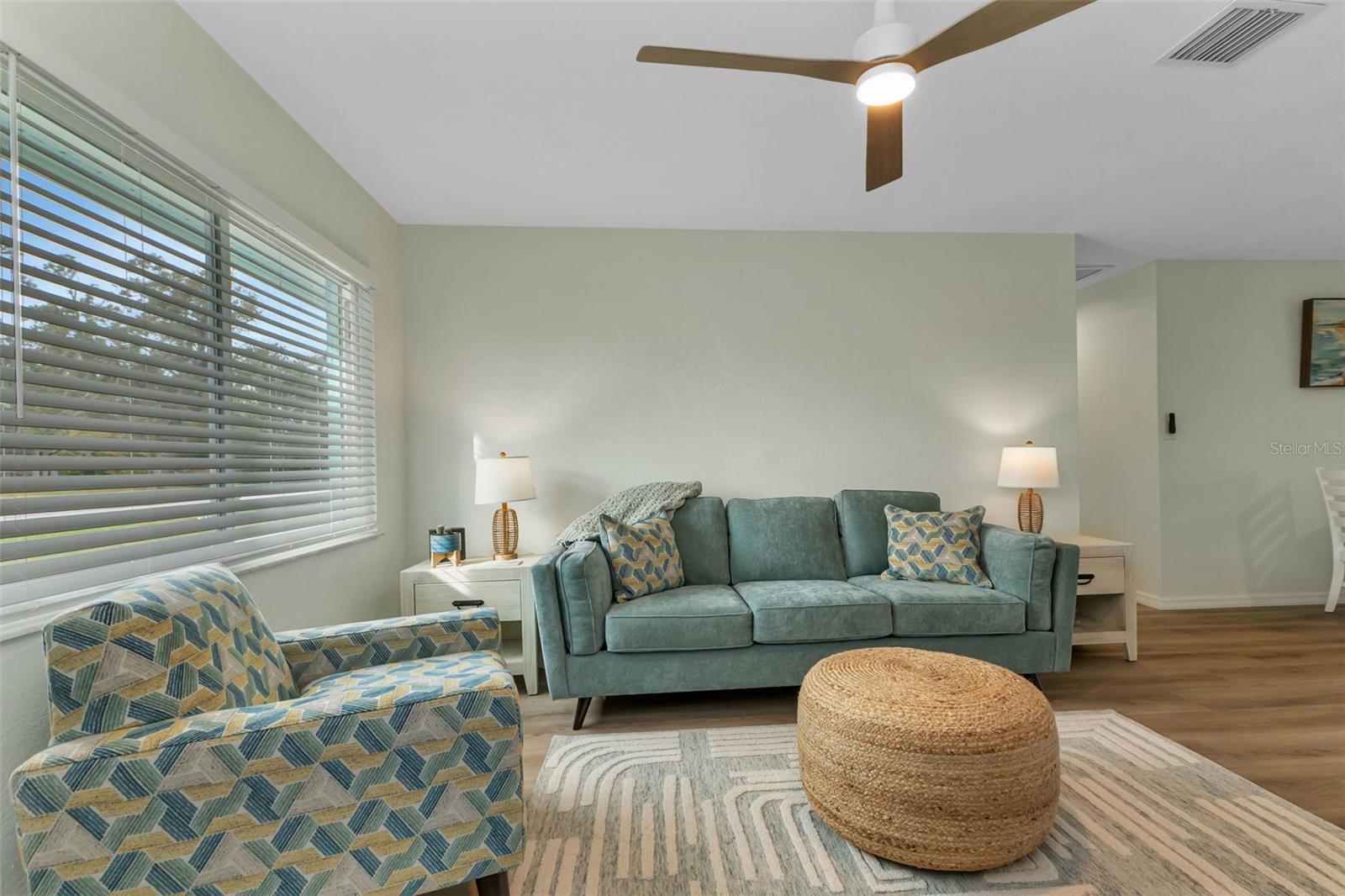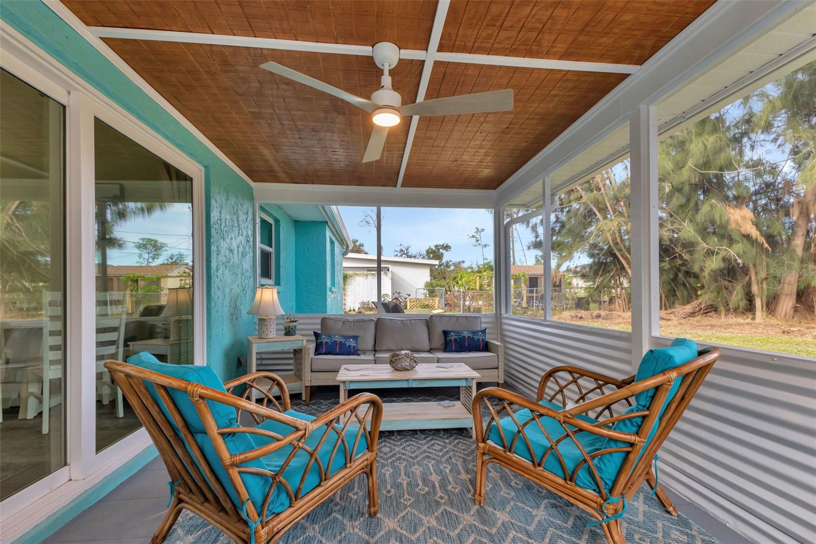 Florida Calling! Truly beautiful updated 2 bedroom, 2 bathroom, and 2 car garage home. There is not a room that has not been brought back to life in this home. 2019 the home received new hurricane windows. Then 2023 this home received a new roof and A/C system. The kitchen offers plenty of counter tops to utilize as a cook or entertainer and opens to the dinning, living room, and the beautiful screened in lanai giving elbow room for you and your guests. When the party is done and clean up is inevitable no fret the laundry room is large, open and storage abound. Tiled bathrooms and cozy bedrooms with large closets found here. Garage storage and RV parking with a 50amp hook up, yes that is here as well. All of this in a quite yet close to everything landscaped X-flood zone home. Stop in have a look and decide if you want the furnishings as well.