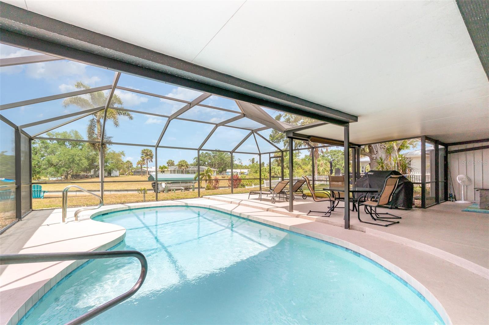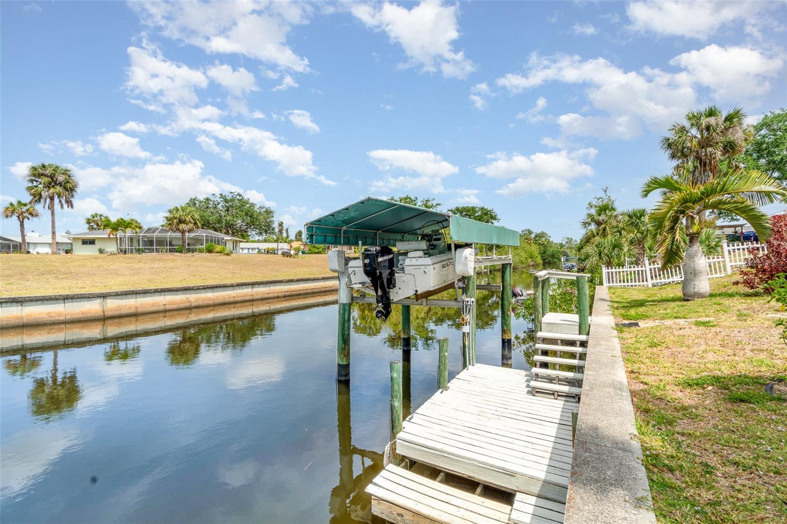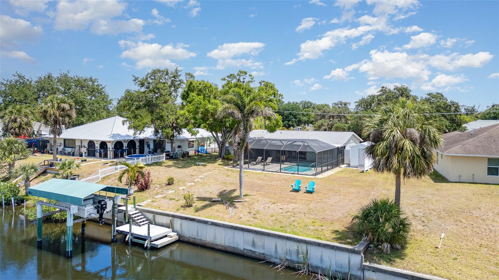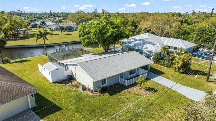 Rented for the months of Jan-March 2026. BEAUTIFUL WATERFRONT 2 Bedroom, 2 Bathroom, 1 Car Carport, Pool home with a PRIVATE Dock & Boatlift, 98 ft concrete sea wall, on a SALTWATER CANAL in Port Charlotte. HIGH & DRY, have peace of mind that this home has had no damage or flooding from past storms! NO HOA FEES, PER SELLER CURRENT LENDER DOES NOT REQUIRE FLOOD INSURANCE, FURNITURE & BOAT NEGOTIABLE! CLICK ON THE VIRTUAL TOUR LINK 1 FOR THE VIDEO AND VIRTUAL LINK 2 FOR THE 3D TOUR. Entertain friends and family in an open living and dining room with large windows and a glass slider for plenty of natural light & water-view dining. The kitchen offers ALL Stainless-steel appliances, ample counter space, a breakfast bar, and an adjacent laundry room with pantry space. The spacious master bedroom has DUAL closets, a glass slider to the lanai showcasing a SERENE canal view, and a private bathroom with a single sink vanity and walk-in shower. The guest bedroom is a fantastic size with a built-in closet and guest bathroom nearby. Extend your living and entertaining space to the large covered lanai where you can sip your morning coffee or unwind with your favorite evening beverage while enjoying the BREATHTAKING water views. Take a dip in the private heated pool or soak up the sun from the pool deck. Whether launching a kayak, paddle board, or boat, you can set sail for endless water adventures right from your backyard with a private 8x12 dock featuring a 6,500-lb boat lift. The spacious backyard has room for play, hobbies, or relaxing after a day on the water, and includes a shed for extra storage. MINUTES to US-41, Port Charlotte Beach Complex, local favorites such as Fishermen’s Village, Ponce De Leon Park, shopping & boutiques, fine & casual dining, and LIVE entertainment. Also just a short car ride to the Gulf Beaches of Boca Grande, Englewood, or Manasota Key to name a few where you will find world-class fishing and white sand between your toes. Schedule your showing TODAY!