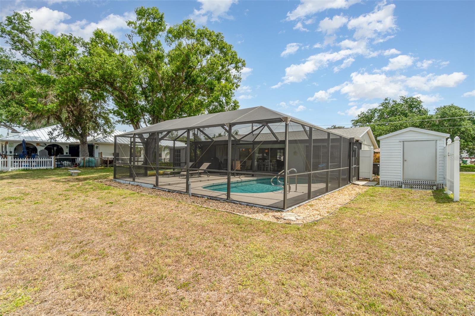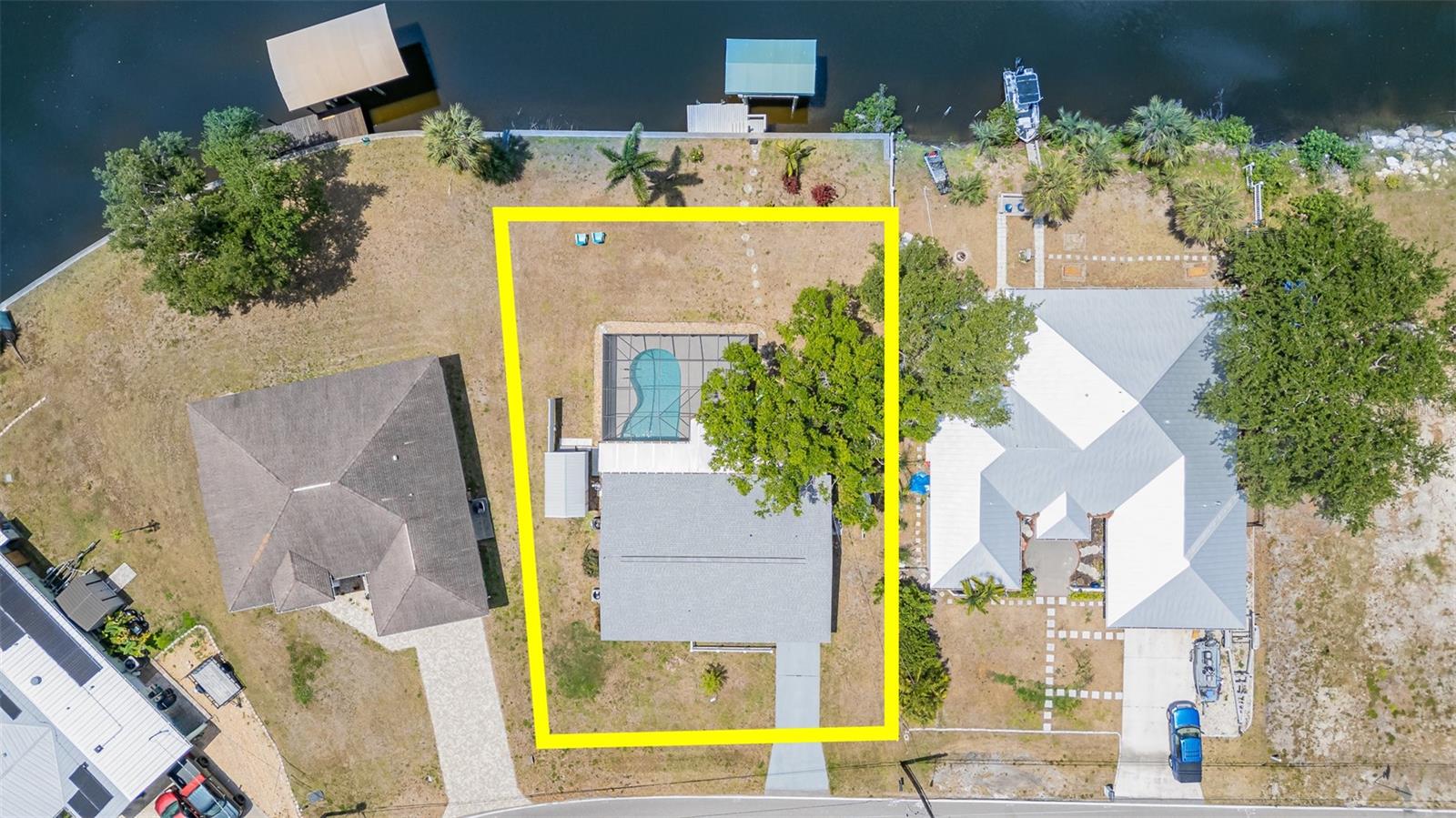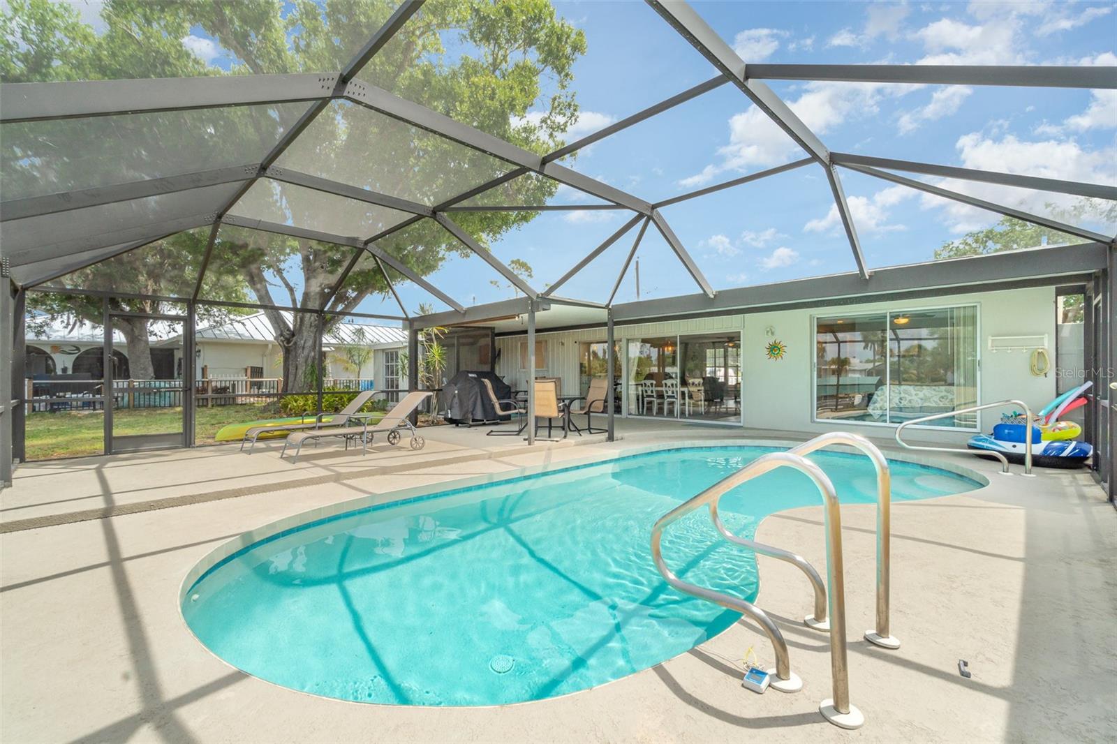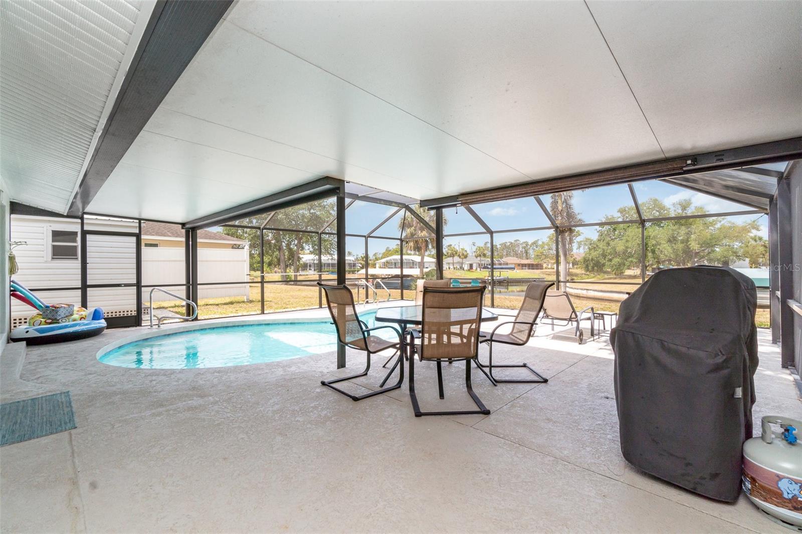 Rented for the months of Jan-March 2026. BEAUTIFUL WATERFRONT 2 Bedroom, 2 Bathroom, 1 Car Carport, Pool home with a PRIVATE Dock & Boatlift, 98 ft concrete sea wall, on a SALTWATER CANAL in Port Charlotte. HIGH & DRY, have peace of mind that this home has had no damage or flooding from past storms! NO HOA FEES, PER SELLER CURRENT LENDER DOES NOT REQUIRE FLOOD INSURANCE, FURNITURE & BOAT NEGOTIABLE! CLICK ON THE VIRTUAL TOUR LINK 1 FOR THE VIDEO AND VIRTUAL LINK 2 FOR THE 3D TOUR. Entertain friends and family in an open living and dining room with large windows and a glass slider for plenty of natural light & water-view dining. The kitchen offers ALL Stainless-steel appliances, ample counter space, a breakfast bar, and an adjacent laundry room with pantry space. The spacious master bedroom has DUAL closets, a glass slider to the lanai showcasing a SERENE canal view, and a private bathroom with a single sink vanity and walk-in shower. The guest bedroom is a fantastic size with a built-in closet and guest bathroom nearby. Extend your living and entertaining space to the large covered lanai where you can sip your morning coffee or unwind with your favorite evening beverage while enjoying the BREATHTAKING water views. Take a dip in the private heated pool or soak up the sun from the pool deck. Whether launching a kayak, paddle board, or boat, you can set sail for endless water adventures right from your backyard with a private 8x12 dock featuring a 6,500-lb boat lift. The spacious backyard has room for play, hobbies, or relaxing after a day on the water, and includes a shed for extra storage. MINUTES to US-41, Port Charlotte Beach Complex, local favorites such as Fishermen’s Village, Ponce De Leon Park, shopping & boutiques, fine & casual dining, and LIVE entertainment. Also just a short car ride to the Gulf Beaches of Boca Grande, Englewood, or Manasota Key to name a few where you will find world-class fishing and white sand between your toes. Schedule your showing TODAY!
