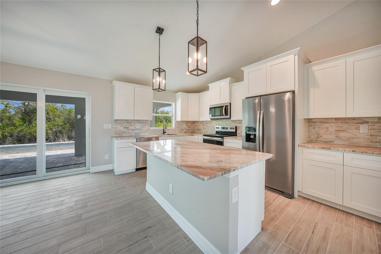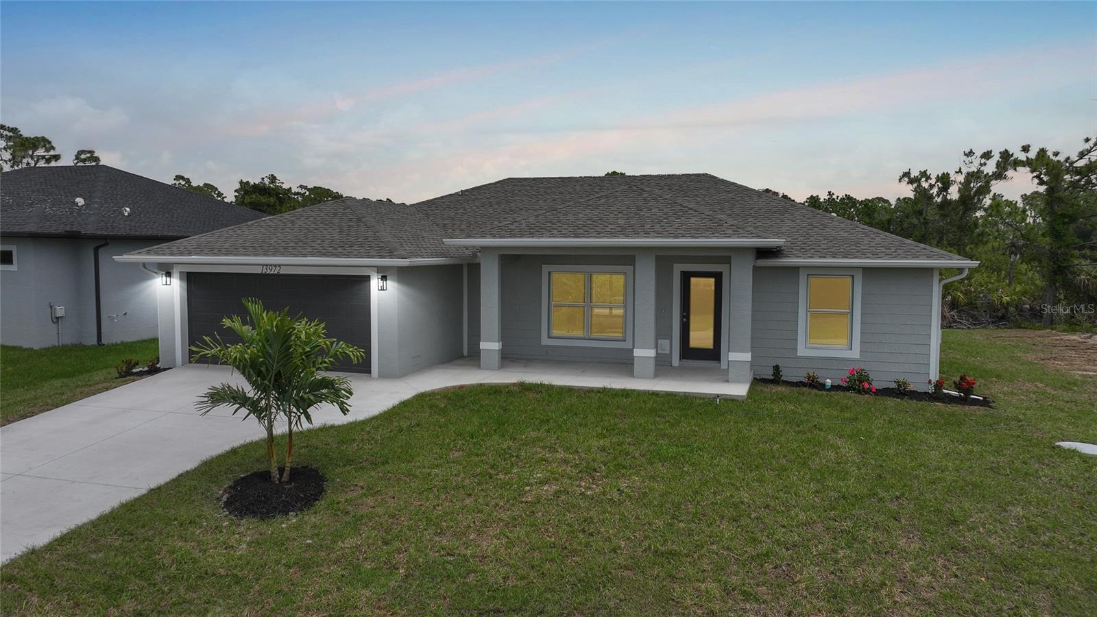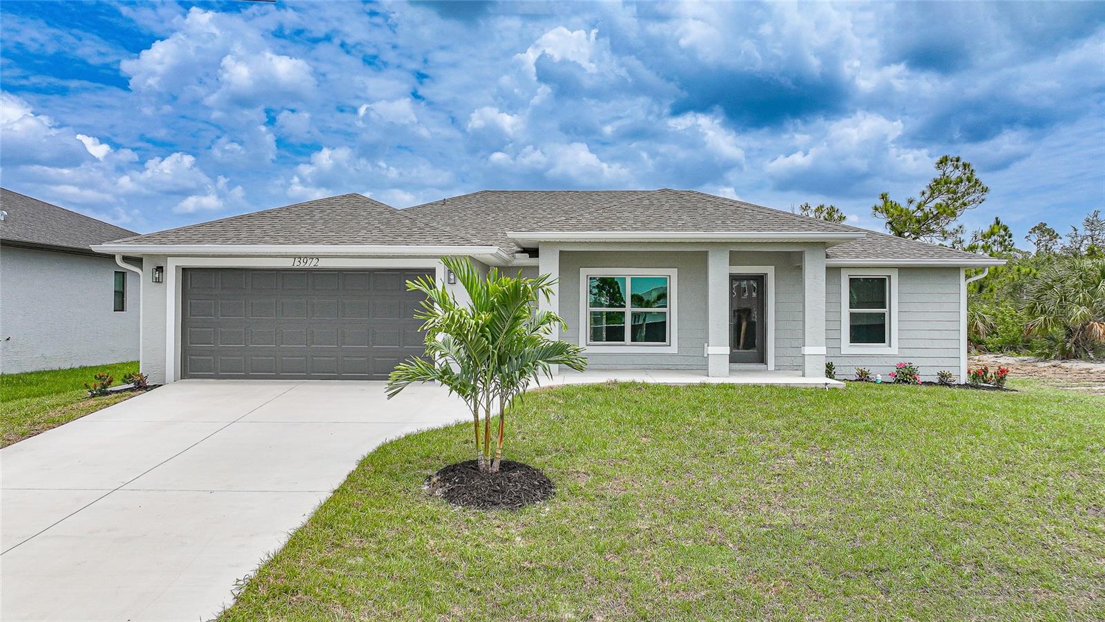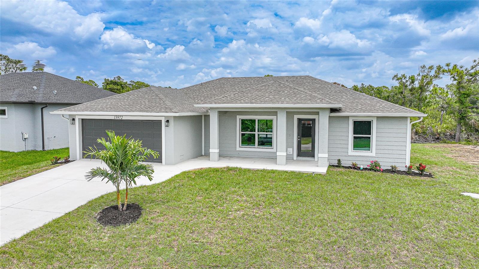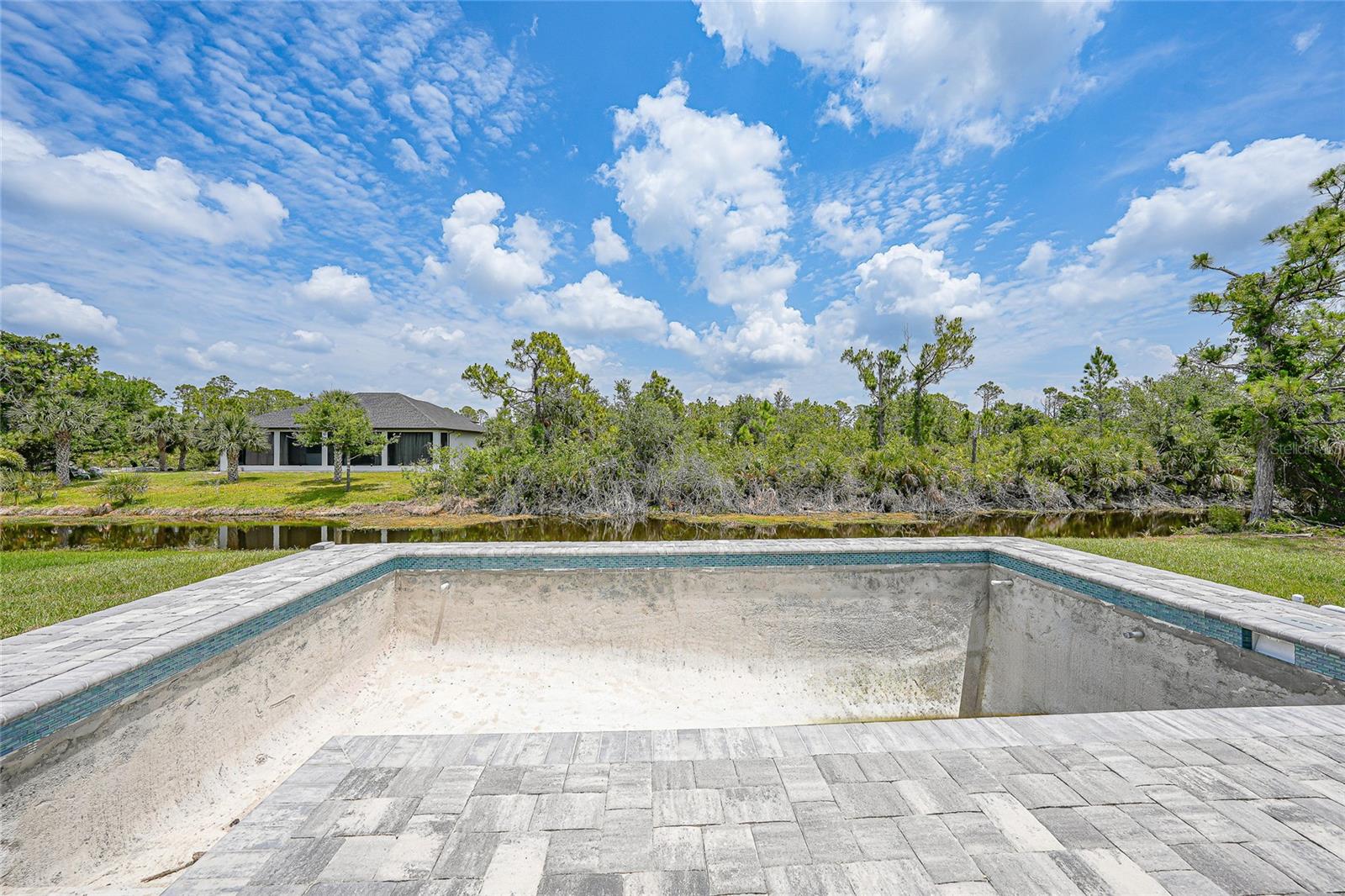 Not in a Flood Zone! POOL AND CAGE COMPLETED! Welcome to this well-crafted new construction pool home offering 3 bedrooms, 2 bathrooms, and 1,600 sq ft of thoughtfully designed living space, set on a freshwater canal in the highly desirable South Gulf Cove community. Inside, you'll find tile flooring throughout, impact-resistant windows, and a spacious open-concept layout enhanced by tray ceilings. The chef’s kitchen features soft-close wood cabinetry, a designer backsplash, Level 3 granite countertops, and new stainless-steel appliances, delivering both function and style. Both bathrooms include fully tiled showers, with a frameless glass enclosure to be installed in the master bathroom for a sleek, spa-like finish. The master suite offers a private retreat, complete with a walk-in closet and a well-appointed layout that balances comfort and convenience. Step outside to your own personal escape: a 300 sq ft covered lanai overlooking an underground pool TO BE COMPETED with tranquil canal views—ideal for relaxing, entertaining, or enjoying direct water access. This move-in-ready home blends durability, elegance, and true Florida living. Don’t miss your opportunity to own a standout property in one of Port Charlotte’s most desirable waterfront neighborhoods.