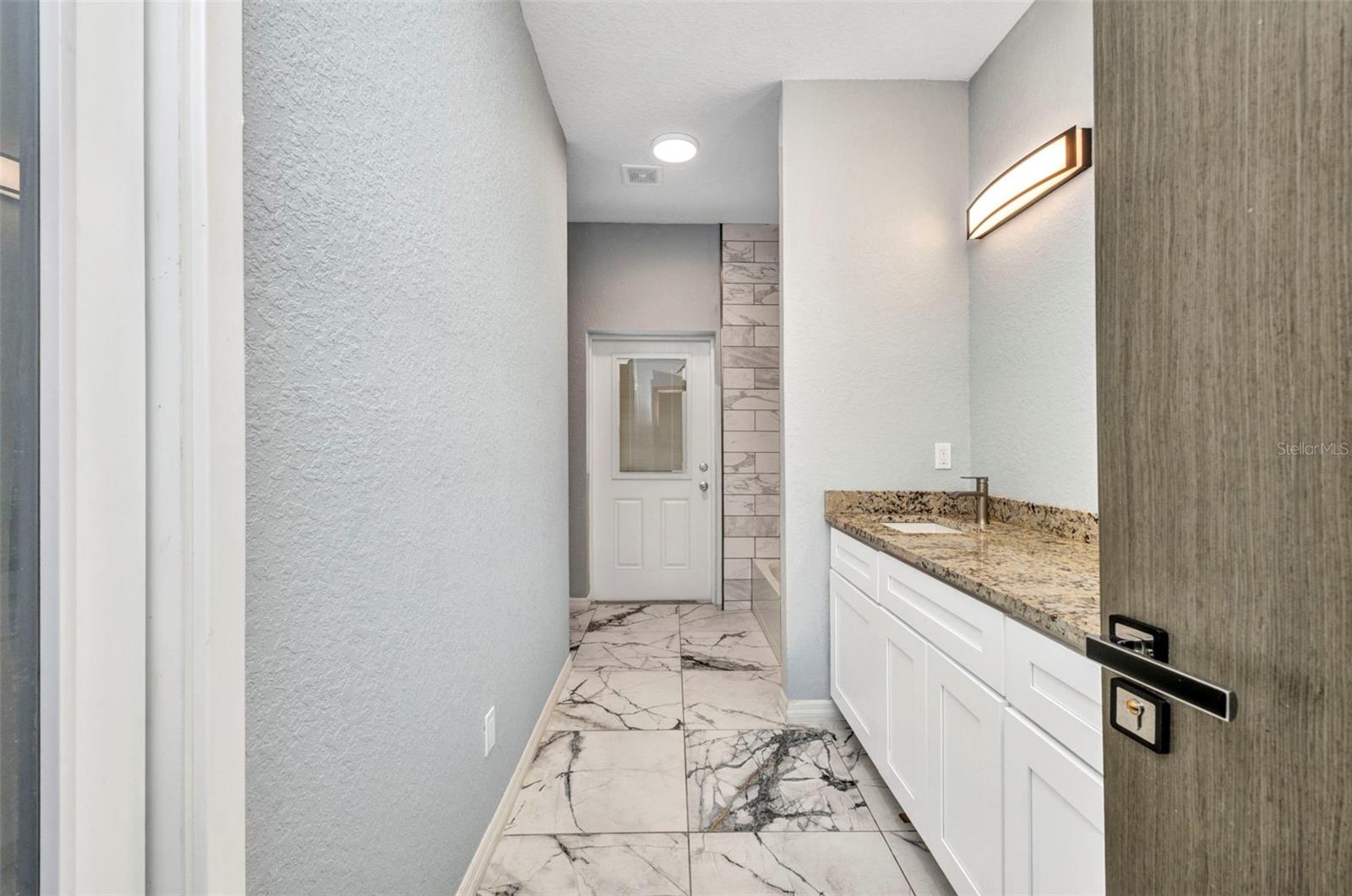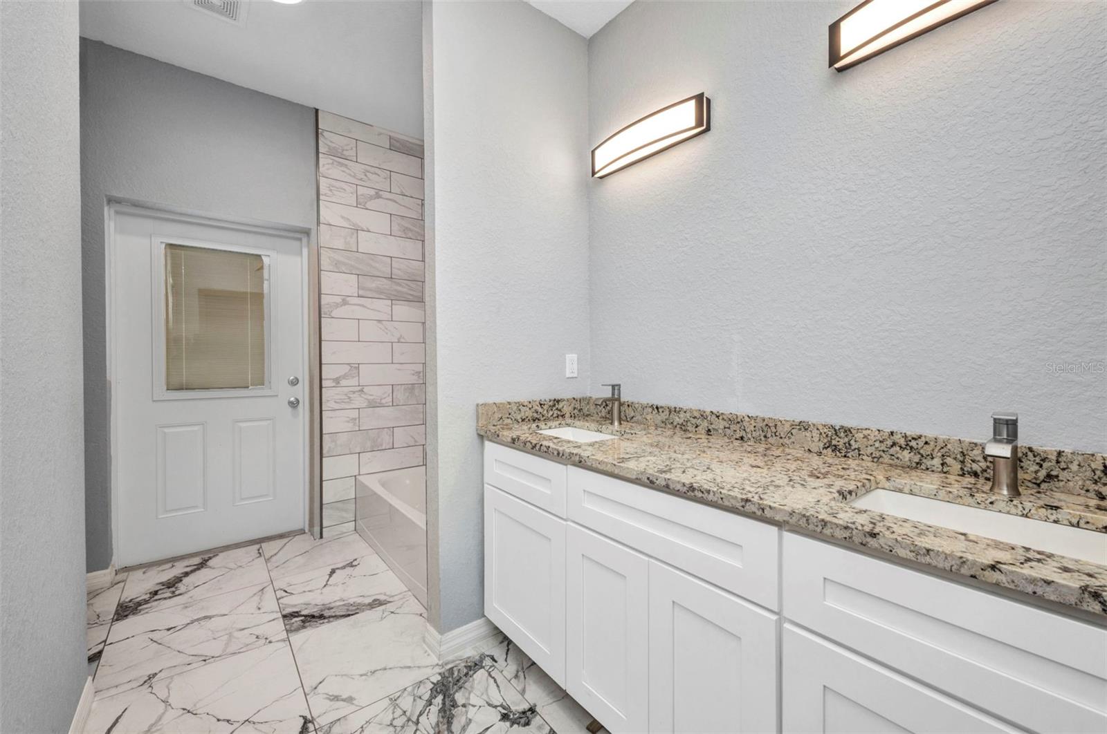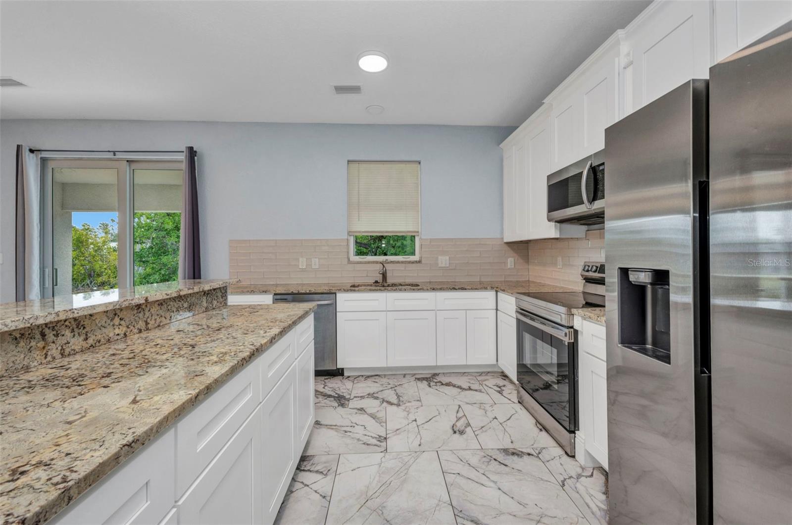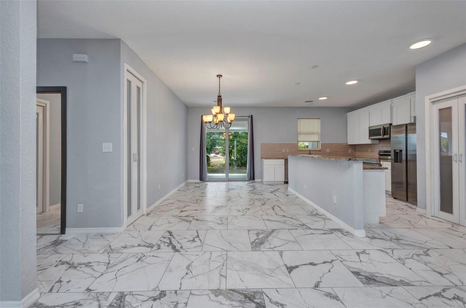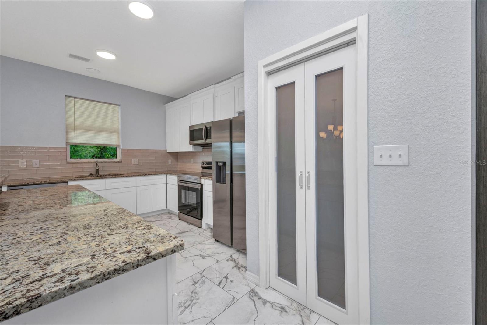 Beautifully Designed 3-Bedroom Home with Spacious Garage – Perfect for Your Truck or Boat! Step into comfort and style in this tastefully designed 3-bedroom, 2-bathroom home that checks all the boxes. From the moment you walk in, you'll notice the upgraded modern interior doors with glass inserts, adding a touch of elegance and natural light throughout the living spaces. Home also has hurricane impact windows throughout. The open-concept layout features gorgeous tile and vinyl flooring throughout, paired with granite countertops and stainless steel appliances in a well-appointed kitchen—perfect for cooking and entertaining. Retreat to the expansive master suite featuring a large bedroom, dual vanities, a luxurious stand-alone soaking tub, and a spacious walk-in shower. Vehicle and outdoor enthusiasts will love the oversized 2-car garage—25 feet deep with a 10-foot high garage door—ideal for trucks, boats, or extra storage. The nearly 300 sq. ft. covered lanai offers a perfect space for relaxing or entertaining guests year-round. With public water and sewer, this home offers both convenience and modern living in one beautiful package. Don't miss your opportunity to own this stunning, move-in-ready home!
