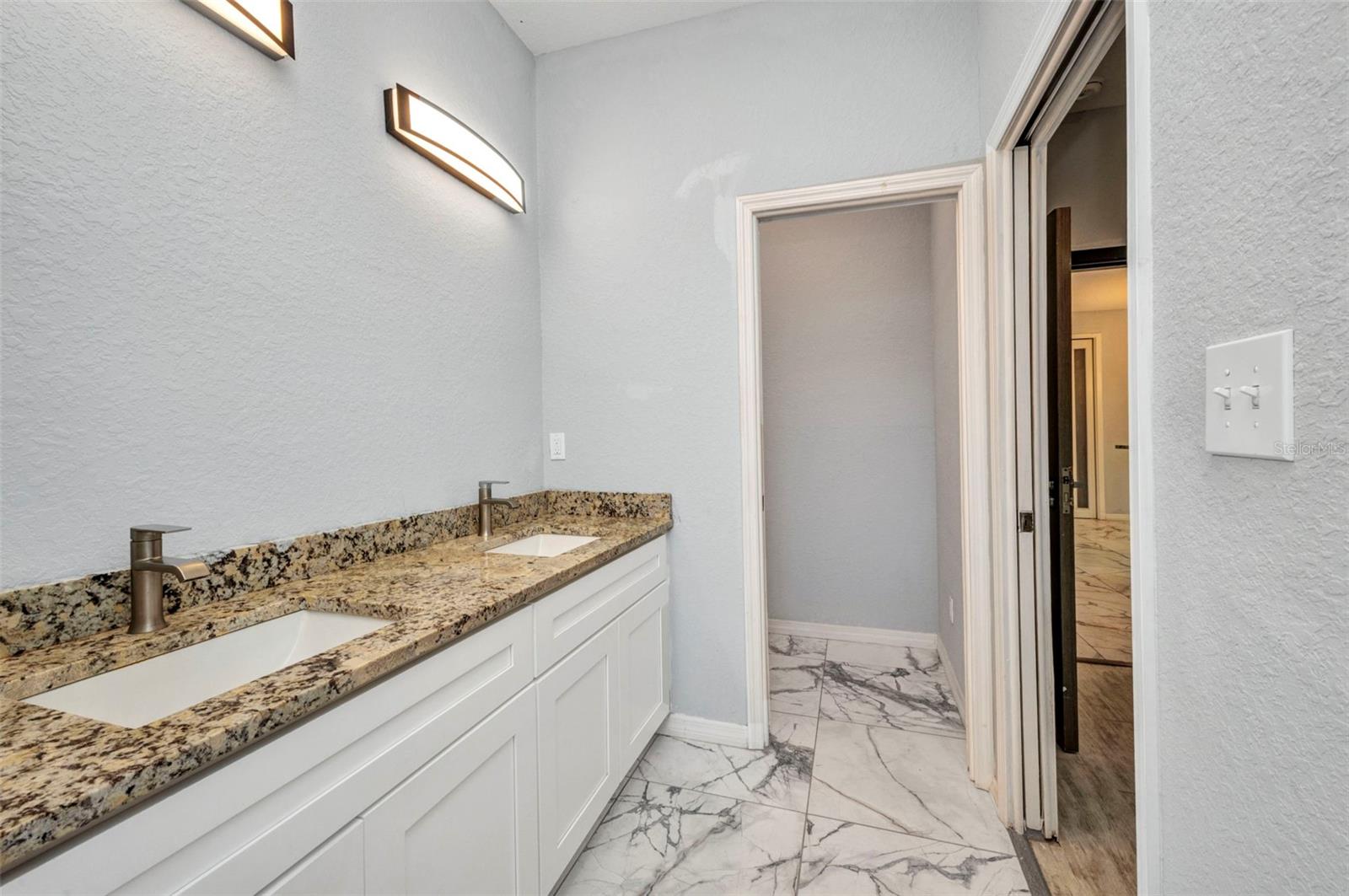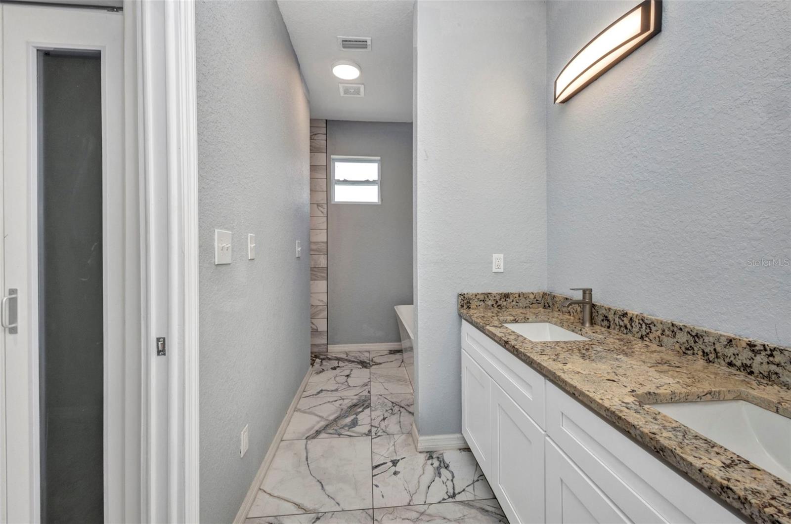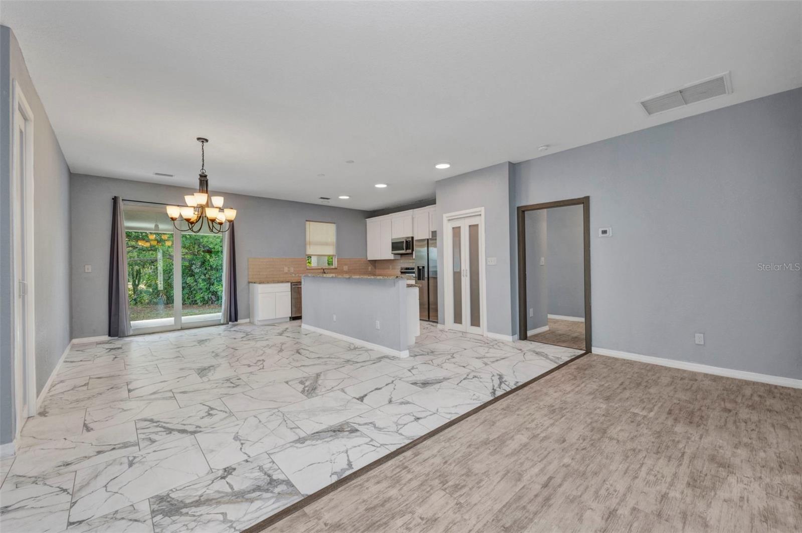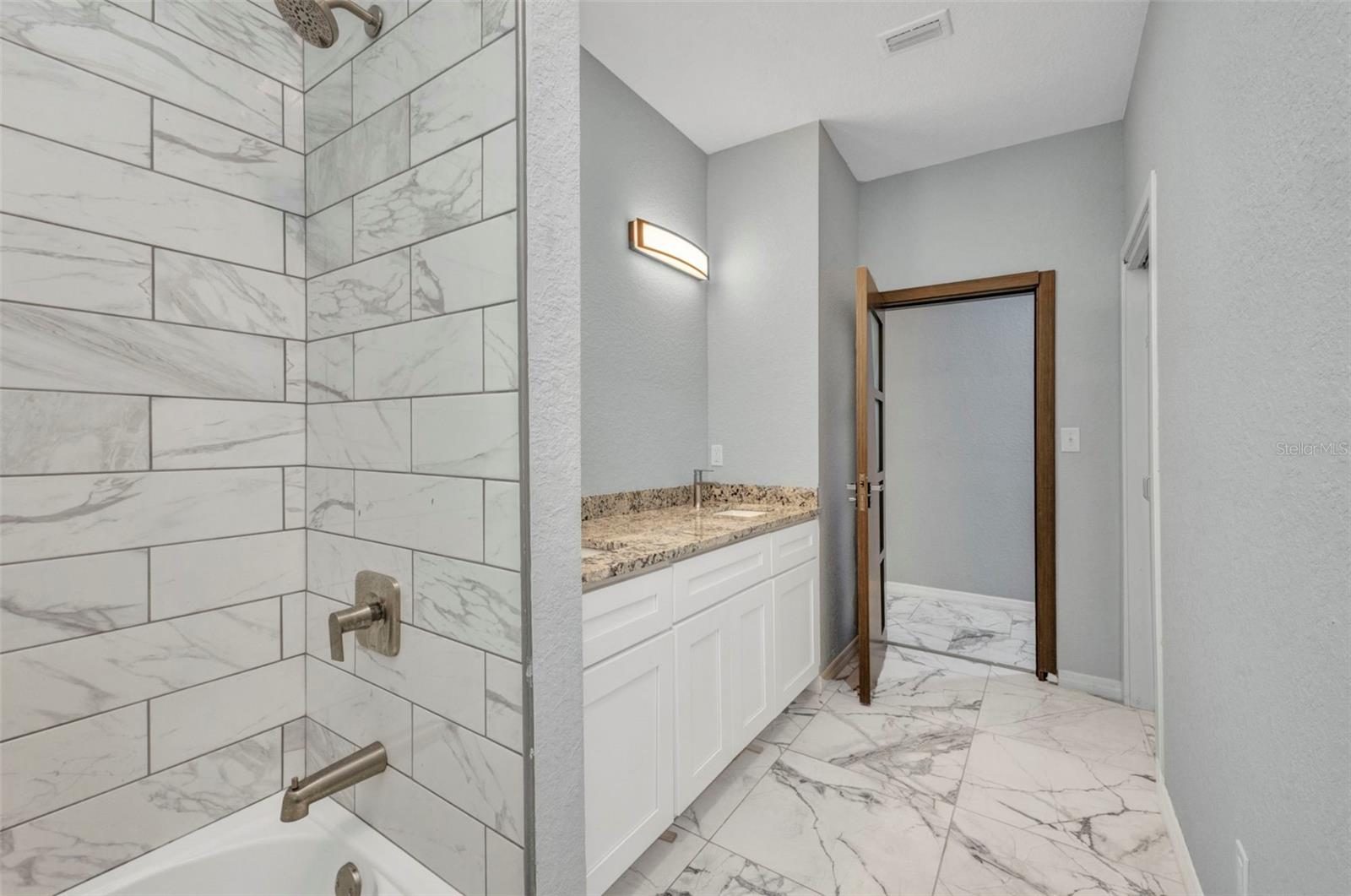 Beautifully Designed 3-Bedroom Home with Spacious Garage – Perfect for Your Truck or Boat! Step into comfort and style in this tastefully designed 3-bedroom, 2-bathroom home that checks all the boxes. From the moment you walk in, you'll notice the upgraded modern interior doors with glass inserts, adding a touch of elegance and natural light throughout the living spaces. Home also has hurricane impact windows throughout. The open-concept layout features gorgeous tile and vinyl flooring throughout, paired with granite countertops and stainless steel appliances in a well-appointed kitchen—perfect for cooking and entertaining. Retreat to the expansive master suite featuring a large bedroom, dual vanities, a luxurious stand-alone soaking tub, and a spacious walk-in shower. Vehicle and outdoor enthusiasts will love the oversized 2-car garage—25 feet deep with a 10-foot high garage door—ideal for trucks, boats, or extra storage. The nearly 300 sq. ft. covered lanai offers a perfect space for relaxing or entertaining guests year-round. With public water and sewer, this home offers both convenience and modern living in one beautiful package. Don't miss your opportunity to own this stunning, move-in-ready home!