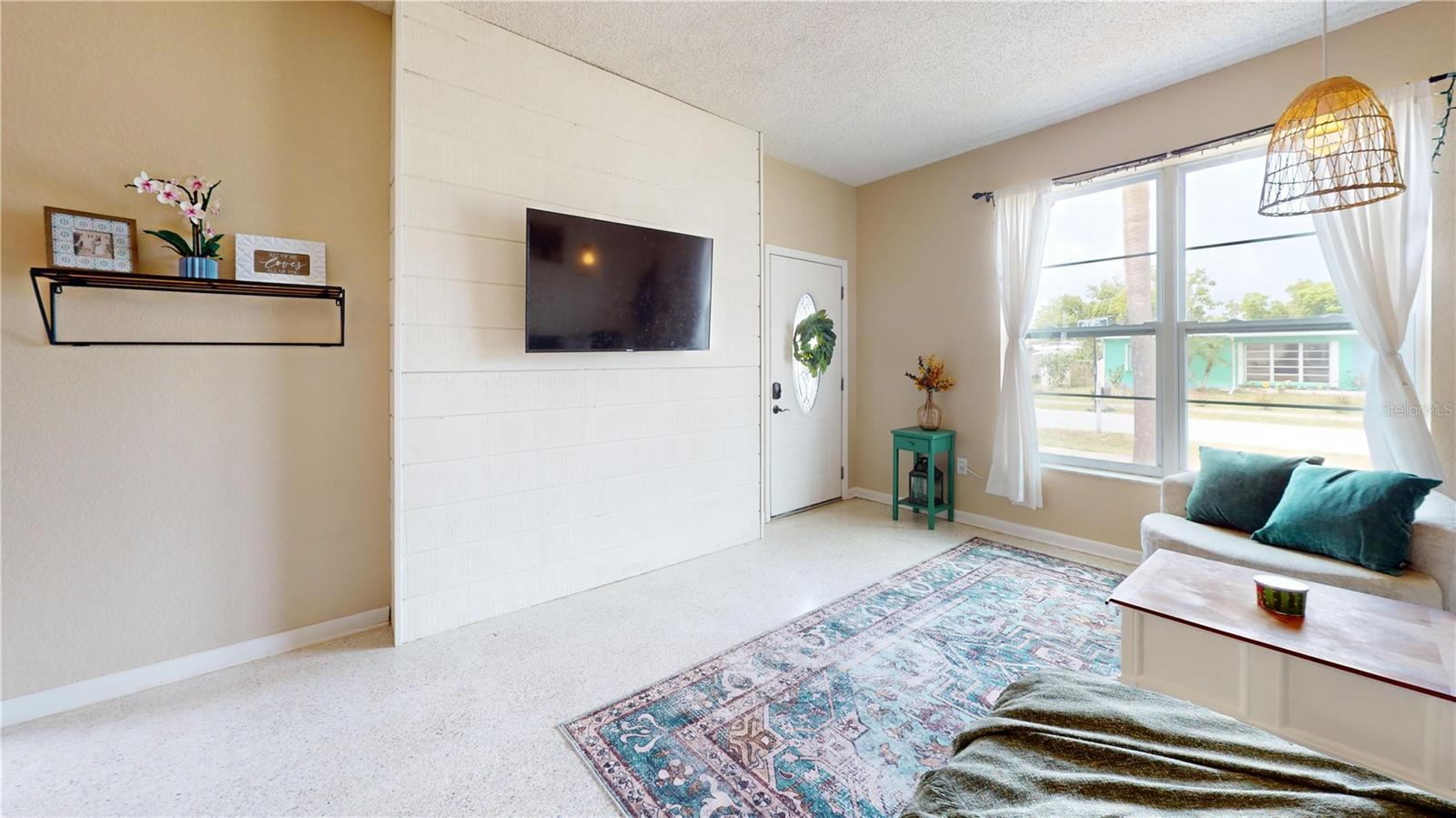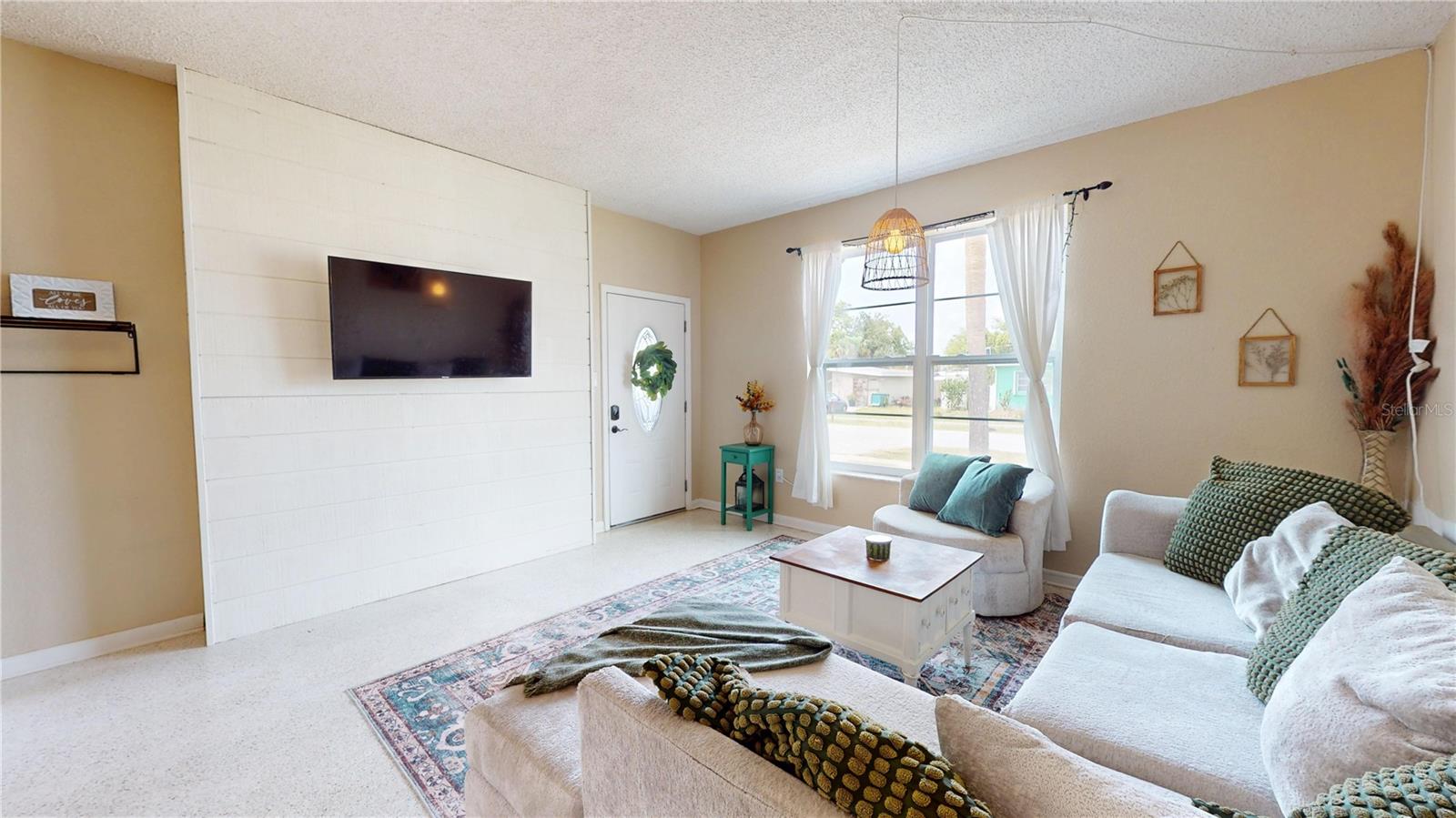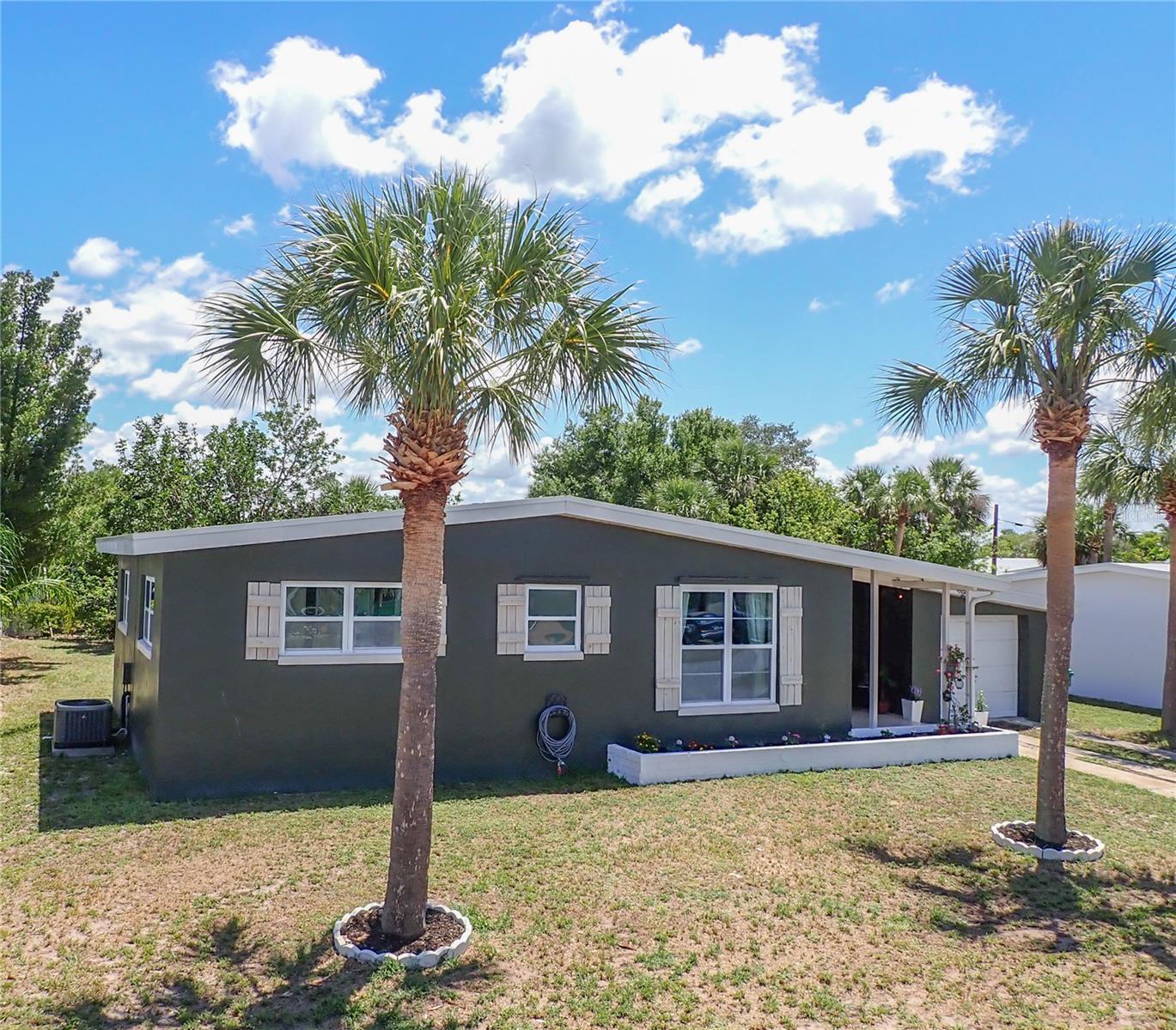 CHECK OUT THE 3D INTERACTIVE VIRTUAL TOUR!!! Welcome to your dream home in the heart of Port Charlotte! This beautifully maintained mid-century modern residence offers a perfect blend of timeless style and modern updates, all nestled in a friendly, vibrant community. This home features 2 bedrooms, 1 bathroom, 962 sq ft of thoughtfully designed living space. Elegant terrazzo floors flow throughout, complemented by a custom ship lap feature wall in the living room, creating a warm and inviting atmosphere. The kitchen has been recently remodeled with stone countertops, brand new cabinets, stainless steel appliances, and a brand new microwave — a cook’s delight! The bathroom has been tastefully renovated with a stunning tiled shower, brick veneer basin, rainfall showerhead, and multiple wall sprayers for a spa-like experience. The bedrooms are bright, airy, and spacious, perfect for relaxation and restful nights. Detached 1 car garage with washer and dryer hookups included. Recent updates include impact windows for storm protection and peace of mind; new roof installed in 2021; brand new AC system in 2023. There is a covered breezeway—ideal for entertaining guests or enjoying Florida’s beautiful weather. Whether you're looking for a cozy primary residence or a charming getaway, this Port Charlotte beauty combines modern comfort with mid-century charm. Don’t miss your chance to own this exceptional home! Schedule your showing today and experience this wonderful property.