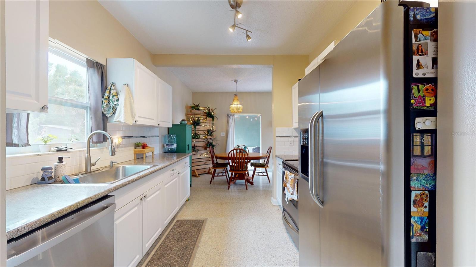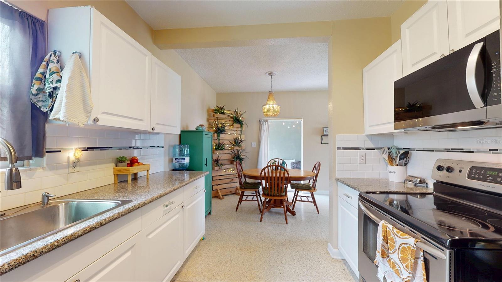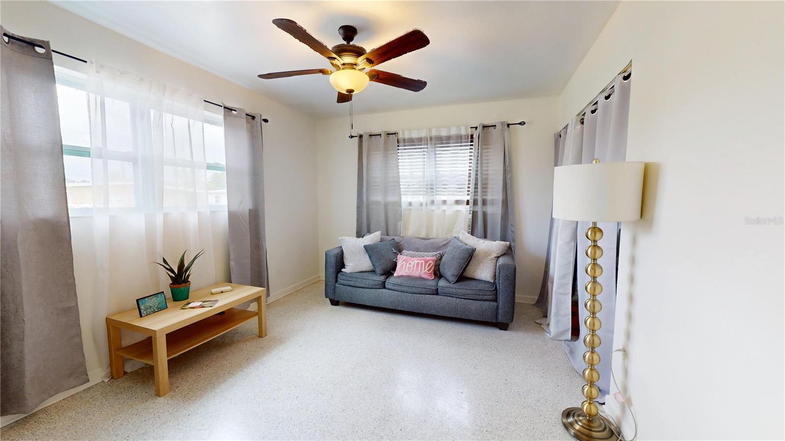 CHECK OUT THE 3D INTERACTIVE VIRTUAL TOUR!!! Welcome to your dream home in the heart of Port Charlotte! This beautifully maintained mid-century modern residence offers a perfect blend of timeless style and modern updates, all nestled in a friendly, vibrant community. This home features 2 bedrooms, 1 bathroom, 962 sq ft of thoughtfully designed living space. Elegant terrazzo floors flow throughout, complemented by a custom ship lap feature wall in the living room, creating a warm and inviting atmosphere. The kitchen has been recently remodeled with stone countertops, brand new cabinets, stainless steel appliances, and a brand new microwave — a cook’s delight! The bathroom has been tastefully renovated with a stunning tiled shower, brick veneer basin, rainfall showerhead, and multiple wall sprayers for a spa-like experience. The bedrooms are bright, airy, and spacious, perfect for relaxation and restful nights. Detached 1 car garage with washer and dryer hookups included. Recent updates include impact windows for storm protection and peace of mind; new roof installed in 2021; brand new AC system in 2023. There is a covered breezeway—ideal for entertaining guests or enjoying Florida’s beautiful weather. Whether you're looking for a cozy primary residence or a charming getaway, this Port Charlotte beauty combines modern comfort with mid-century charm. Don’t miss your chance to own this exceptional home! Schedule your showing today and experience this wonderful property.