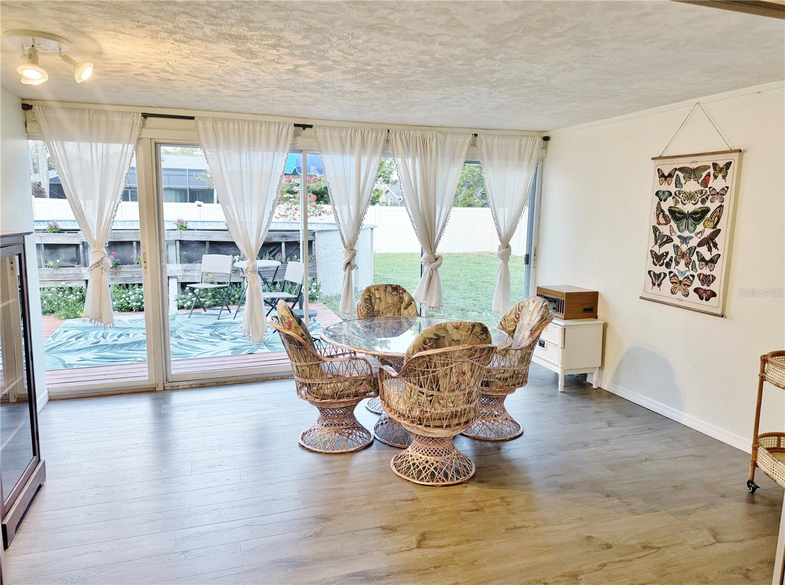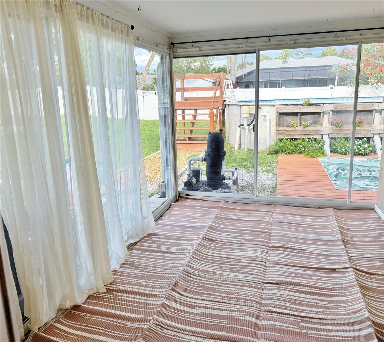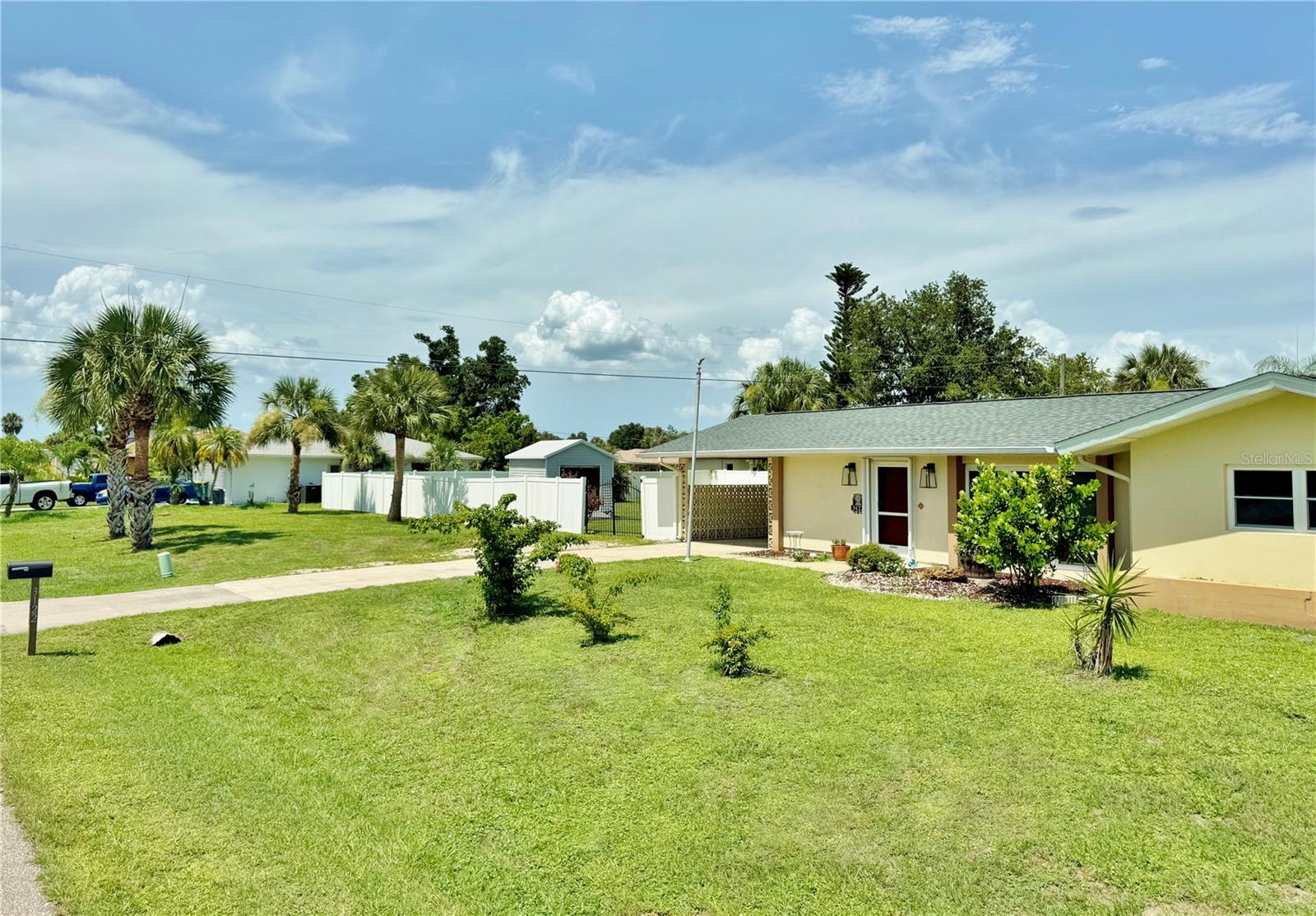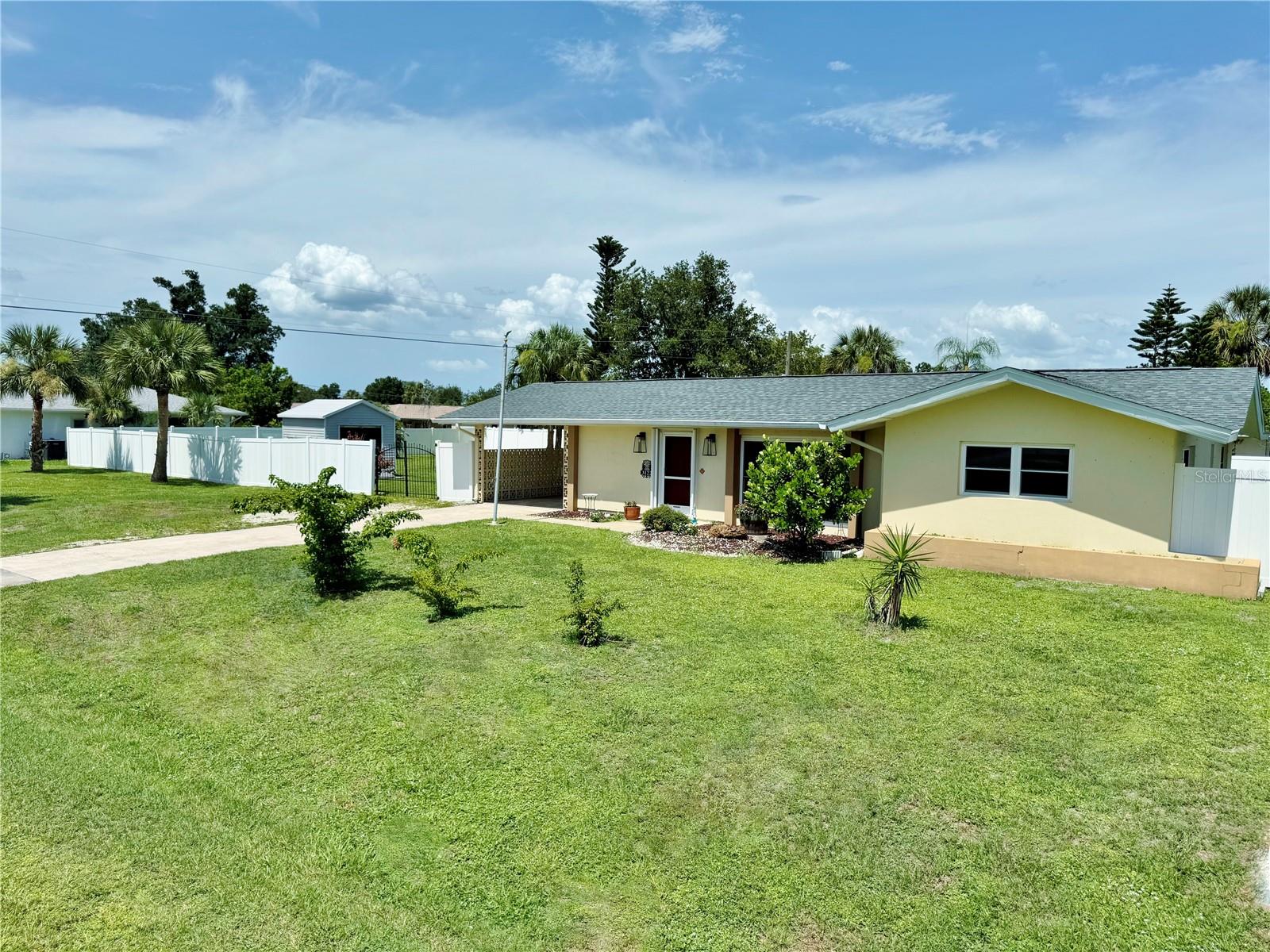 Double lot. No flood zone. Public water and sewer. No HOA. This is the one you have been waiting for! This spacious two-bedroom, two-bath pool home sits on a fully fenced double lot with room for your boat, RV, pets, and all your backyard toys—plus plenty of space left to garden, entertain, or simply unwind in the pool. Ideally located just minutes from shopping, dining, and everyday conveniences, yet tucked away enough to feel like your own private retreat. Inside, a bright, open floor plan welcomes you with tile flooring throughout. The large great room flows into an updated kitchen featuring stainless steel appliances, a breakfast bar island, and ample cabinet space. A versatile bonus room opens to the pool area through sliding glass doors, while the air-conditioned Florida room offers the perfect spot for a home office, hobby space, or peaceful getaway.. All appliances, including the washer and dryer, convey. Major updates include a new roof (2023), A/C system (2021), and a detached shed (2023). Double lot and located outside the flood zone—no flood insurance required. A rare find offering this much space, this many updates, and this level of convenience. Move-in ready and full of value. Do not miss it. Schedule your private tour today!