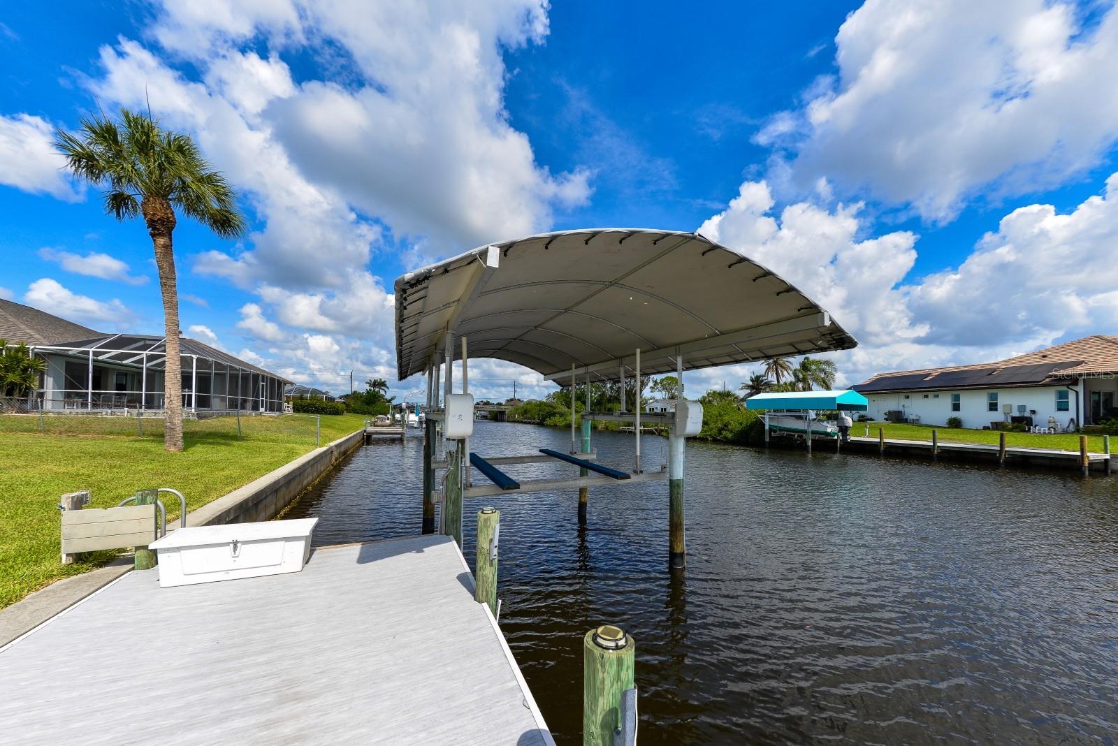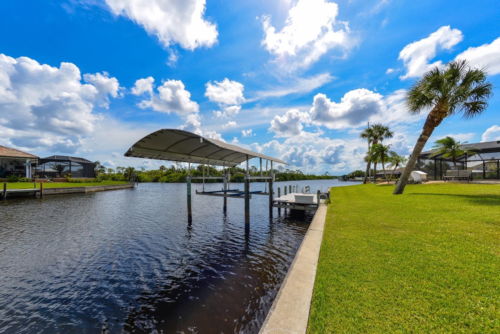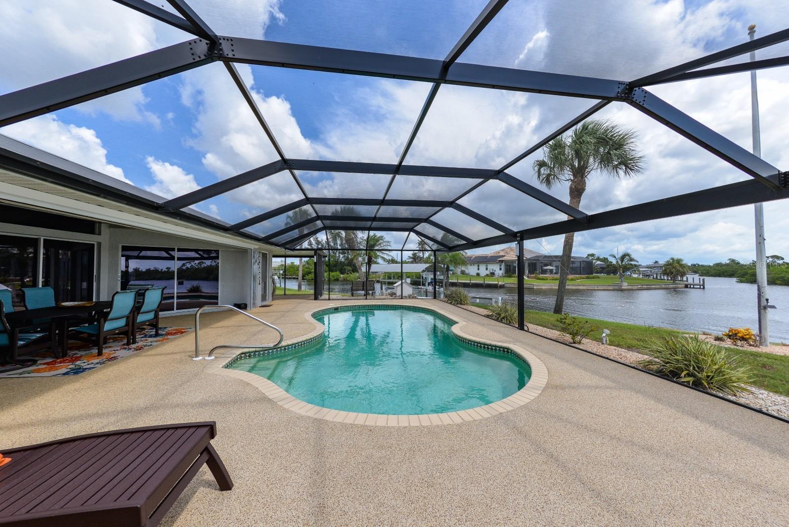 Discover the ultimate in waterfront living with this exquisitely remodeled pool home, perfectly situated on ONE OF THE MOST COVETED TIP LOTS IN THE AREA. Enjoy unmatched privacy with an expansive 216 FEET OF WATERFRONT and NO NEIGHBORS ACROSS THE CANAL—JUST SERENE, NON-BUILDABLE LAND FOR UNOBSTRUCTED VIEWS AND TRANQUILITY. ALL THIS, JUST 3 MINUTES TO OPEN WATER WITH NO BRIDGES! Wake up to breathtaking sunrises and soak in beautiful water views from nearly every room. FURNITURE IS INCLUDED—MOVE RIGHT IN AND START LIVING THE DREAM! Step inside to a bright, open-concept great room with a split-bedroom floor plan, ideal for entertaining and everyday comfort. The brand-new, state-of-the-art center island kitchen features luxurious quartz counters, custom wood cabinetry, and top-of-the-line appliances—including a Sub-Zero refrigerator, wine cooler, induction range, double convection ovens, and more. Enjoy new porcelain tile plank flooring throughout the main living areas. Remodeled guest suites, one ensuite and the other with custom murphy bed. Plantation shutters add elegance to the formal dining room and primary suite, which boasts a huge walk-in closet and a spa-inspired en-suite bath with dual quartz vanities, a designer soaking tub, a large walk-in shower with rainmaker head, and a private water closet. This home is loaded with upgrades: • NEW LANDSCAPING AND RESURFACED POOL DECK/LANAI WITH ELECTRIC ROLL DOWN SHUTTERS • NEW POOL CAGE, VARIABLE SPEED PUMP, AND FILTER • ALUMINUM ROOF, HURRICANE SHUTTERS, AND WATER HEATER (ALL LESS THAN 3 YEARS OLD) • UPGRADED ELECTRIC PANEL AND SUB-PANEL • DOUBLE-PANE WINDOWS WITH SOLAR GLARE PROTECTION • OVERSIZED SIDE-LOAD GARAGE AND DRIVEWAY • 20X10 STORAGE SHED WITH ELECTRIC • SPRINKLER SYSTEM FED BY A 100’ DEEP WELL • 20X13 BOAT DOCK WITH A 10,000 LB. COVERED BOATLIFT THIS IS A RARE OPPORTUNITY TO OWN A TRULY EXCEPTIONAL HOME ON A PRIVATE, PREMIER LOT—SCHEDULE YOUR PRIVATE SHOWING TODAY AND EXPERIENCE THE BEST OF WATERFRONT LIVING! AREA INFO: The Port Charlotte area was VOTED #1 PLACE TO LIVE by CNN and MONEY magazine and featured in the TOP PLACES TO RETIRE in WHERE TO RETIRE magazine. Port Charlotte is located on the Gulf Coast of Southwest Florida, approximately 4 miles southwest of 1-75 off Exit 170 and features EASY ACCESS TO WORLD CLASS FISHING IN CHARLOTTE HARBOR AND THE GULF OF AMERICA. By sea, Port Charlotte is located on Charlotte Harbor about 30 minutes by powerboat from Port Boca Grande on the Gulf of America. There are more than 24 public and semi-private golf courses within the greater Port Charlotte/Punta Gorda area which is conveniently and quietly located approximately 50 miles south of Sarasota, 24 miles north of Fort Myers, 125 miles from Orlando and Disney World, approximately 45 minutes to the Southwest Florida International Airport, and less than 20 minutes to Punta Gorda Airport.