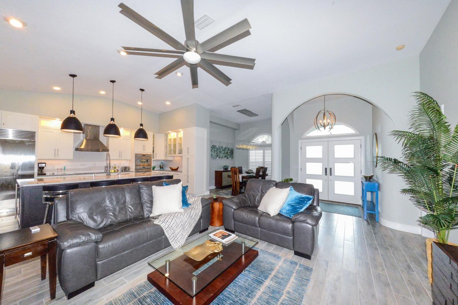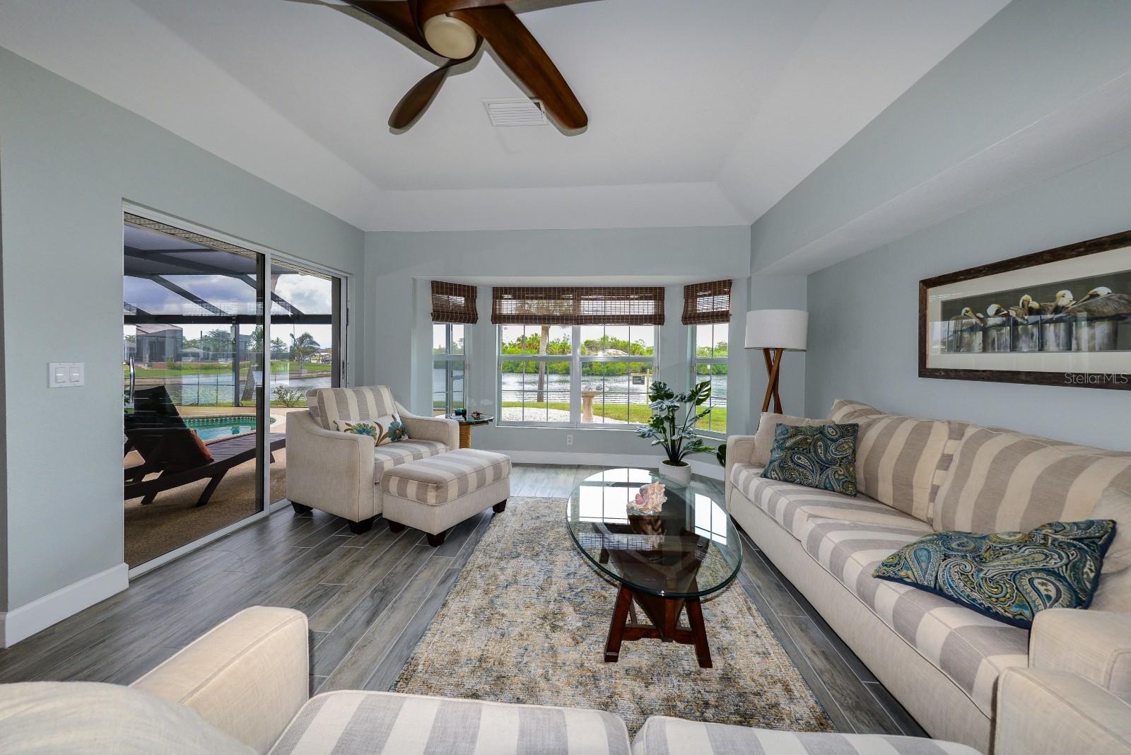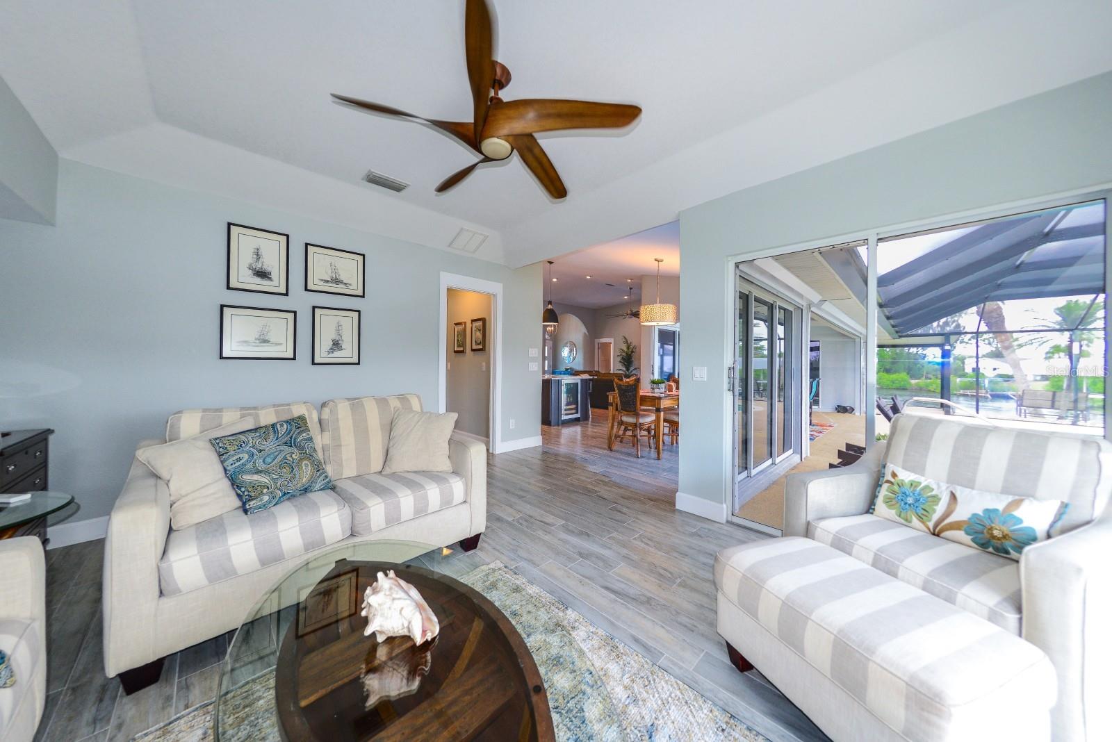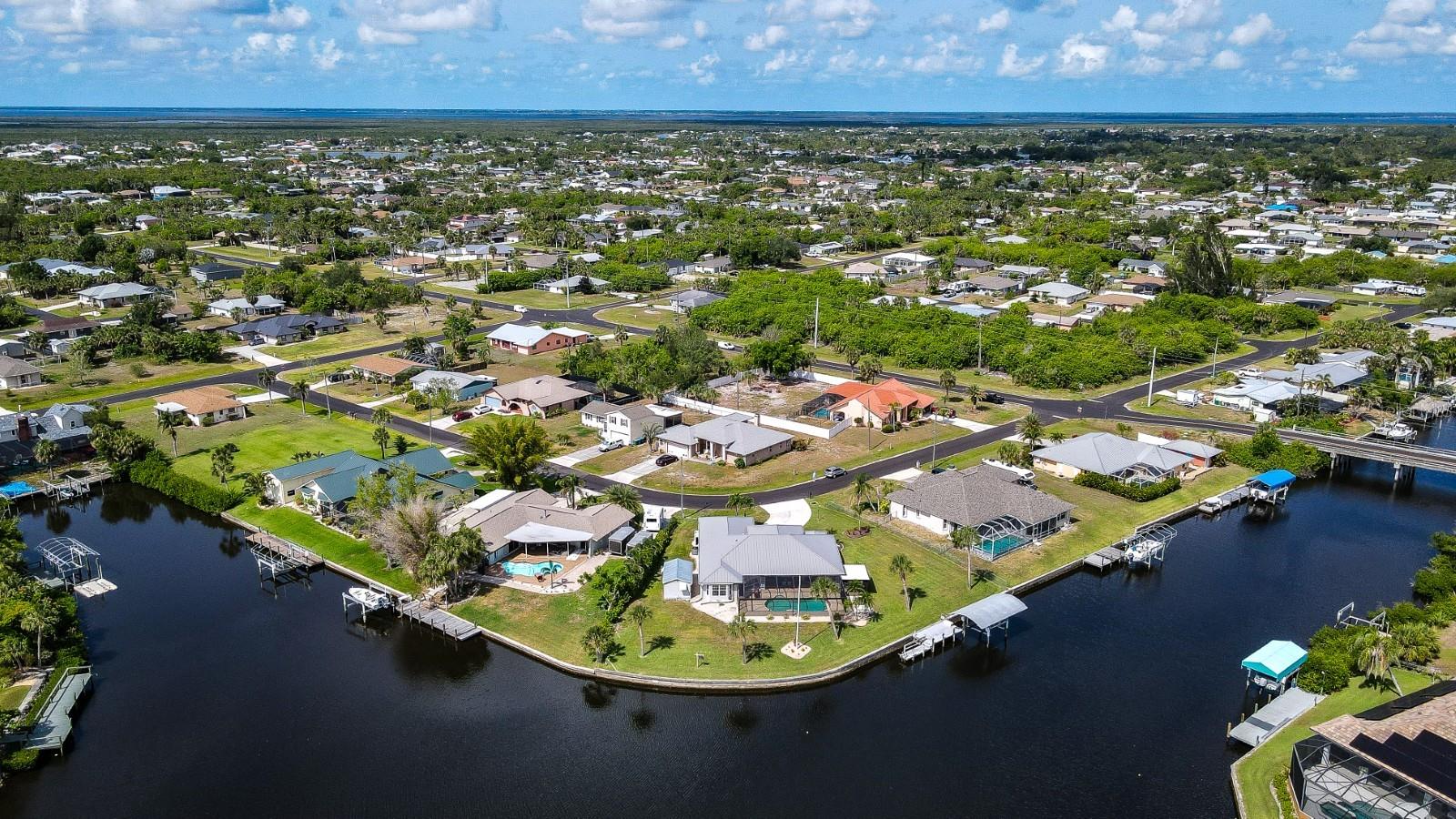 Discover the ultimate in waterfront living with this exquisitely remodeled pool home, perfectly situated on ONE OF THE MOST COVETED TIP LOTS IN THE AREA. Enjoy unmatched privacy with an expansive 216 FEET OF WATERFRONT and NO NEIGHBORS ACROSS THE CANAL—JUST SERENE, NON-BUILDABLE LAND FOR UNOBSTRUCTED VIEWS AND TRANQUILITY. ALL THIS, JUST 3 MINUTES TO OPEN WATER WITH NO BRIDGES! Wake up to breathtaking sunrises and soak in beautiful water views from nearly every room. FURNITURE IS INCLUDED—MOVE RIGHT IN AND START LIVING THE DREAM! Step inside to a bright, open-concept great room with a split-bedroom floor plan, ideal for entertaining and everyday comfort. The brand-new, state-of-the-art center island kitchen features luxurious quartz counters, custom wood cabinetry, and top-of-the-line appliances—including a Sub-Zero refrigerator, wine cooler, induction range, double convection ovens, and more. Enjoy new porcelain tile plank flooring throughout the main living areas. Remodeled guest suites, one ensuite and the other with custom murphy bed. Plantation shutters add elegance to the formal dining room and primary suite, which boasts a huge walk-in closet and a spa-inspired en-suite bath with dual quartz vanities, a designer soaking tub, a large walk-in shower with rainmaker head, and a private water closet. This home is loaded with upgrades: • NEW LANDSCAPING AND RESURFACED POOL DECK/LANAI WITH ELECTRIC ROLL DOWN SHUTTERS • NEW POOL CAGE, VARIABLE SPEED PUMP, AND FILTER • ALUMINUM ROOF, HURRICANE SHUTTERS, AND WATER HEATER (ALL LESS THAN 3 YEARS OLD) • UPGRADED ELECTRIC PANEL AND SUB-PANEL • DOUBLE-PANE WINDOWS WITH SOLAR GLARE PROTECTION • OVERSIZED SIDE-LOAD GARAGE AND DRIVEWAY • 20X10 STORAGE SHED WITH ELECTRIC • SPRINKLER SYSTEM FED BY A 100’ DEEP WELL • 20X13 BOAT DOCK WITH A 10,000 LB. COVERED BOATLIFT THIS IS A RARE OPPORTUNITY TO OWN A TRULY EXCEPTIONAL HOME ON A PRIVATE, PREMIER LOT—SCHEDULE YOUR PRIVATE SHOWING TODAY AND EXPERIENCE THE BEST OF WATERFRONT LIVING! AREA INFO: The Port Charlotte area was VOTED #1 PLACE TO LIVE by CNN and MONEY magazine and featured in the TOP PLACES TO RETIRE in WHERE TO RETIRE magazine. Port Charlotte is located on the Gulf Coast of Southwest Florida, approximately 4 miles southwest of 1-75 off Exit 170 and features EASY ACCESS TO WORLD CLASS FISHING IN CHARLOTTE HARBOR AND THE GULF OF AMERICA. By sea, Port Charlotte is located on Charlotte Harbor about 30 minutes by powerboat from Port Boca Grande on the Gulf of America. There are more than 24 public and semi-private golf courses within the greater Port Charlotte/Punta Gorda area which is conveniently and quietly located approximately 50 miles south of Sarasota, 24 miles north of Fort Myers, 125 miles from Orlando and Disney World, approximately 45 minutes to the Southwest Florida International Airport, and less than 20 minutes to Punta Gorda Airport.