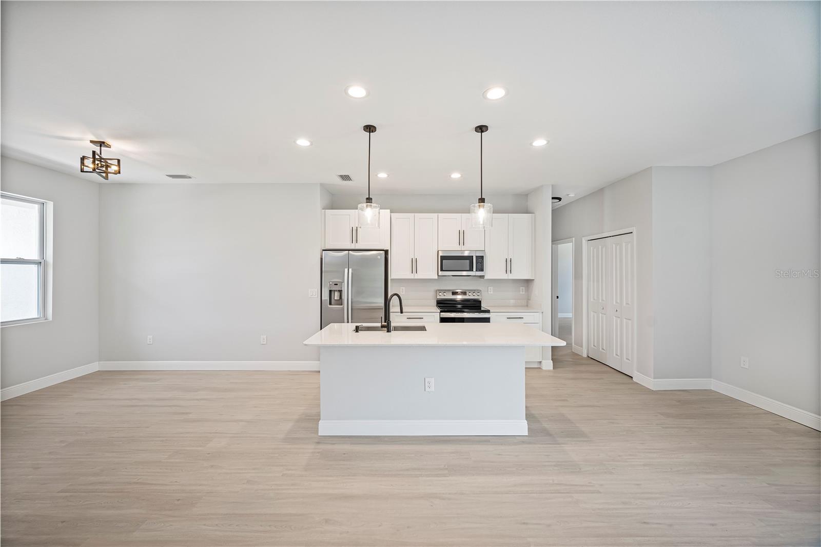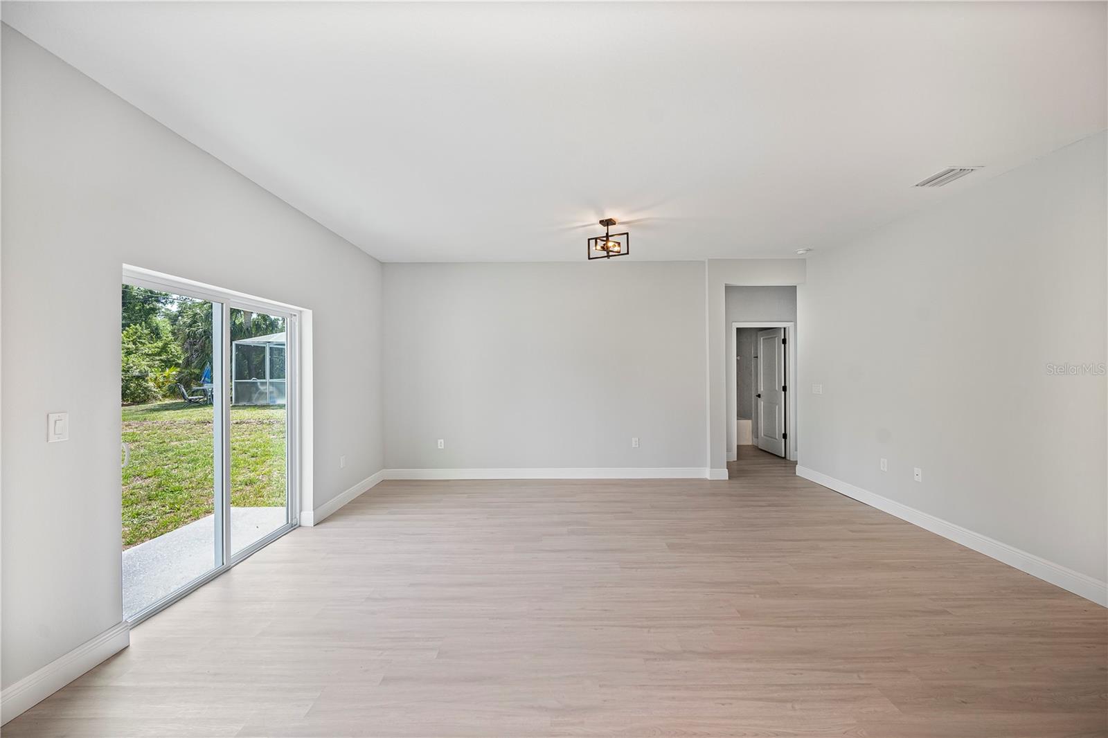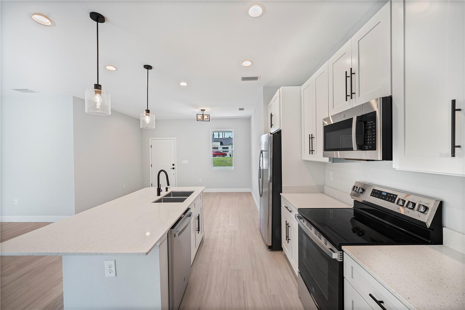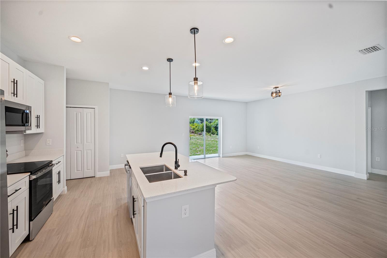 Welcome to your brand-new dream home! This beautifully crafted 4-bedroom, 2-bathroom residence offers a perfect blend of style and practicality in a peaceful neighborhood setting. From the moment you walk in, you'll appreciate the open-concept layout, filled with natural light and modern finishes throughout. The kitchen is a showstopper—featuring gleaming granite countertops, stainless steel appliances, plenty of cabinet space, and elegant pendant lighting over a spacious island, perfect for entertaining or family meals. The adjacent dining and living areas offer seamless flow, ideal for both everyday living and hosting guests. Each bedroom is generously sized, with luxury vinyl plank flooring running throughout for a cohesive, high-end feel. The bathrooms are designed with care—boasting modern tile work, quality hardware, and a spa-like atmosphere. The oversized laundry room offers added convenience, and the epoxied garage floors provide both durability and style. Sliding glass doors lead out to a private outdoor area ready for your finishing touches. Situated in a quiet and well-located neighborhood, this home offers easy access to schools, shopping, and main roadways while still maintaining a sense of retreat. Don’t miss your chance to own this exceptional new home—schedule your private showing today!