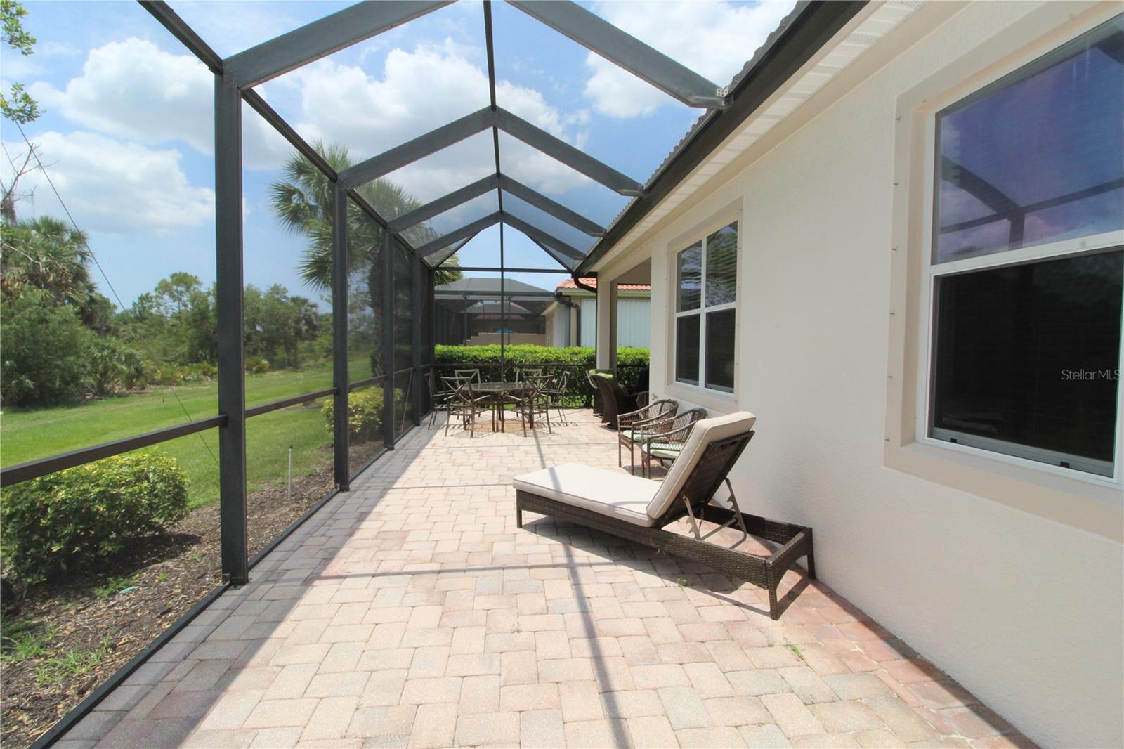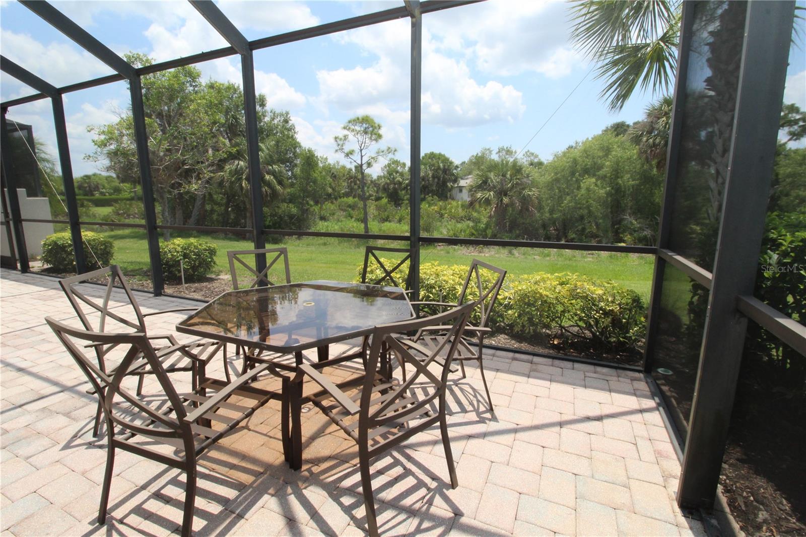 Welcome to Paradise!! Time to Start Living the Florida Lifestyle Now in one of the most sought after Gated Golf Communities in Charlotte County. Riverwood Deed Restricted Golf Community features a Par 72 Championship Golf Course rated consistently as one of the top course in Florida and Nationwide with a 4.5 star rating from Golf Digest. The course is open to the public and available for membership. This Beautifully Furnished 2 Bedroom, 2 Bath, Den/Office, 2 Car Garage Villa features an extended screened covered lanai looking out to the private preserve with scenic views to enjoy the wildlife. Maintenance free living. Features: Open floor plan, spacious living room with sliding glass doors leading out to your private lanai, Den with solid French doors that can be used as an office, kitchen has gorgeous granite countertops with lots of prep area for cooking, stainless steel appliances, breakfast bar, plenty of wood cabinets for storage, pantry closet and beautiful tile flooring throughout the main areas.... Dining room off kitchen overlooks out back to the lanai. Paver driveway and walkway as well as pavers in the extended lanai. Primary Bedroom is spacious with walk-in closet. Pocket door leads into the primary bathroom feature a glass enclosed walk-in shower beautifully tiled, garden tub and dual sinks with plenty of drawers for storage. Hallway linen closet. Bedroom #2 is nice size. Guest bathroom has tub/shower with nice tile walls and one sink long vanity for storage. Inside laundry room with built in cabinets above the washer & dryer. Oversized 2 Car Garage. A/C 2019, irrigation, water, sewer, hurricane shutters. Riverwood Community provides Resort-Style Amenities including: State-of-art fitness center, Huge sparkling resort style swimming pool with lap section and separate spa, pickleball & tennis courts, bocce ball, lawn croquet, two dog parks (one for small dogs and one for bigger dogs), Arts & Crafts, scheduled social activities with in house director, library, game room, restaurant, tiki bar and more...... The Riverwood Private Beach Club is located on Manasota Key in Englewood, has private parking, grills, pavilion, restrooms & showers but is currently on wait list and has separate membership fee. Great Community!! Great Location!! Great Price!! Great Curb Appeal!! Start Living the Florida Lifestyle Now!! Nearby restaurants, shopping, fishing, golfing, beaches and more..... Make appointment for your private showing today before this slice of Paradise is gone.