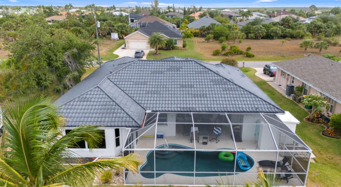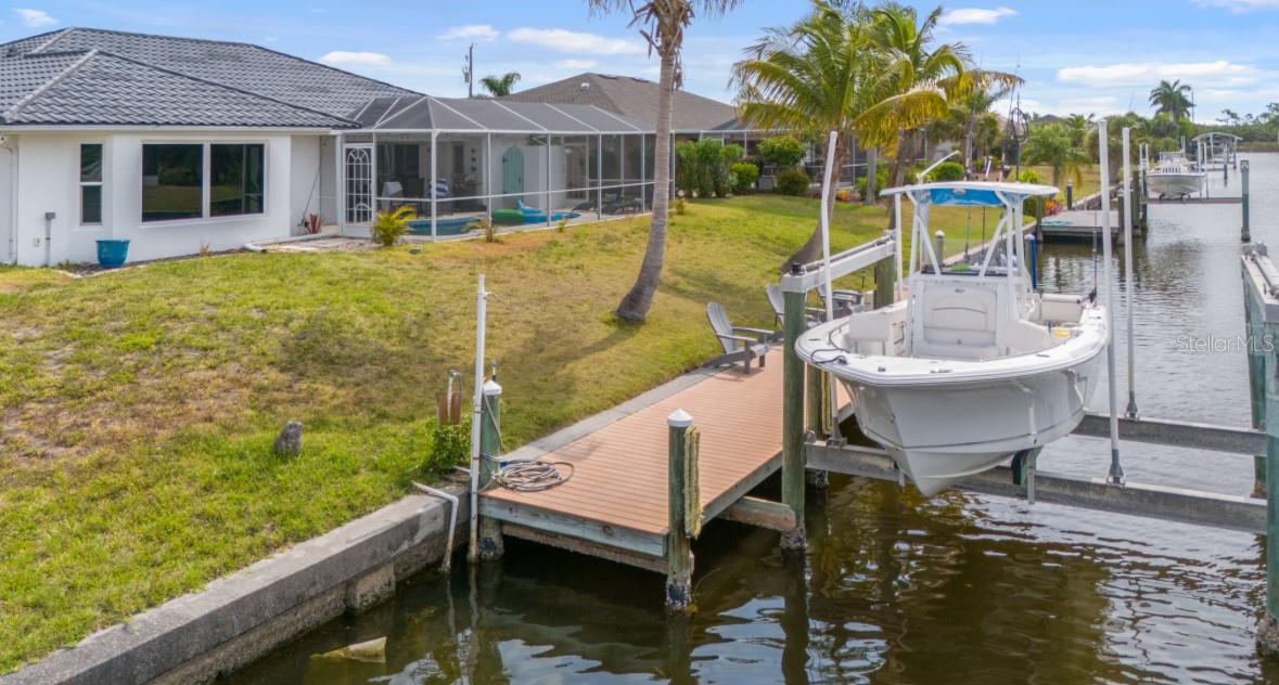 They don't make them like this anymore! This waterfront/pool gem is high, dry, solid and undamaged from last 3 hurricanes. The home has had many upgrades in past few years including pool resurfacing, oversized new composite dock, new HVAC, bathroom renovations, flooring updates, interior and exterior painting, landscaping, boat lift repair, new dishwasher and refrigerator, new hot water heater. The barrell metal roof is rated for maximal hurricane winds. One of the best features is that the entire living space is flooded with natural light and 4 high end hurricane impact resistant sliders to the pool and linnai area. The water views are spectacular from every angle. The home's open concept, soaring cathedral ceilings and split plan provides privacy and comfort with the master en suite on one end and the two other bedrooms and bathroom on the other end. The pool has its own half bath to keep the water out of the house. In addition to public parks and boat launches, the south gulf cove community is accessible with miles of paths for golf carting, walking and biking. There is an optional HOA for a minimal yearly fee that promotes community clubhouse activities and events. The boating community of South Gulf Cove encompasses 55 miles of canals, a lock leading to Charlotte Harbor and the Gulf of America. This location is highly desirable and accessible to world renowned tarpon fishing and pristine beaches on Boca Grande, the great tiki vibe and endless beaches of Manasota Key and Englewood, and historic downtown, restaurants and Fisherman's Villiage shopping in Punta Gorda. There are also the hidden gems accessible by boat like private beaches on Cayo Costa or a jaunt to Cabbage Key to meet the resident tortuses and have lunch with locals. The Punta Gorda and Fort Myers airports are within an hour, making it an easy visit for family and friends. Be ready to face hard decisions living the southwest Florda lifestyle in paradise....so many places to boat, beach, fish to catch, dolphines to play with, places to pull up for cocktails and dinner, local golf courses to check out, and adventures to be had...decisions, decisions!