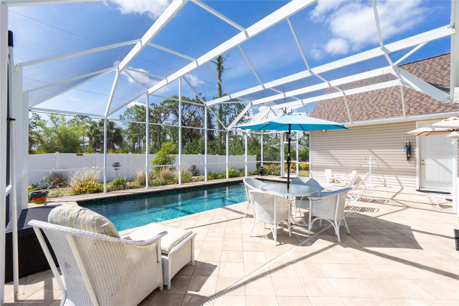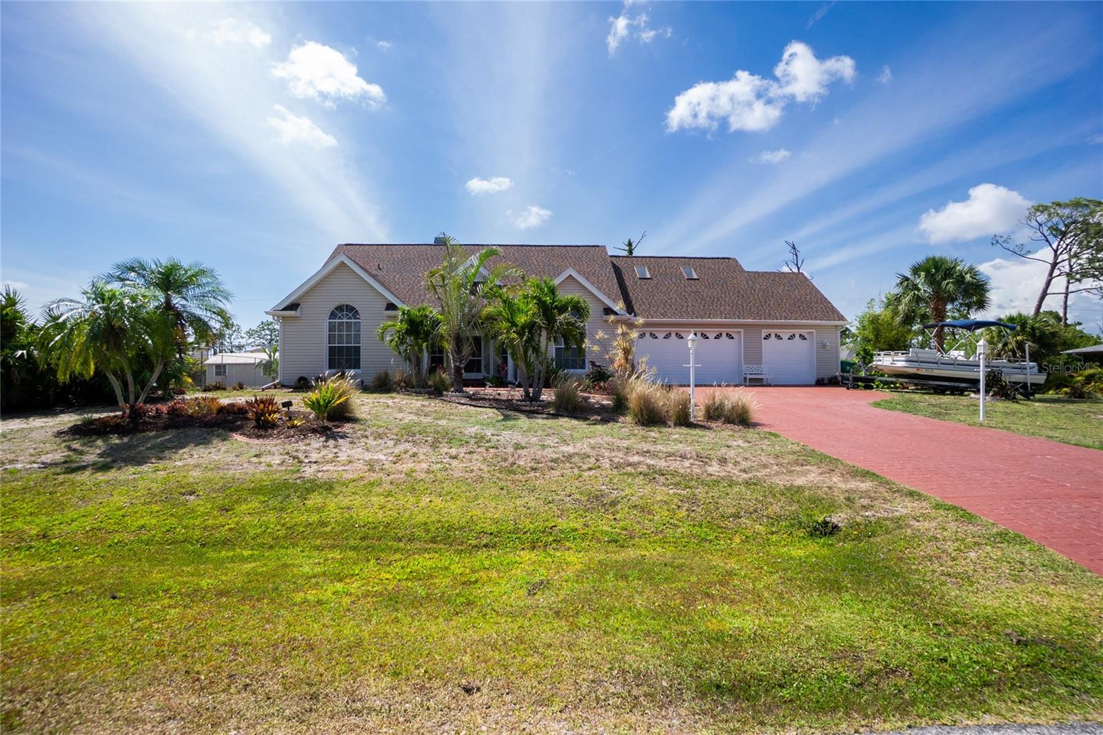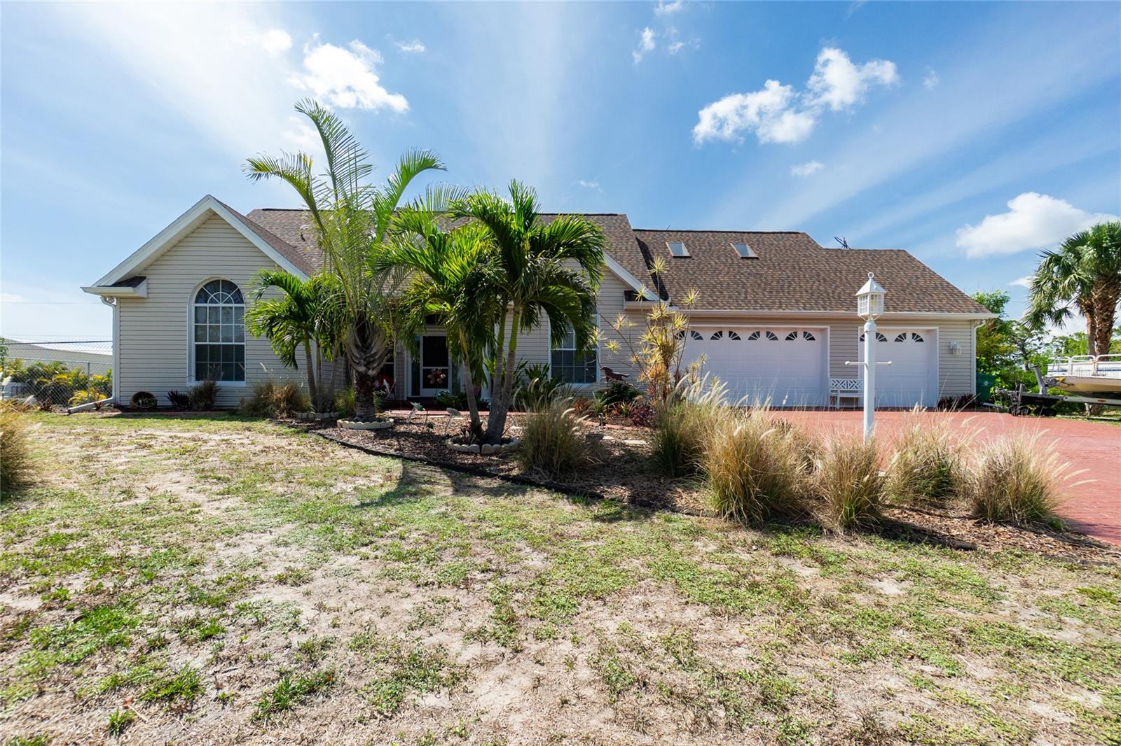 Discover your dream home in the picturesque riverfront community of Gulf Cove! Experience the best of Florida living in this exceptional pool home. Situated on a triple lot, this property offers endless possibilities! The home itself has been extensively updated, so you can move right in and enjoy. Recent improvements include a 2021 roof, a 2021 HVAC system, a newer pool heater, 2025 propane generator for Florida weather, Alcoa vinyl siding on the block structure and hot water heater. Step through the front door to the foyer of this home and find vaulted ceilings, a combination of travertine and tile flooring making maintenance a breeze. A centrally designed kitchen overlooks the great room, with vaulted ceiling, working fireplace and wired for surround sound. The great room has access out to your caged pool area. The exterior features an inground gunite pool built in 2016 with sun-cindishelf and with a heater. The home also offers a split floor plan, beautiful tall tray-ceilings, a private well for irragation, and a 3-car garage. You will be able to enjoy and entertain guest, in this quiet neighborhood. Gulf Cove residents can join the voluntary HOA for access to a private park with playgrounds, pavilions, riverfront seating, and a boat ramp that leads to Charlotte Harbor and the Gulf of Mexico