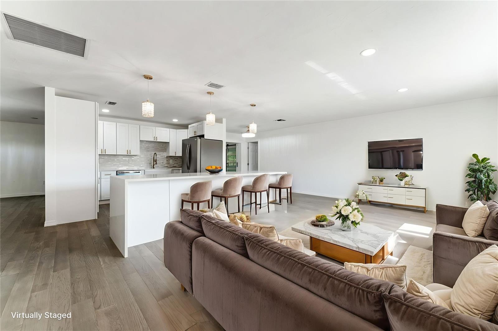 This exceptional 3-bedroom, 2.5-bathroom home, plus a bonus room, is located in one of Port Charlotte's most desirable areas. Completely renovated from top to bottom, this home features brand-new finishes throughout, including engineered hardwood floors, modern light fixtures, and state-of-the-art ceiling fans. The chef’s kitchen is a dream, with a large 10-foot island, quartz countertops with a waterfall, stainless steel appliances, and plenty of cabinet space for storage. All bathrooms have been updated with quartz and granite vanities, new tiling, and luxurious finishes. The home is equipped with a new roof, newer septic system (installed in 2021), a newer water heater (2020), central AC (2014), and a new wall AC unit, ensuring peace of mind for years to come. The spacious layout includes three bedrooms, three bathrooms (two full and one half), and a versatile bonus room that can serve as an office, nursery, or any space you need. Outside, the property offers a private patio pad with a new fire pit and stunning canal views, making it the perfect spot for relaxation. Beautiful landscaping with ambient lighting adds to the charm, allowing you to enjoy the backyard day or night. New fiberglass exterior doors, updated windows (some), and interior doors, including modern barn doors, contribute to the home’s sleek, contemporary aesthetic. Both the interior and exterior have been freshly painted, providing a bright and welcoming atmosphere throughout. The newly painted two-car garage is equipped with a new garage door opener for added convenience. Additional upgrades include all-new appliances, including a washer and dryer, new light fixtures, and so much more. Located in an extremely desirable area, this home is not in a flood zone and offers easy access shopping, restaurants, and I-75. Whether you're looking to relax by the water, shop, or explore all that Port Charlotte and the surrounding areas has for you and your family, this home is ideally situated for your lifestyle. Don’t miss the opportunity to own this beautifully remodeled home with water views – schedule your private showing today! Some pictures are digitally staged for your viewing.