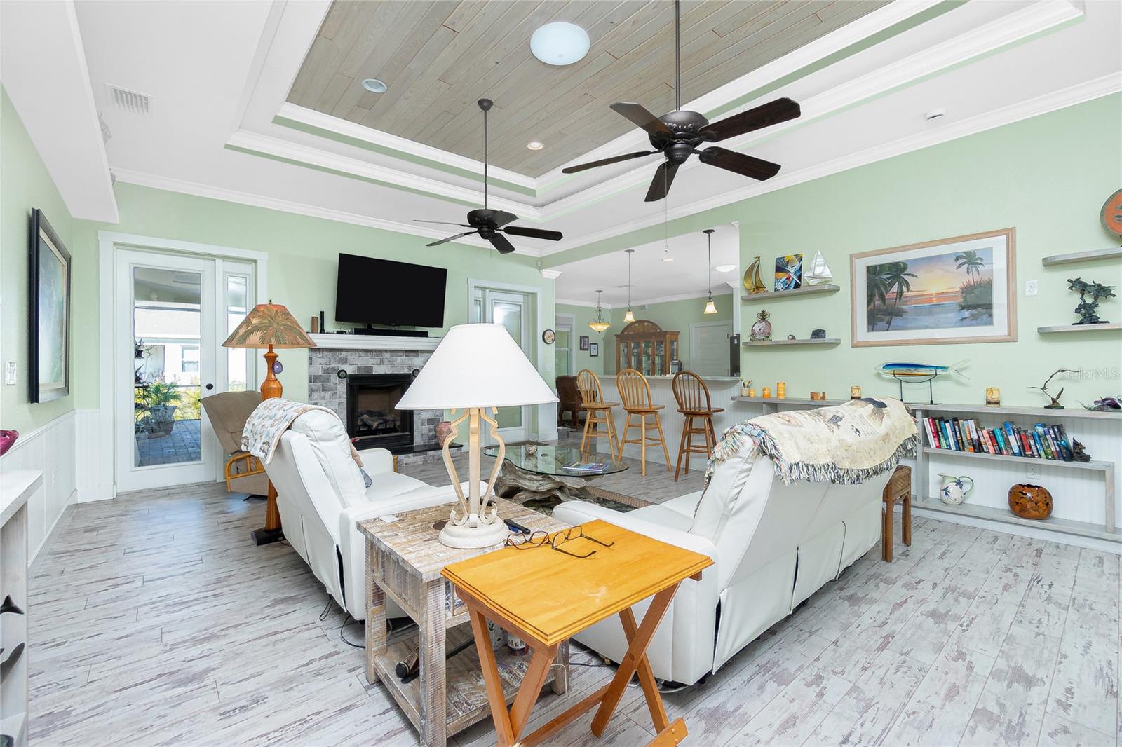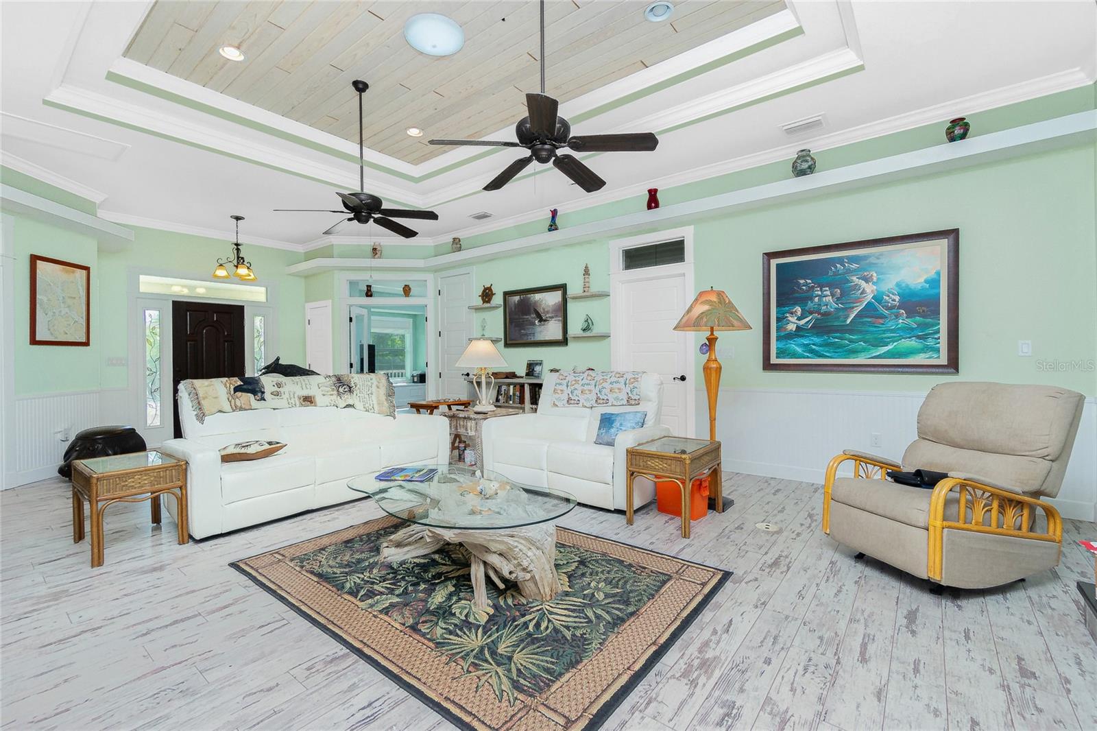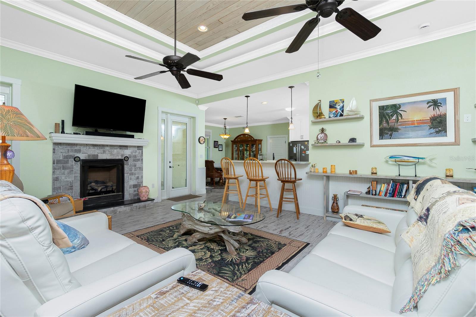 Health reasons force sale, and short term seller financing is possible! From the moment you step onto the expansive screened front porch and through the impressive tall, transomed front door, the exceptional quality of this residence is immediately apparent. The generously sized great room is a focal point, featuring a sophisticated tray ceiling, a tubular skylight for natural illumination, and a built-in gas fireplace – perfect for creating a warm ambiance. This central living space flows seamlessly into a truly fabulous kitchen and a substantial dining room. The dining room, elegantly finished with bead board and topped with crown molding, provides a refined setting for meals. The kitchen is a chef's delight, boasting Shaker ceiling-high cabinets equipped with convenient rollouts, a central island for ample workspace, a gas range with a stylish hood, and a classic farm-house sink. The countertops and breakfast bar are adorned with exquisite granite, featuring an captivating ocean-like pattern, complemented by a tiled glass backsplash that adds a touch of modern elegance. The well-appointed laundry area includes both a gas dryer and electric washer, along with practical cabinets and hanging rods. The master bedroom is a private retreat, showcasing a tray ceiling pre-wired for custom lighting, a spacious walk-in closet, and a luxurious en suite bathroom. The master bath is designed for relaxation and rejuvenation, featuring a walk-in shower with a rain-head and side jets, a large double-sink vanity, and a generous linen closet. The second bedroom offers a charming window seat – an ideal spot for quiet reading or simply unwinding. The third bedroom, currently utilized as a functional office, is lined with ample shelving, features elegant French doors opening to the front patio, and also includes a delightful window seat. The truly massive, screen-enclosed patio is an entertainer's dream. It is thoughtfully plumbed for the addition of an outdoor kitchen, boasts a sophisticated tongue and groove ceiling, and is beautifully surfaced with paver stones. Paver stones also grace the long, gracefully curved driveway, leading to the impressive garage. The three-car garage, a significant and valuable asset not included in the main square footage, is fully finished and insulated. It provides extensive storage with cabinets and a sink, as well as a superb dedicated office space. Furthermore, a separate area within the garage is perfect for storing bikes or even a boat. This home is designed for comfort and efficiency, featuring super insulation that contributes to remarkably low electric bills. The fenced-in yard is a fantastic amenity for your beloved canine companion, offering a secure space to roam. A convenient doggie door even allows them independent access to the outdoors. Beyond these highlights, this home offers a multitude of other exceptional features that demand in-person discovery. Its prime, close-to-everything location further enhances the overall desirability of this truly amazing property. Do not let this opportunity pass to experience living in Paradise!