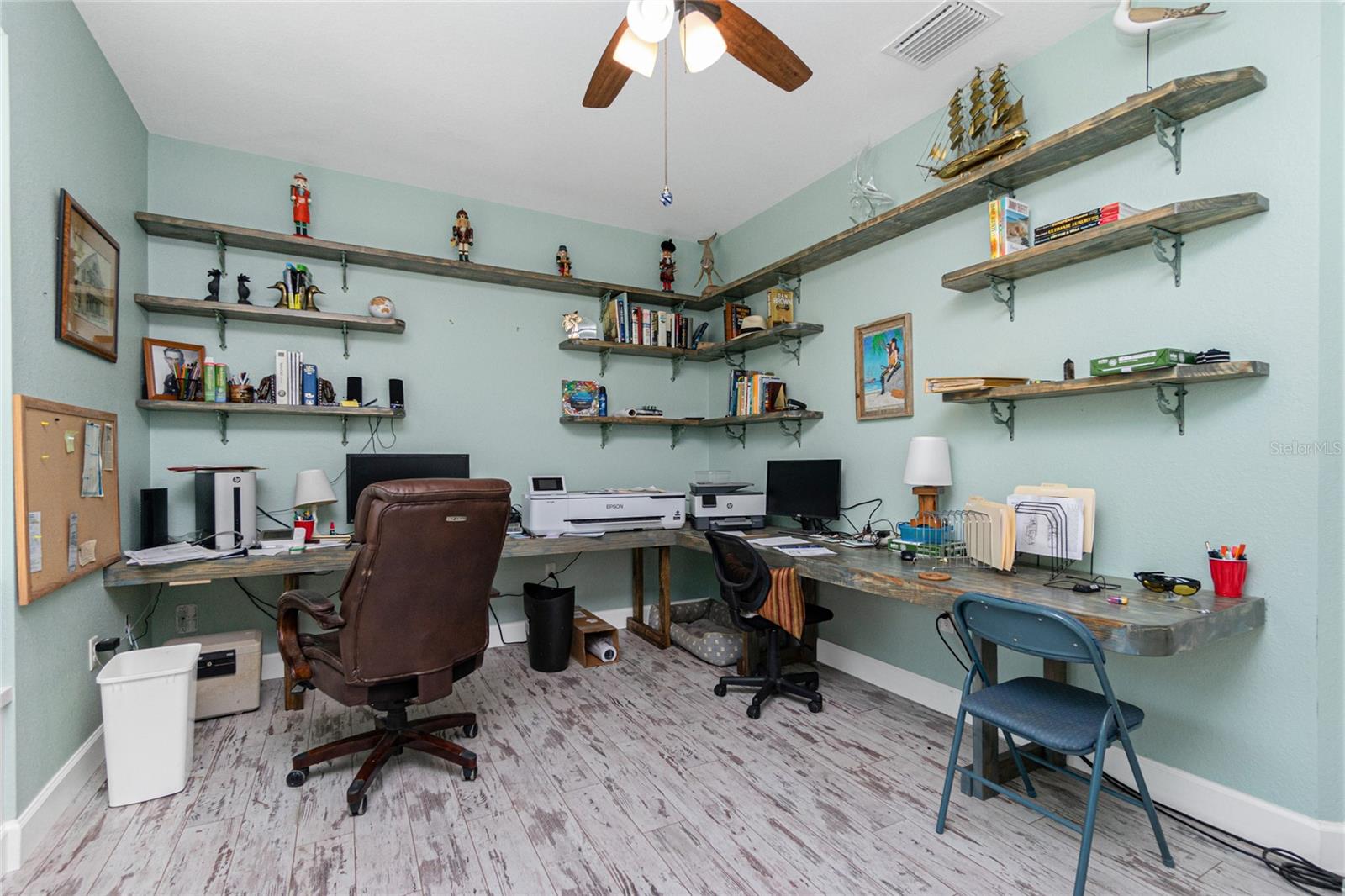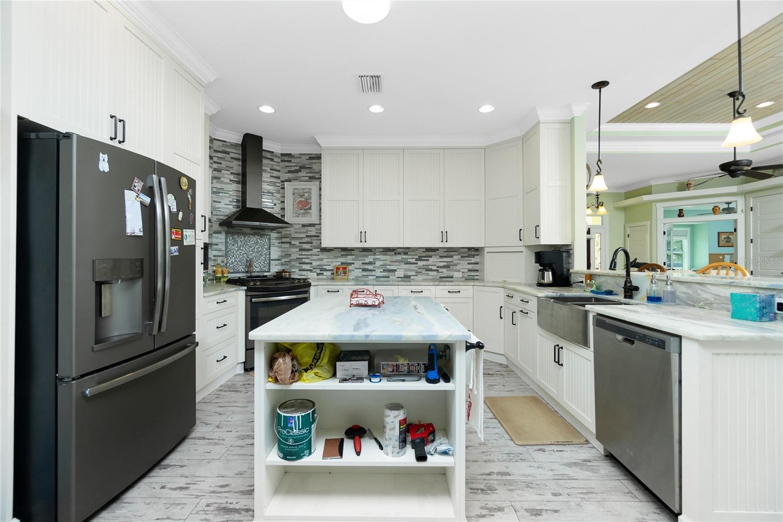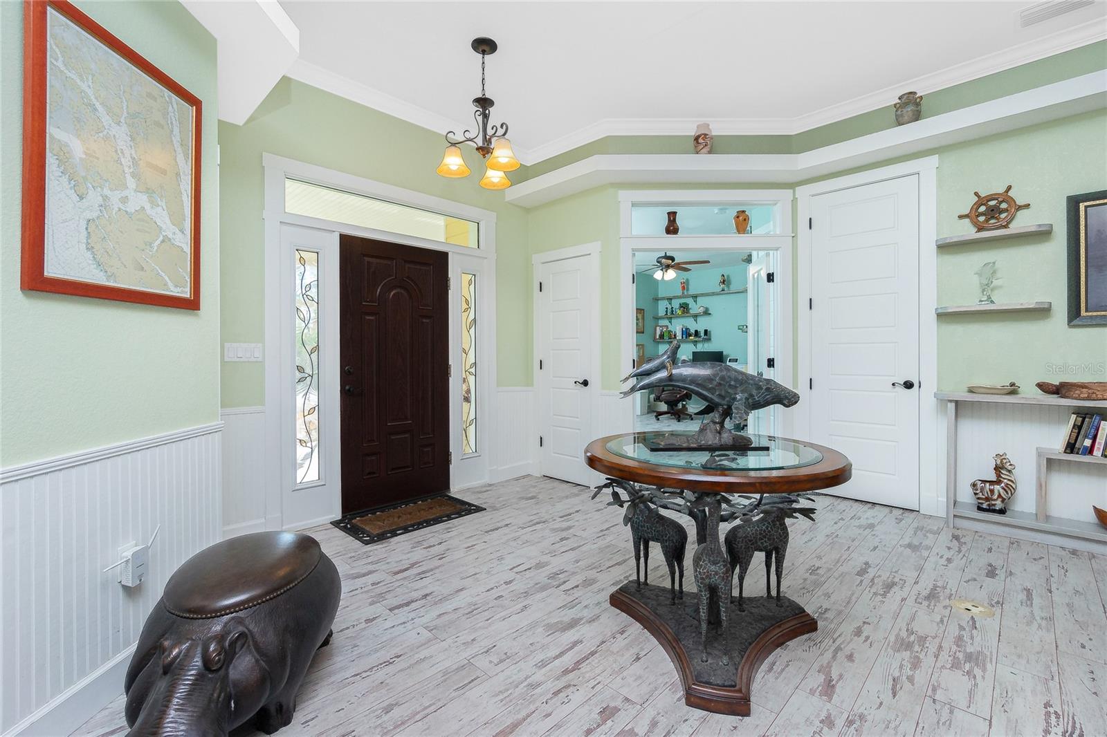 Health reasons force sale, and short term seller financing is possible! From the moment you step onto the expansive screened front porch and through the impressive tall, transomed front door, the exceptional quality of this residence is immediately apparent. The generously sized great room is a focal point, featuring a sophisticated tray ceiling, a tubular skylight for natural illumination, and a built-in gas fireplace – perfect for creating a warm ambiance. This central living space flows seamlessly into a truly fabulous kitchen and a substantial dining room. The dining room, elegantly finished with bead board and topped with crown molding, provides a refined setting for meals. The kitchen is a chef's delight, boasting Shaker ceiling-high cabinets equipped with convenient rollouts, a central island for ample workspace, a gas range with a stylish hood, and a classic farm-house sink. The countertops and breakfast bar are adorned with exquisite granite, featuring an captivating ocean-like pattern, complemented by a tiled glass backsplash that adds a touch of modern elegance. The well-appointed laundry area includes both a gas dryer and electric washer, along with practical cabinets and hanging rods. The master bedroom is a private retreat, showcasing a tray ceiling pre-wired for custom lighting, a spacious walk-in closet, and a luxurious en suite bathroom. The master bath is designed for relaxation and rejuvenation, featuring a walk-in shower with a rain-head and side jets, a large double-sink vanity, and a generous linen closet. The second bedroom offers a charming window seat – an ideal spot for quiet reading or simply unwinding. The third bedroom, currently utilized as a functional office, is lined with ample shelving, features elegant French doors opening to the front patio, and also includes a delightful window seat. The truly massive, screen-enclosed patio is an entertainer's dream. It is thoughtfully plumbed for the addition of an outdoor kitchen, boasts a sophisticated tongue and groove ceiling, and is beautifully surfaced with paver stones. Paver stones also grace the long, gracefully curved driveway, leading to the impressive garage. The three-car garage, a significant and valuable asset not included in the main square footage, is fully finished and insulated. It provides extensive storage with cabinets and a sink, as well as a superb dedicated office space. Furthermore, a separate area within the garage is perfect for storing bikes or even a boat. This home is designed for comfort and efficiency, featuring super insulation that contributes to remarkably low electric bills. The fenced-in yard is a fantastic amenity for your beloved canine companion, offering a secure space to roam. A convenient doggie door even allows them independent access to the outdoors. Beyond these highlights, this home offers a multitude of other exceptional features that demand in-person discovery. Its prime, close-to-everything location further enhances the overall desirability of this truly amazing property. Do not let this opportunity pass to experience living in Paradise!