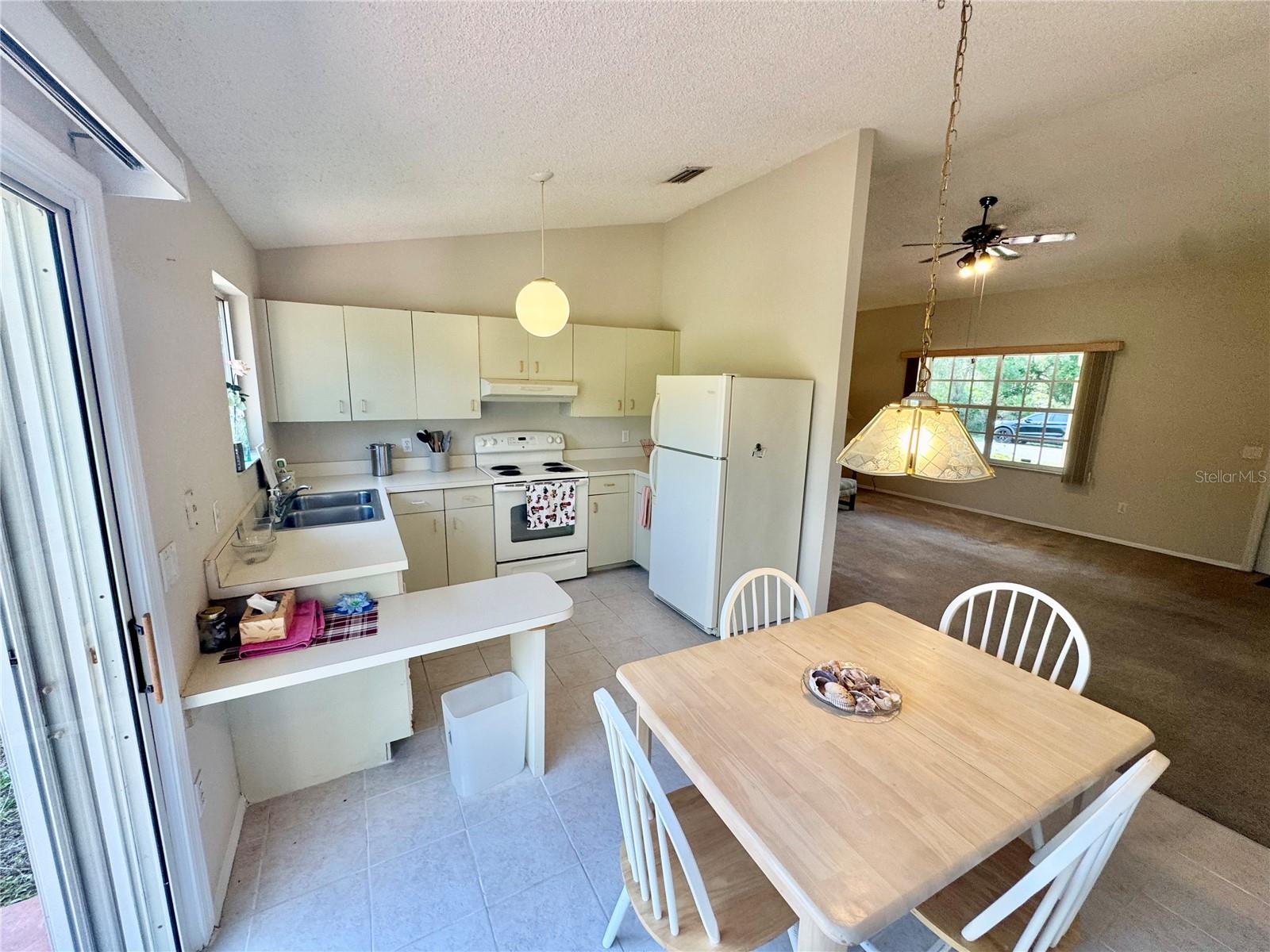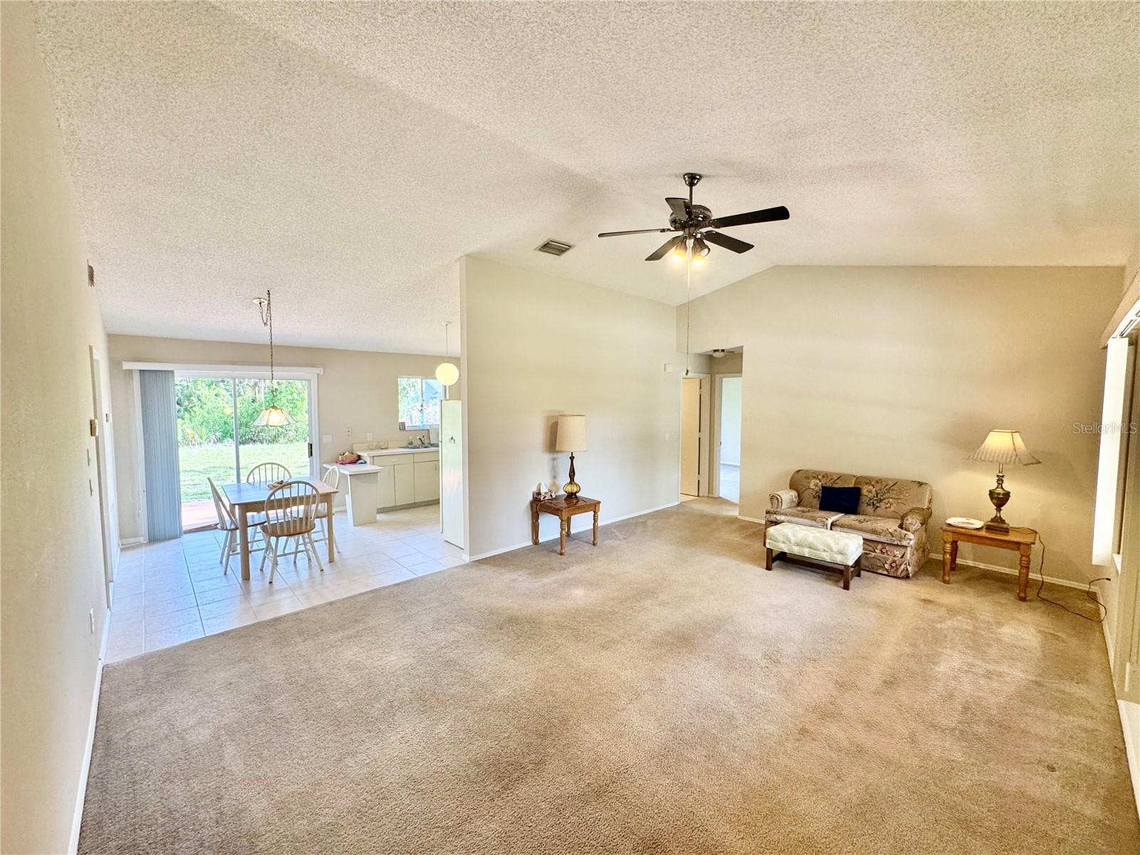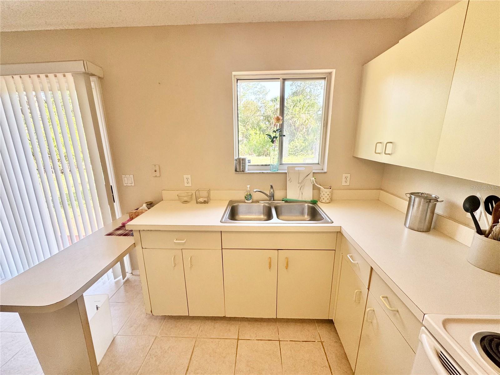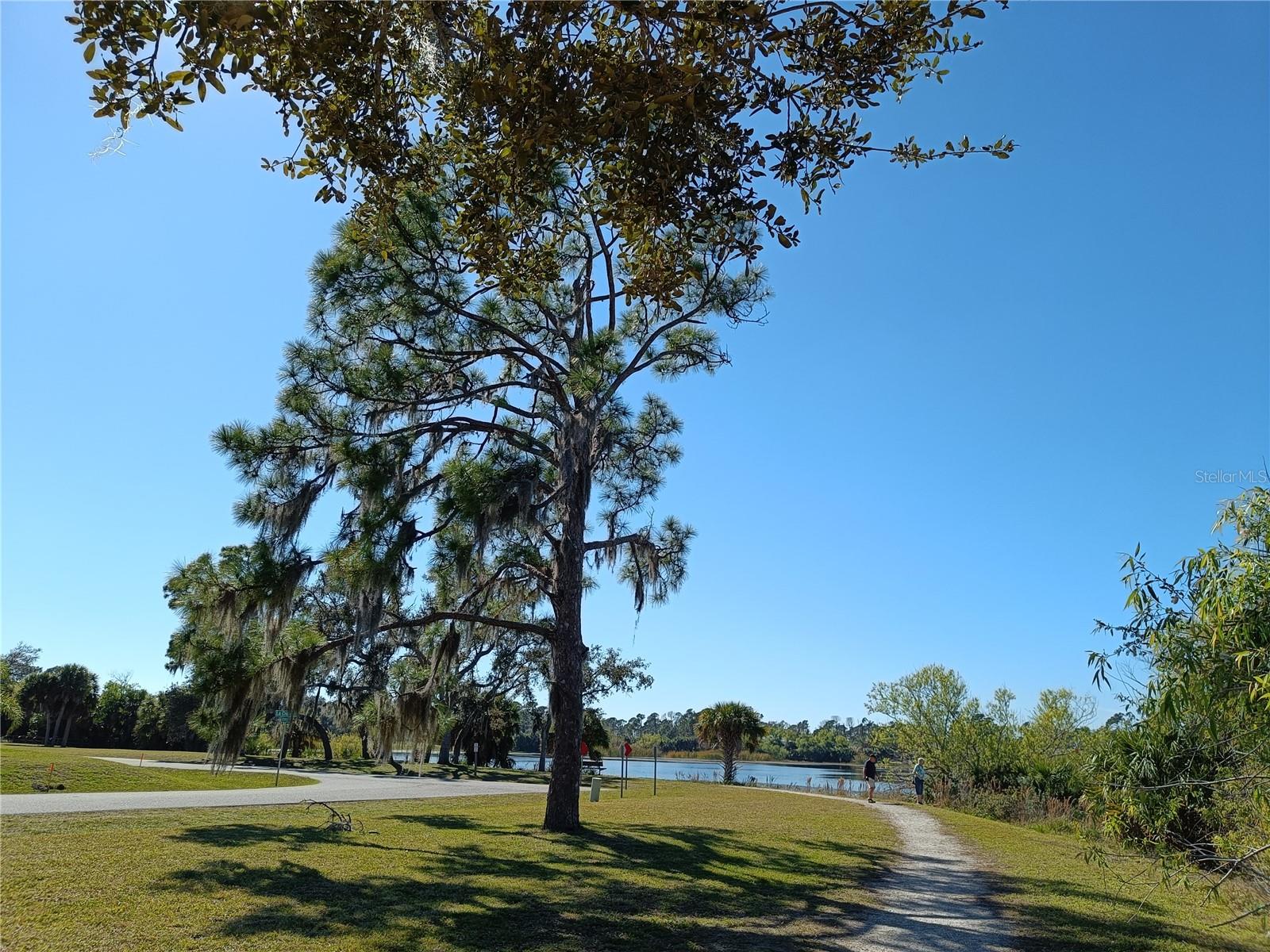 Tucked away in a peaceful, wooded setting, this charming 2-bedroom, 2-bath home with a one-car garage provides comfort, space, and quiet surroundings. Inside, you'll find high vaulted ceilings in the main living area that create an open, airy feel. Both bedrooms include mirrored sliding closet doors, and the layout is functional and inviting. The spacious backyard provides plenty of room to relax, garden, or expand, with a rear concrete pad ready for a future patio or Florida room. A cozy front porch adds to the home's charm, while accordion and panel shutters add extra peace of mind during storm season. Best of all, there's no monthly water bill—making this home as practical as it is peaceful. Though it feels like a private retreat, you're never far from everything you need. Just a short walk away is the beautiful Ollie’s Pond Park, perfect for birdwatching, nature walks, and quiet reflection. And with shopping, dining, entertainment, and major roadways nearby, you’ll enjoy the perfect balance of seclusion and convenience. This hidden gem is ready to welcome you home.