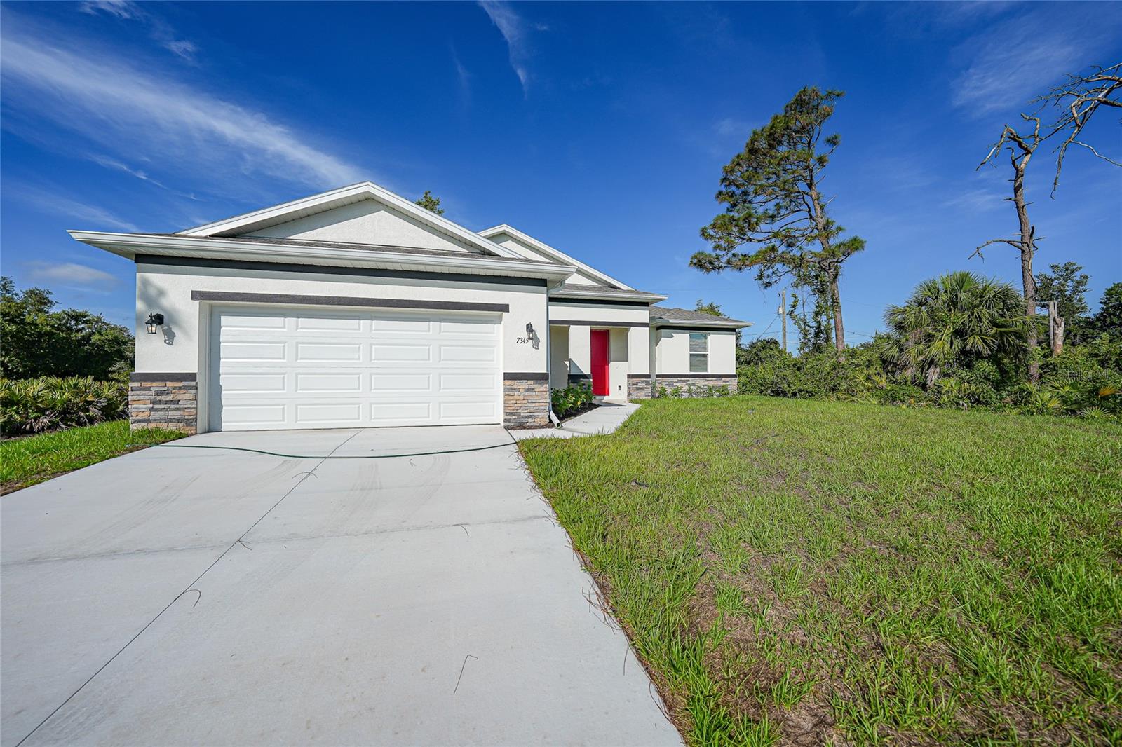Welcome to 7345 Ellis Ln in beautiful Port Charlotte, Florida—a move-in ready home built by Ecosun Homes, a leading net-zero builder in Southwest Florida known for energy efficiency, sustainability, and affordability. This thoughtfully designed home features 3 bedrooms, 2 bathrooms, a 2-car garage, and 1,502 square feet of open-concept living space—perfect for entertaining family and guests. With striking stonework on the front exterior, 9'4" ceilings, Low-E windows, and an insulated front door, the home offers strong curb appeal and energy-conscious design from the moment you arrive. Inside, you'll find a spacious layout that flows seamlessly from room to room. The full kitchen appliance package is included, making move-in a breeze. For added comfort and long-term savings, the home is equipped with spray foam insulation in the attic, concrete block insulation behind the drywall, a hybrid water heater, a 16 SEER air conditioning system, and a clean air filtration system—all designed to keep your home cool in the summer and warm in the winter. It also features a built-in pest control system located within the walls, which can be activated via a monthly subscription through HomeTeam Defense. Smart home features like a keyless entry system and remote-controlled garage access offer modern convenience, while the home’s solar-ready wiring allows buyers to easily upgrade to solar power. For just $20,000, buyers can add solar panels and potentially qualify for a one-time federal tax credit of up to $10,000, along with an average savings of $6,000 in utility bills. Peace of mind comes with a 210 warranty and a 10-year structural warranty, providing long-term protection for your investment. Located in a non-HOA community and outside of a flood zone, this home is ideal for those seeking a low-maintenance, high-efficiency lifestyle. With its stylish design, forward-thinking features, and unbeatable value, 7345 Ellis Ln is the perfect opportunity to own a smart, energy-efficient home in a growing Florida community.